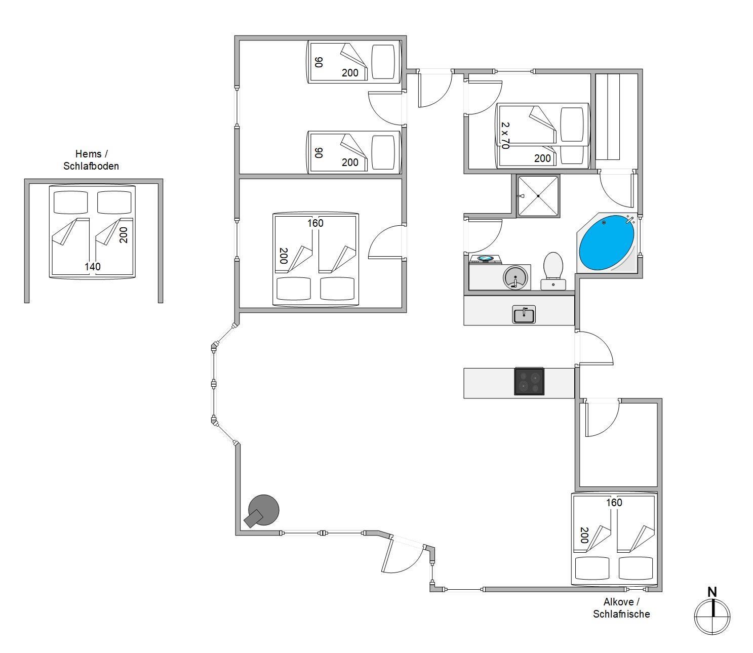 Fra stuen er der adgang til hemsen, hvor der også gemmer sig en ekstra soveplads. Det samme gør sig gældende for stuens hyggelige alkove, der helt sikkert bliver en hit hos børnene.