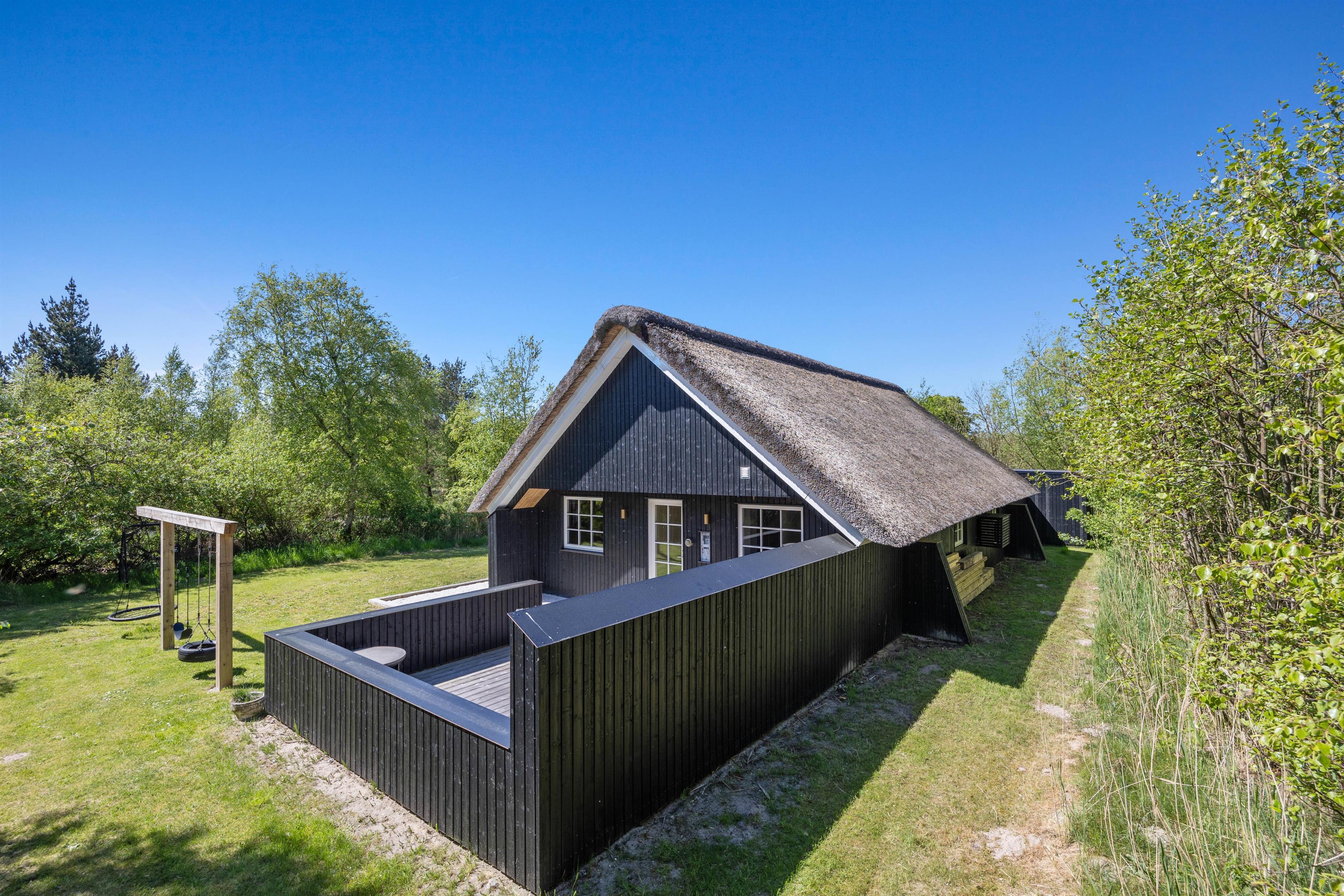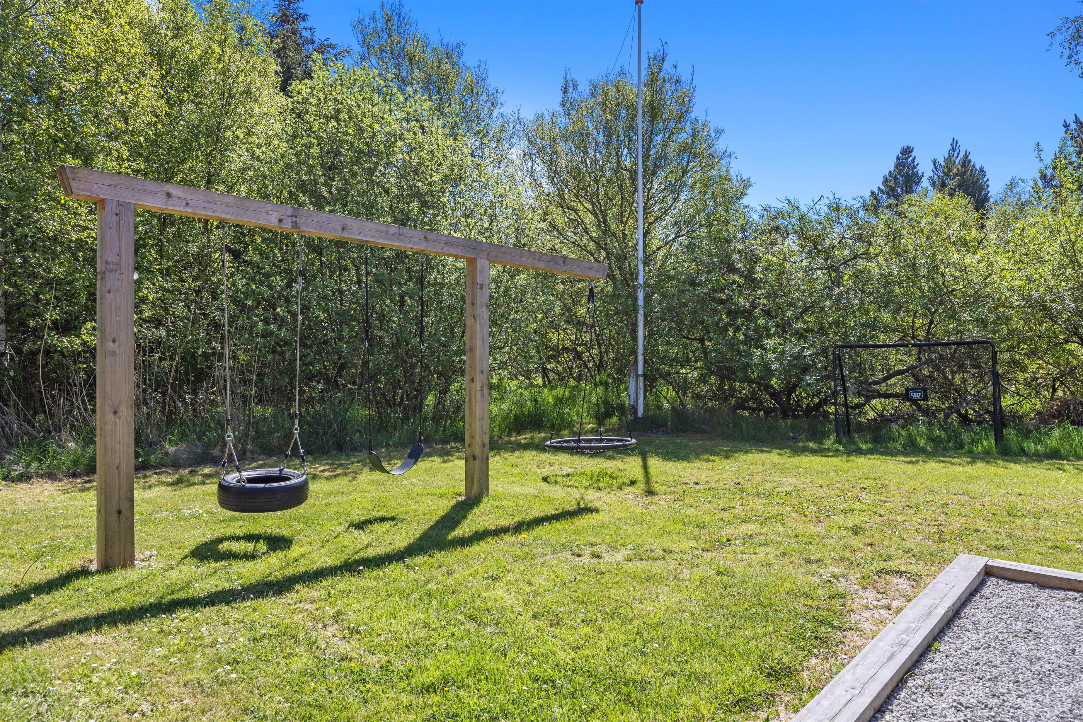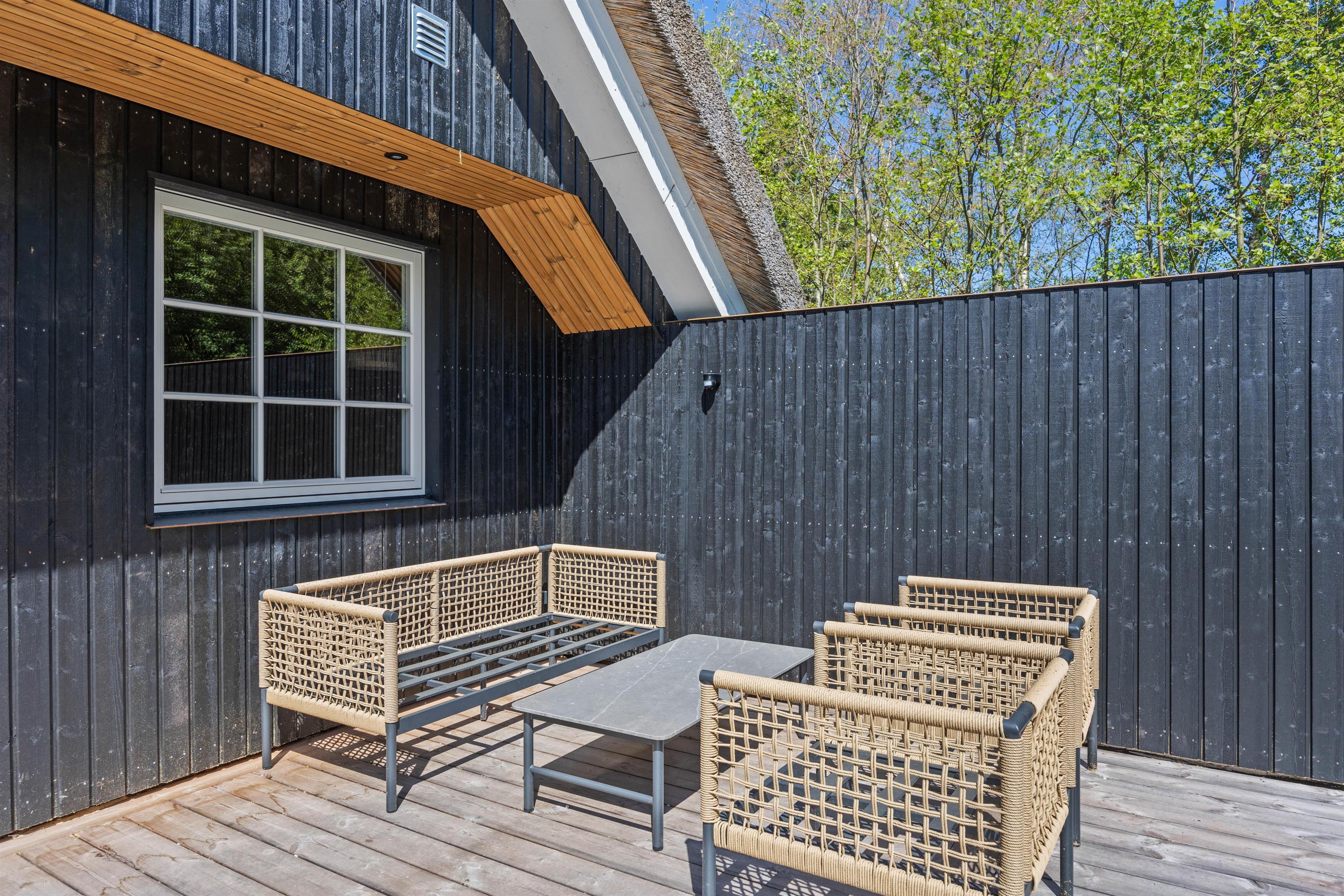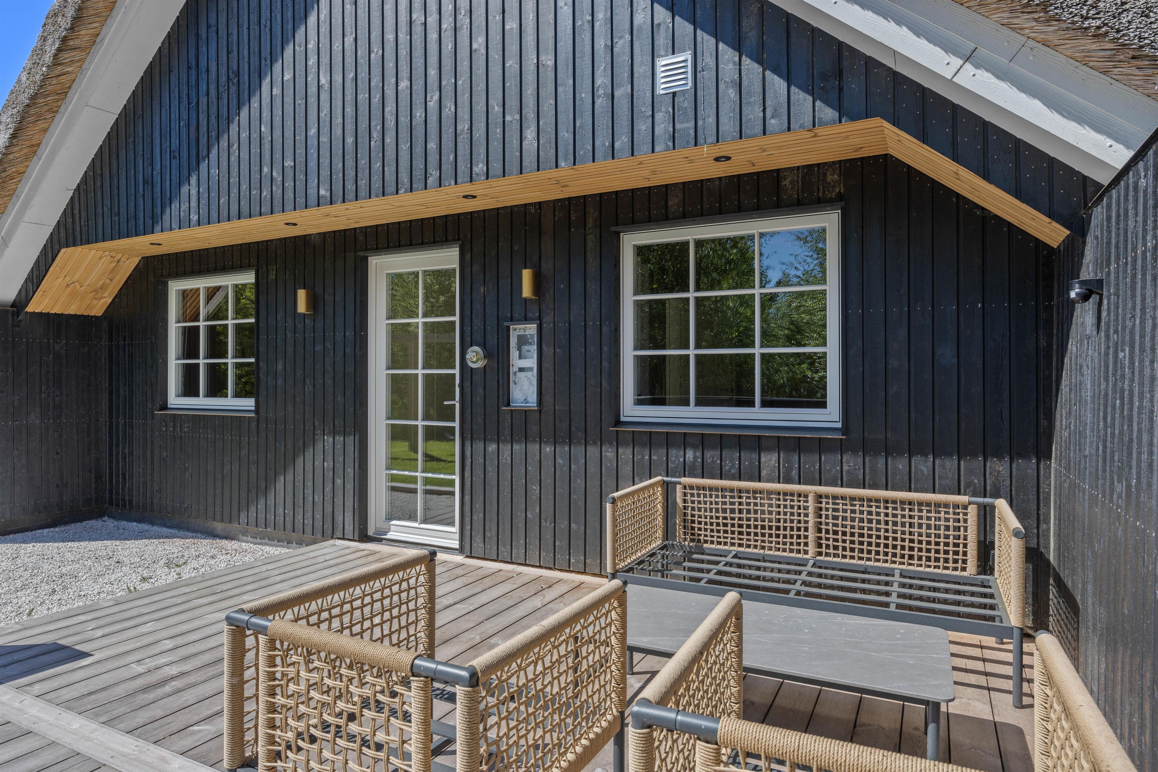 Fra stuen kan I komme direkte ud på terrassen. Her er 2 fine terrasser, så I altid kan finde en dejlig plads – både i solen eller i skyggen under parasollen. Sæt jer godt til rette, nyd roen og lad ungerne lege på græsset. Naturgrunden er 2500 m2, så her kan I sagtens spille kongespil eller gynge på gyngerne, der findes på grunden. Nyd de lune sommeraftner med et lækkert måltid, som er tilberedt på feriehusets gasgrill – en perfekt afslutning på dagen.