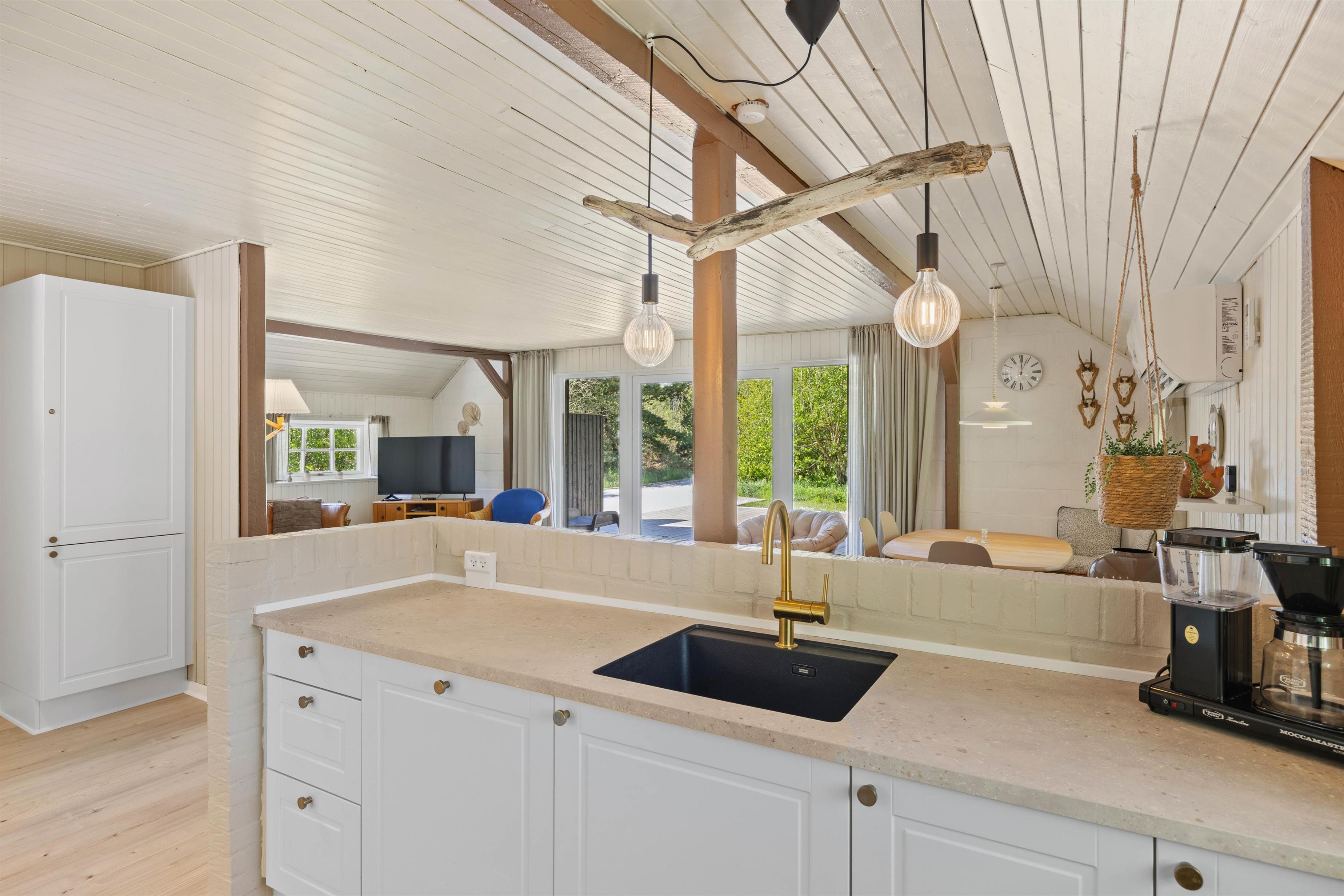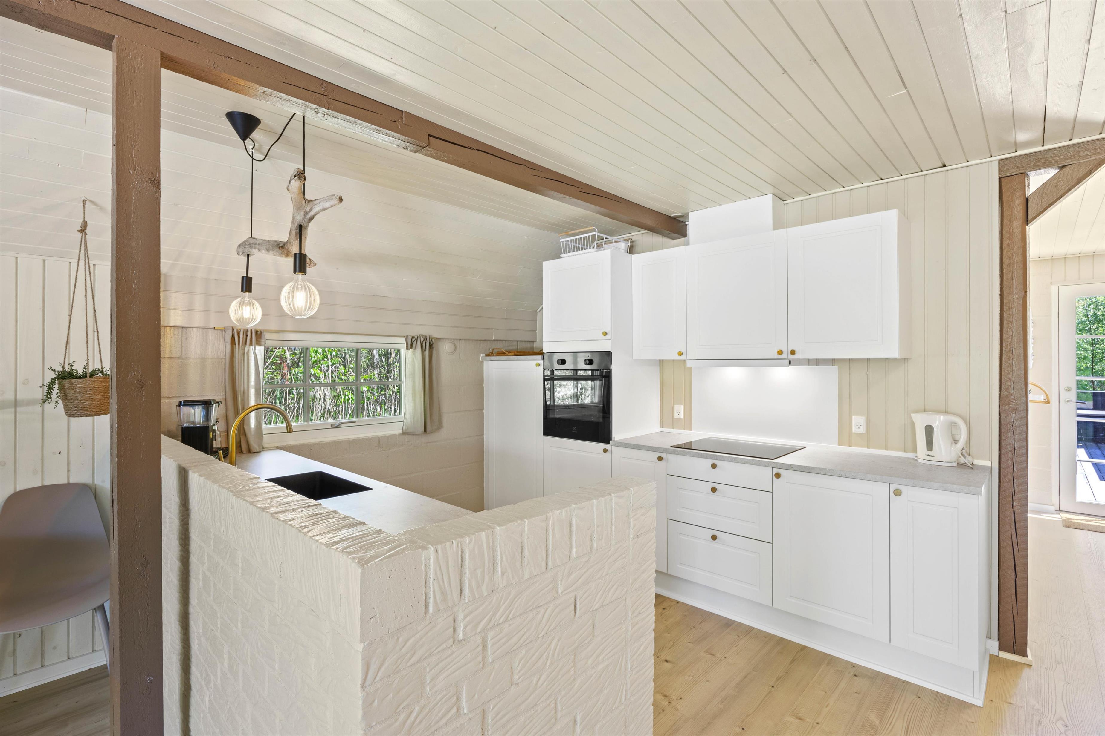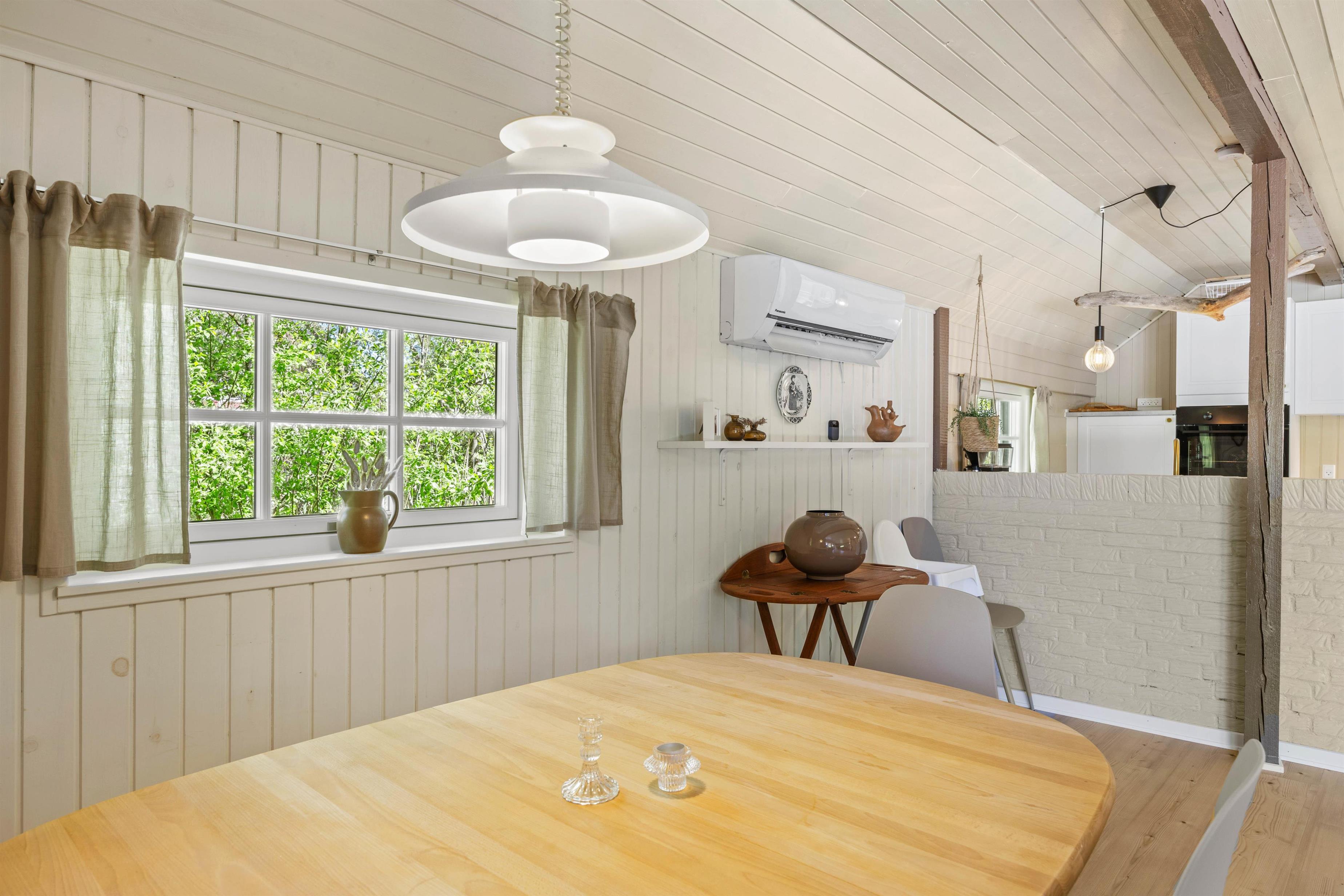 Hjerterummet på Egedeminde 2 er det åbne opholdsrum, der binder stue, køkken og spiseplads sammen. Her er en rolig atmosfære og varme, brune nuancer. I køkkenet bliver madlavningen til en leg, især når opvaskemaskinen klarer den kedelige opvask og giver jer mere tid sammen. I stuen kan I sætte jer godt til rette i sofaarrangementet og spille spil, strikke eller læse krimier. På de køligere dage kan I både gøre brug af den energibesparende varmepumpe, der sørger for et behageligt indeklima.