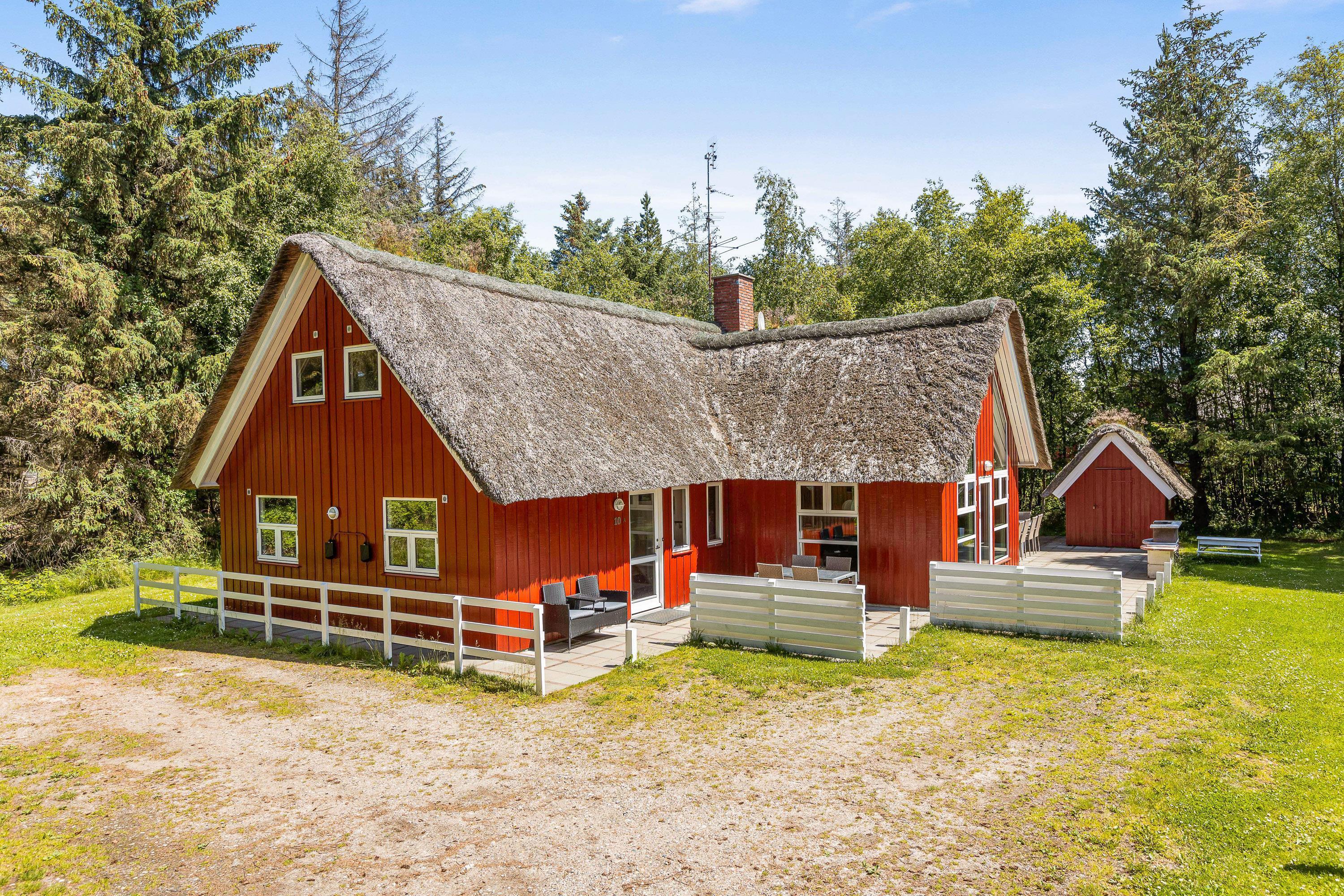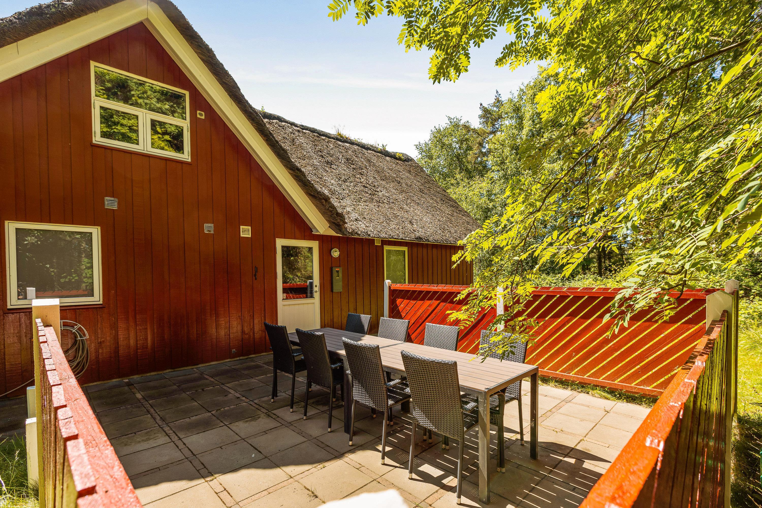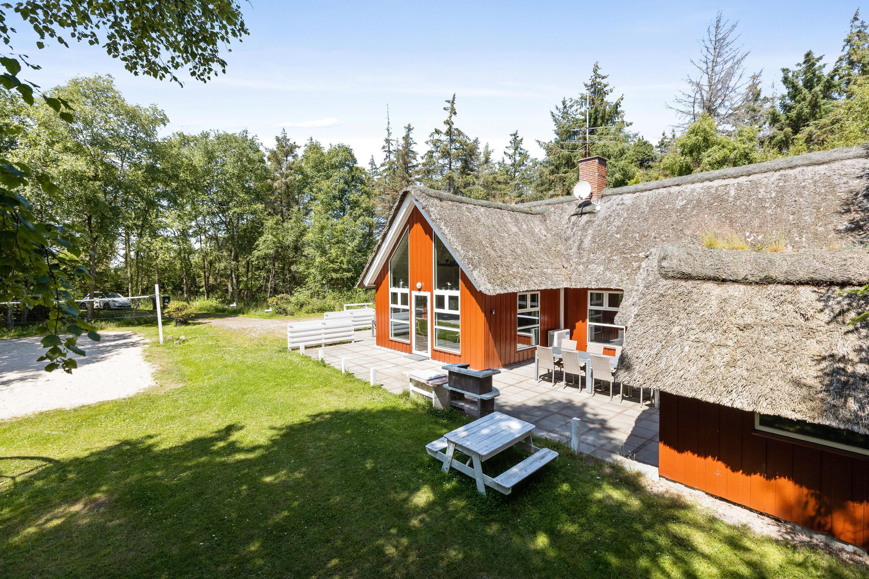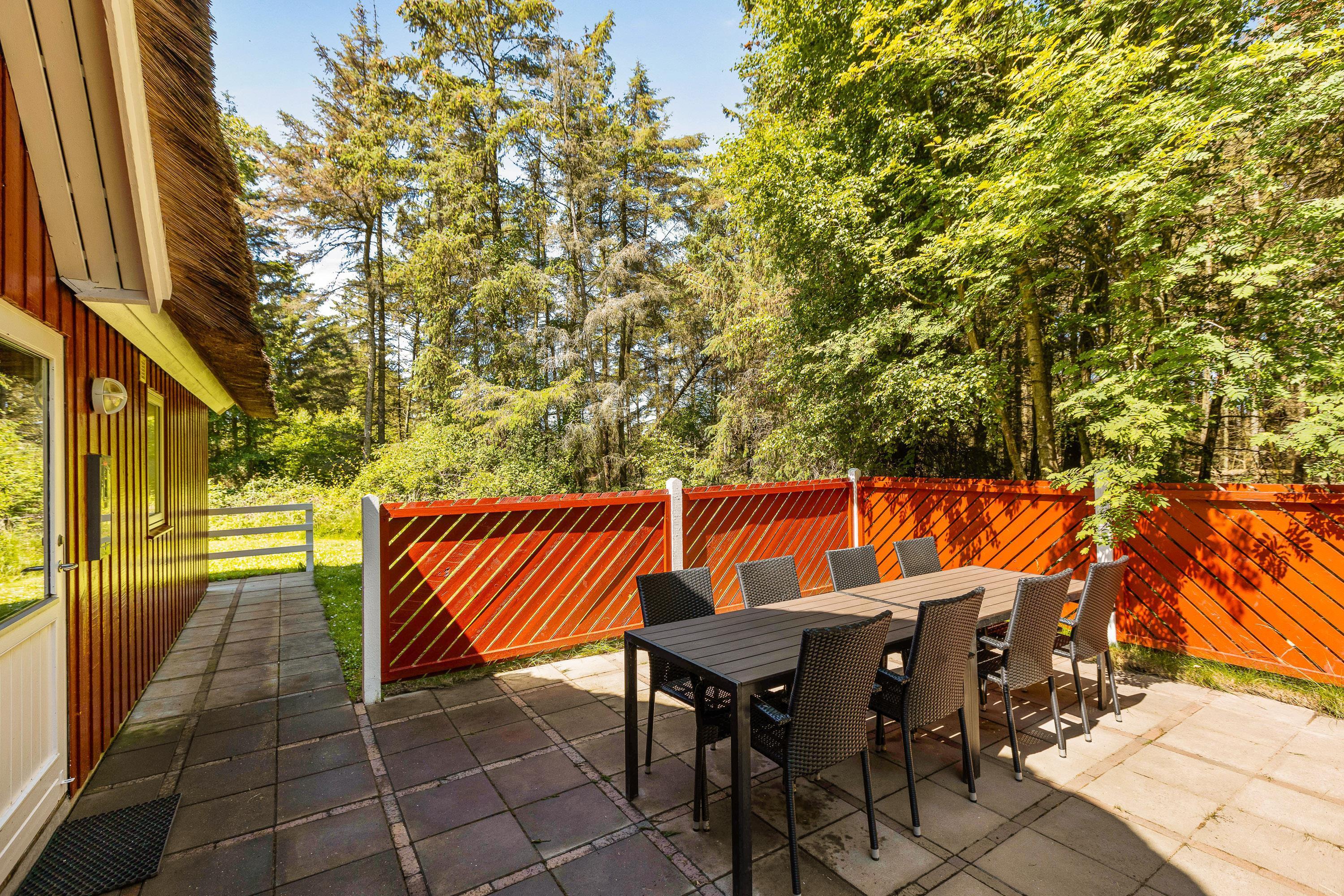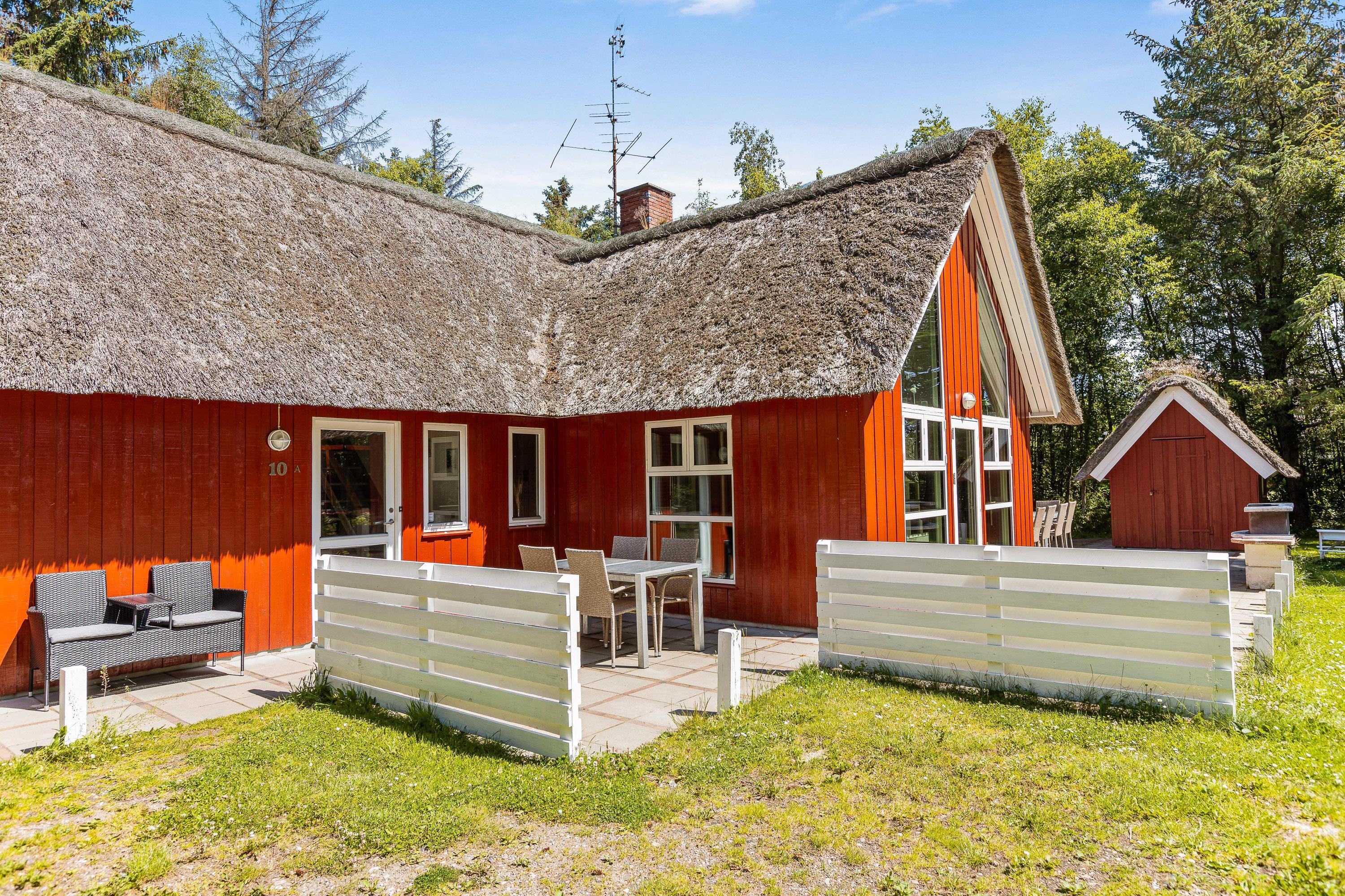 Dette veludstyrede stråtækte sommerhus i træ har en sjælden dejlig beliggenhed på Gl Skinnevej 10A – i bunden af et lukket vænge og ugenert i en lysning i skoven på Rømø. Huset er omkranset af høje træer, der dog ikke skygger for solen på husets to terrasser, hvor der på de 107 m2 er både morgen- og aftensol samt læ. Her indbyder pæne havemøbler og den store stengrill til hyggelige grillaftener sommeren igennem.