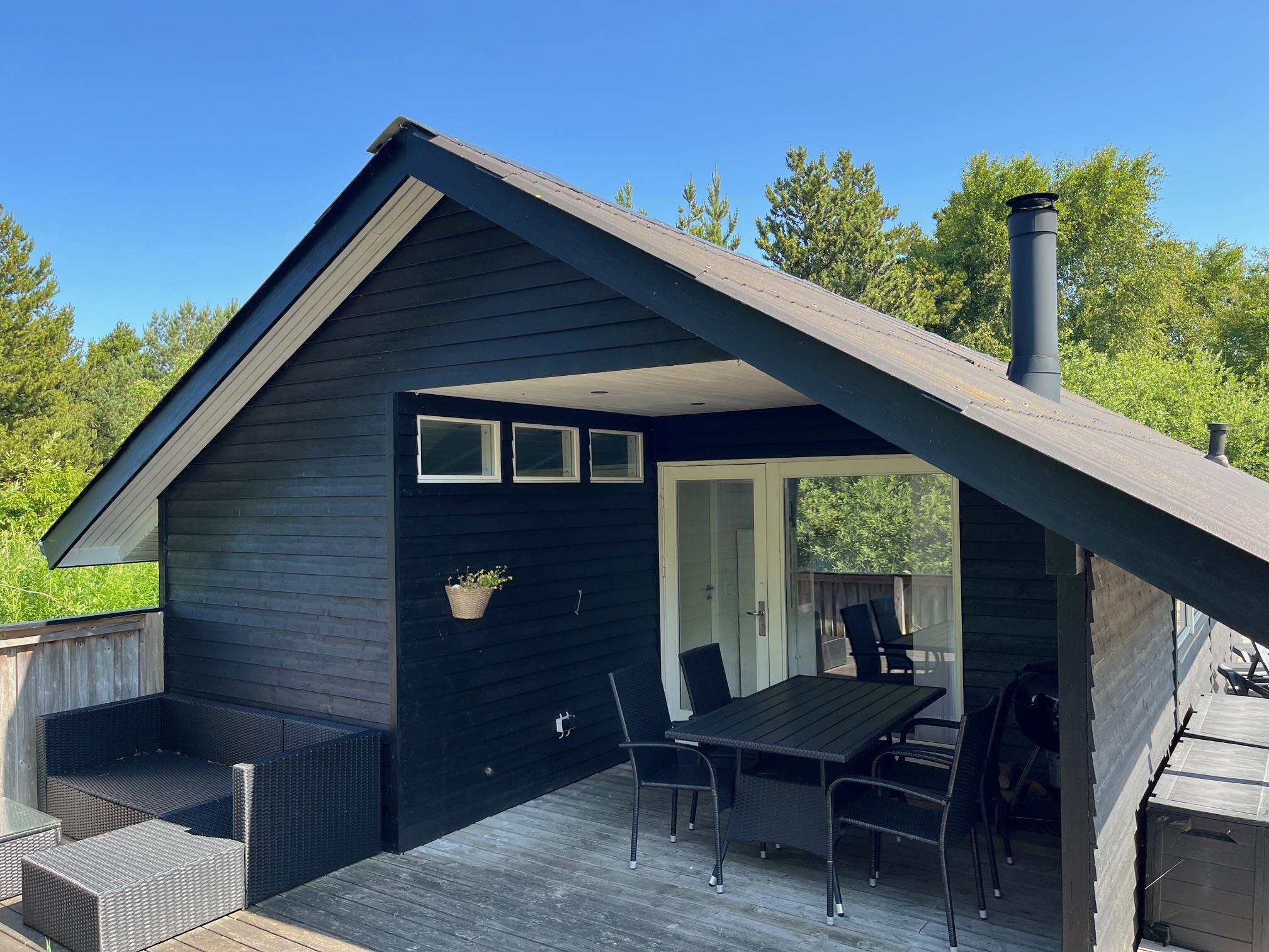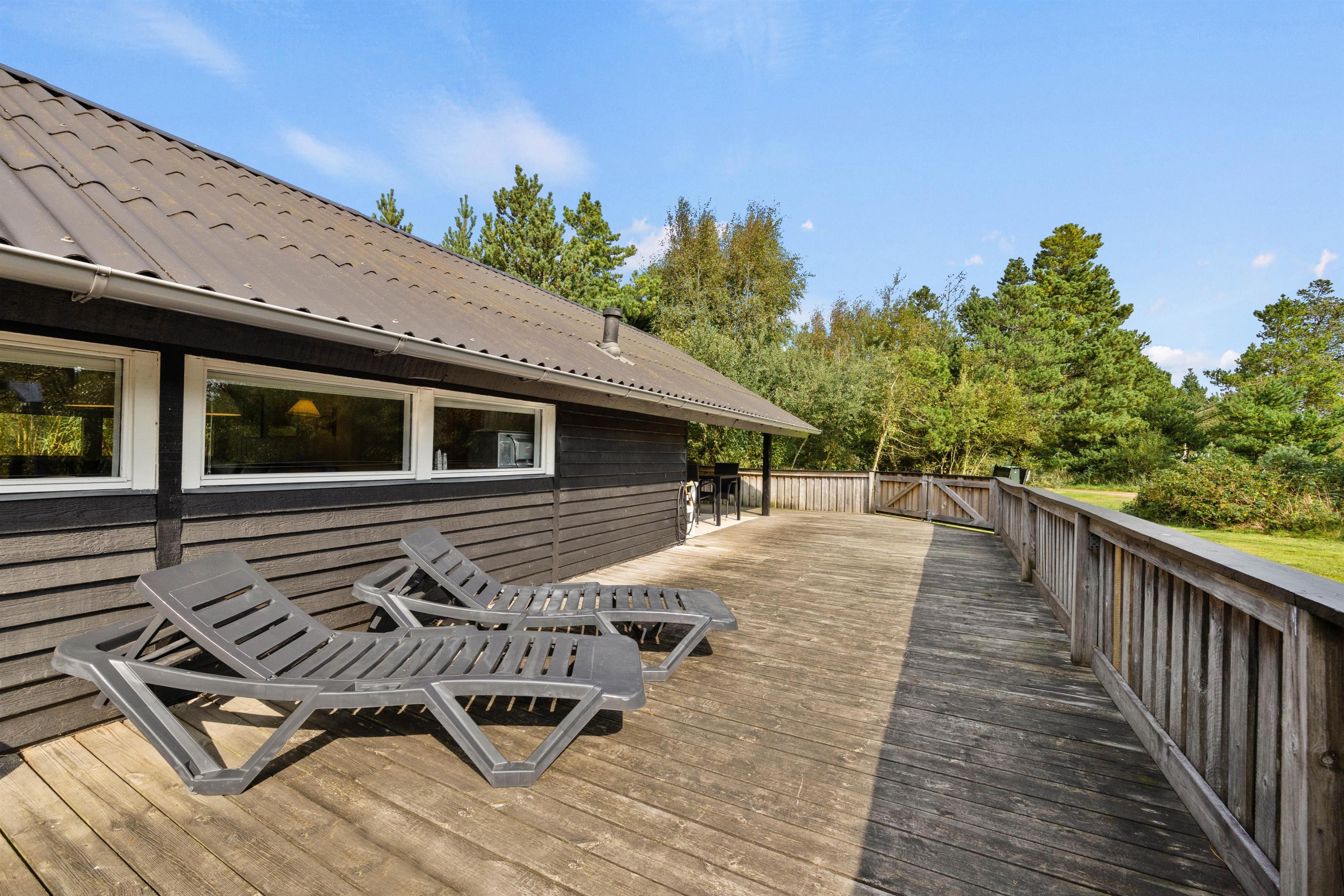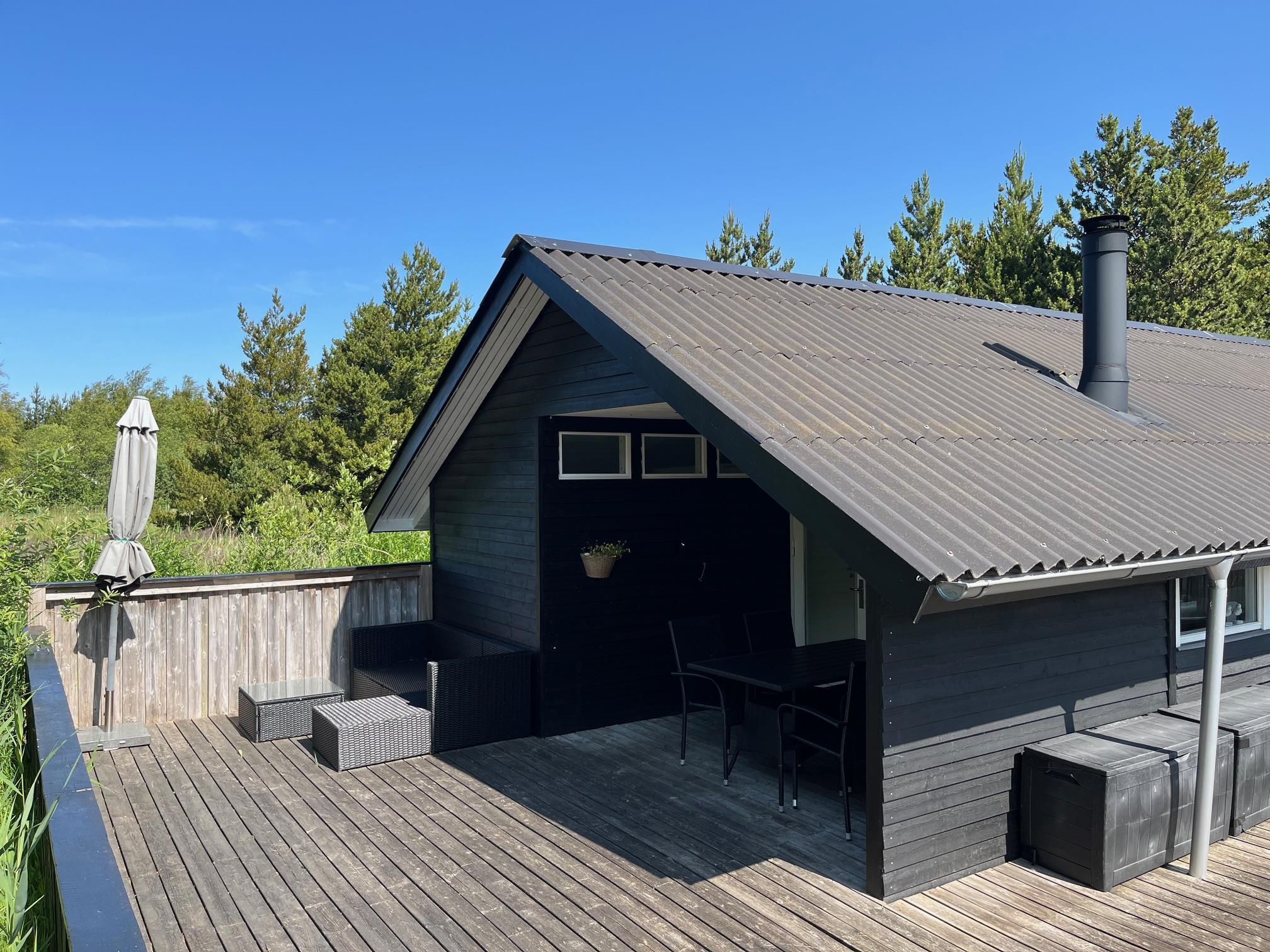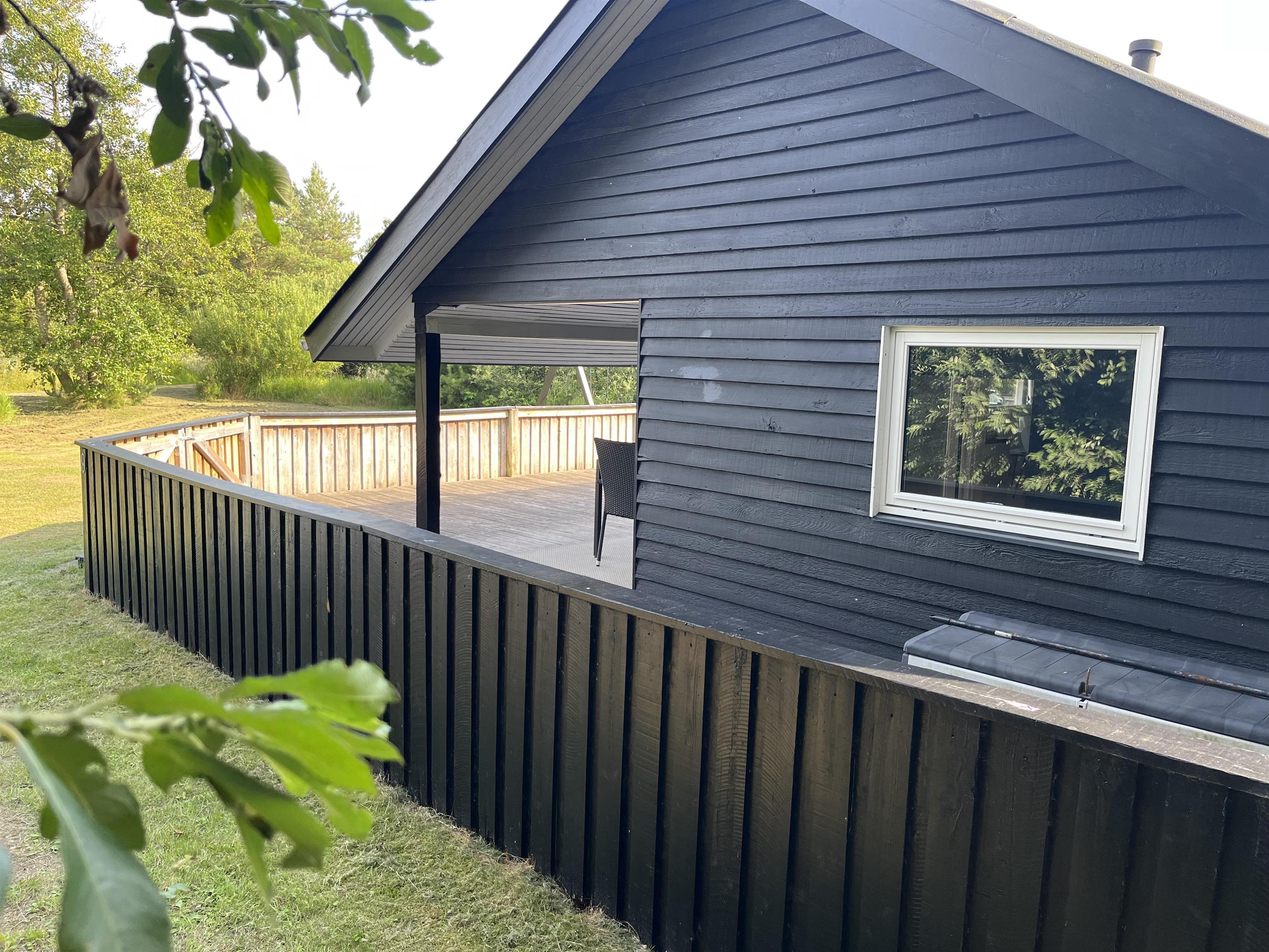 Fra køkken-alrummet er der udgang til den store terrasse, som er delvist overdækket. Her venter havemøbler, liggestole og grillen på jer! Slap af i solen, nyd en dejlig frokost tilberedt på grillen og lad børnene lege. På det grønne græs er der gynger og sandkasse til familiens mindste.