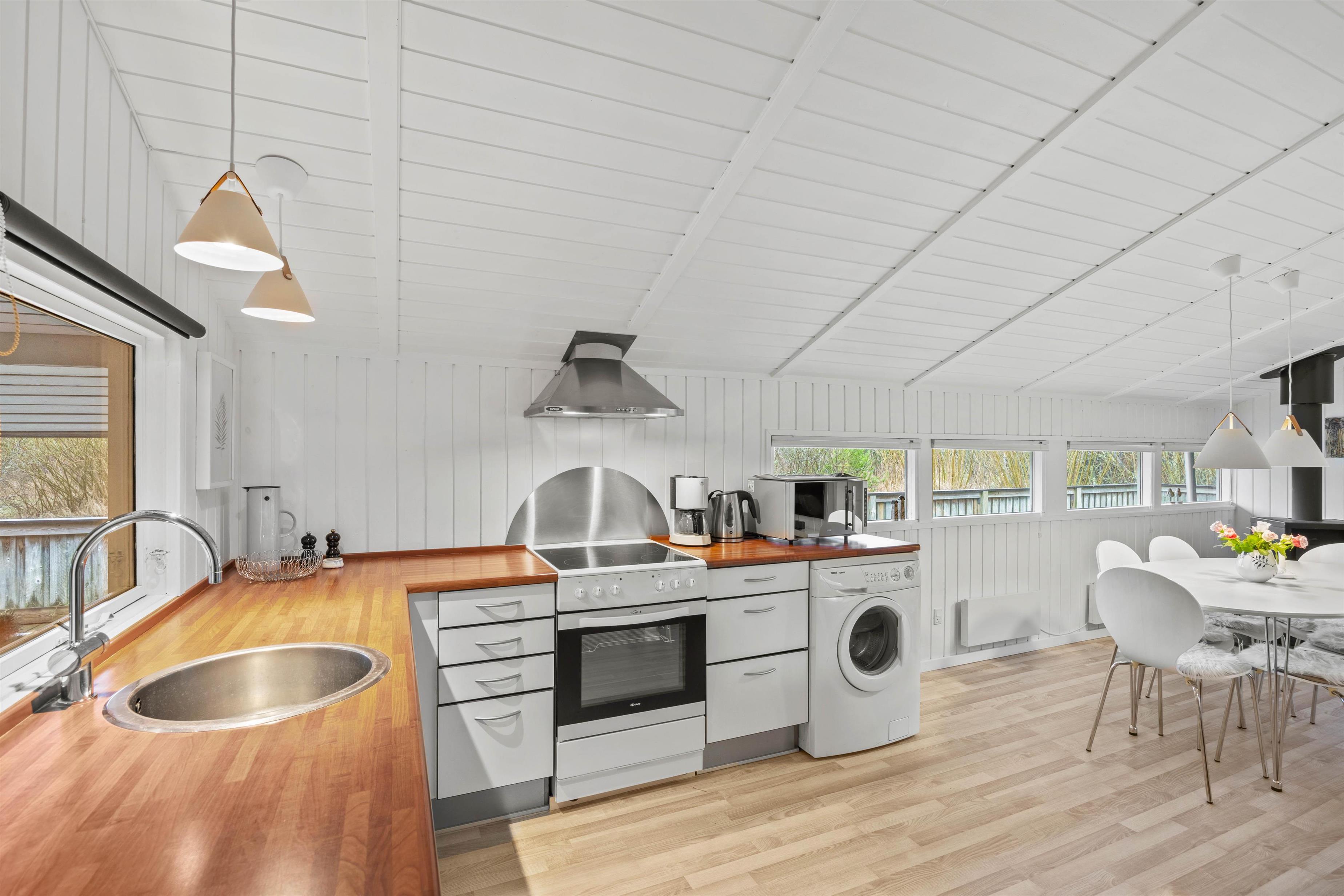 Hjerterummet er det skønne alrum, der ligger i åben forbindelse med stuen. I stuen er brændeovnen, der skaber den rette hyggelige atmosfære. Slap af i sofaen, læs en god bog eller saml familien til brætspilsaften - mulighederne er mange. I det fine lille køkken kan familiens kok forkæle resten af familien med dejlig mad. Til de praktiske gøremål finder I både opvaskemaskine og vaskemaskine.
