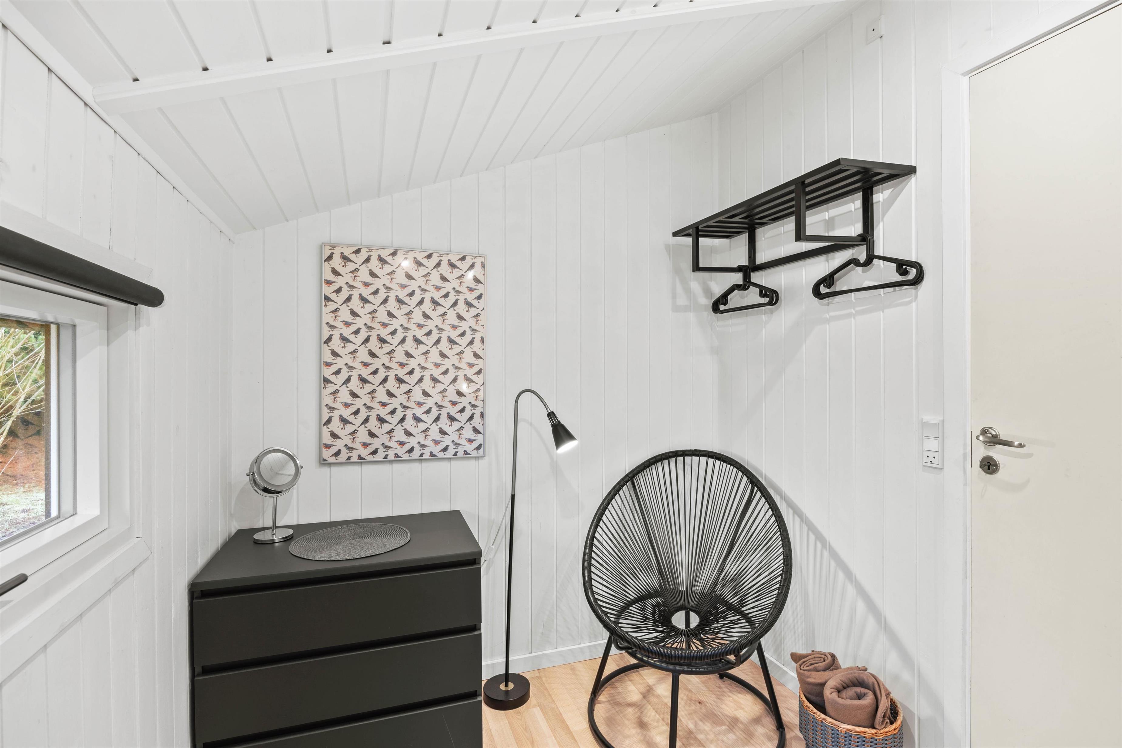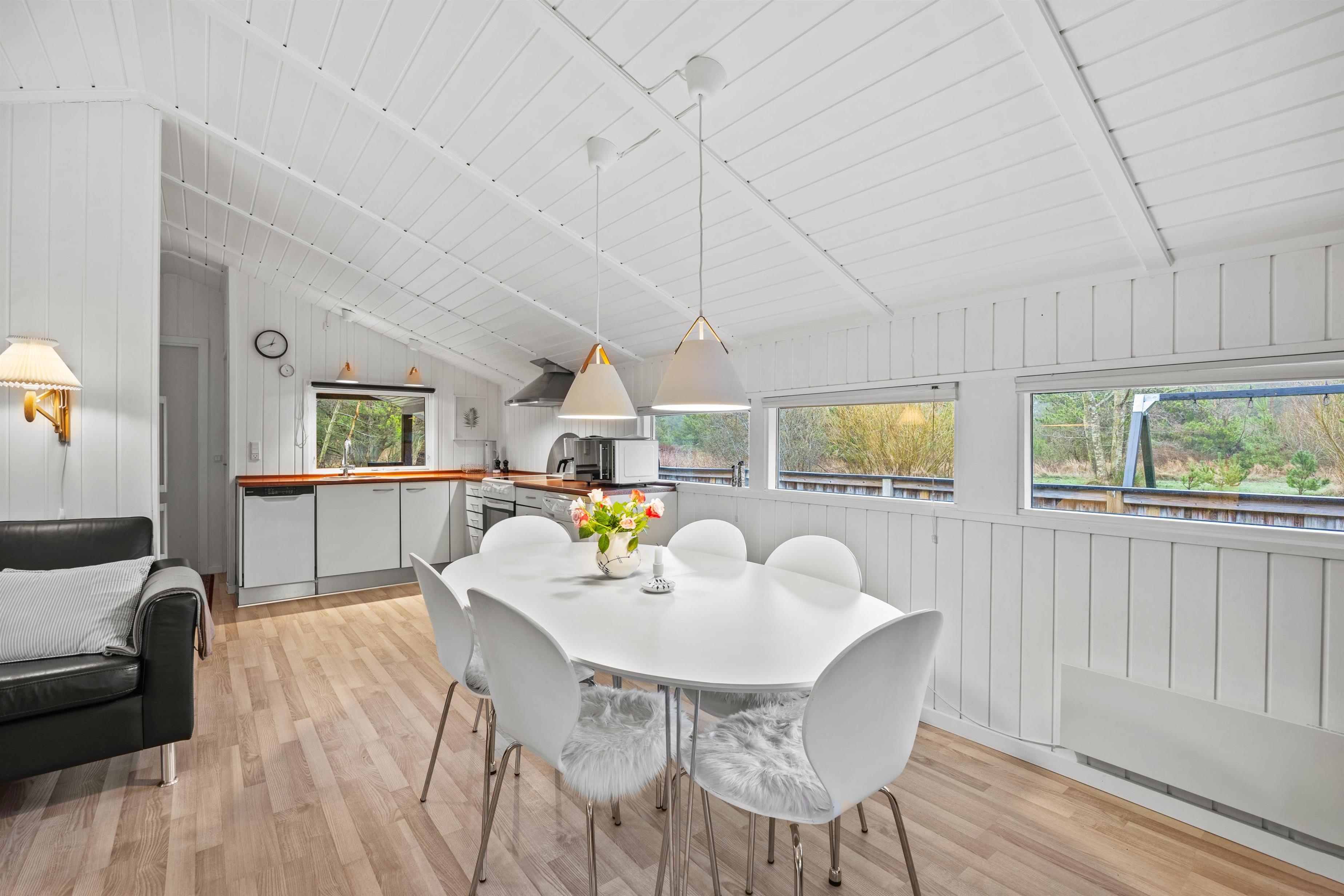 Sommerhuset på Ejnar Mikkelsensvej 9 er med sine 60 m2 velegnet til parret eller den lille familie, der ønsker at holde ferie i rolige naturskønne omgivelser. Feriehuset fremstår lyst og indbydende. Her er to fine soveværelser samt et badeværelse med gulvvarme og egen sauna.