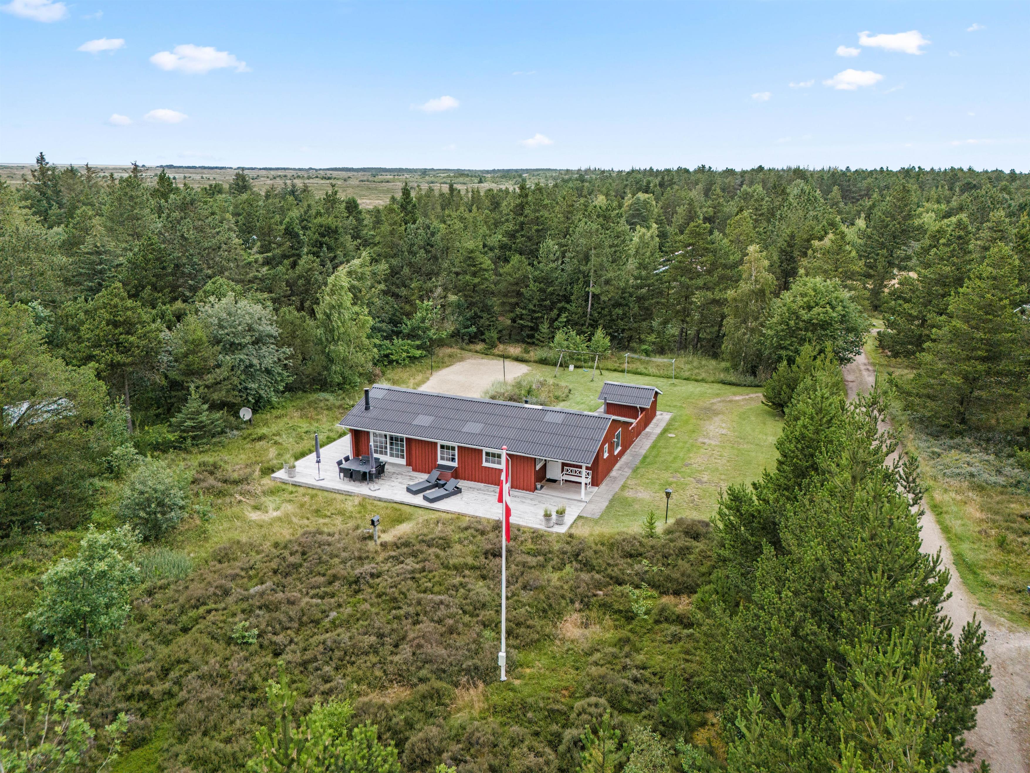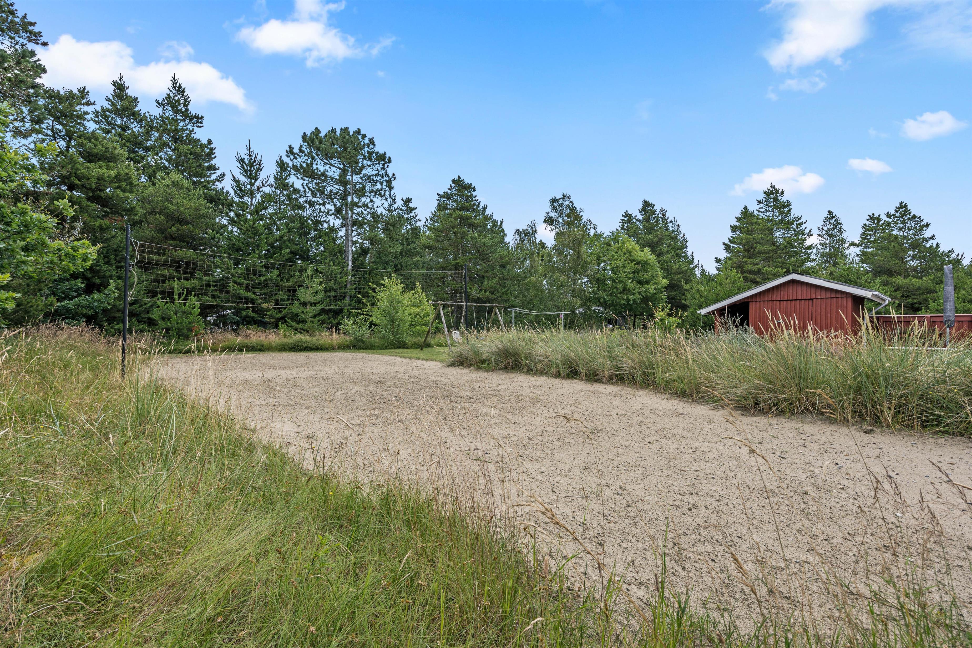 På den store naturgrund er der også plads til leg og aktiviteter. Her er der en beachvolleybane og en nydelig terrasse. Dyst hele familien og saml appetit til aftensmaden, der naturligvis kan tilberedes på grillen.