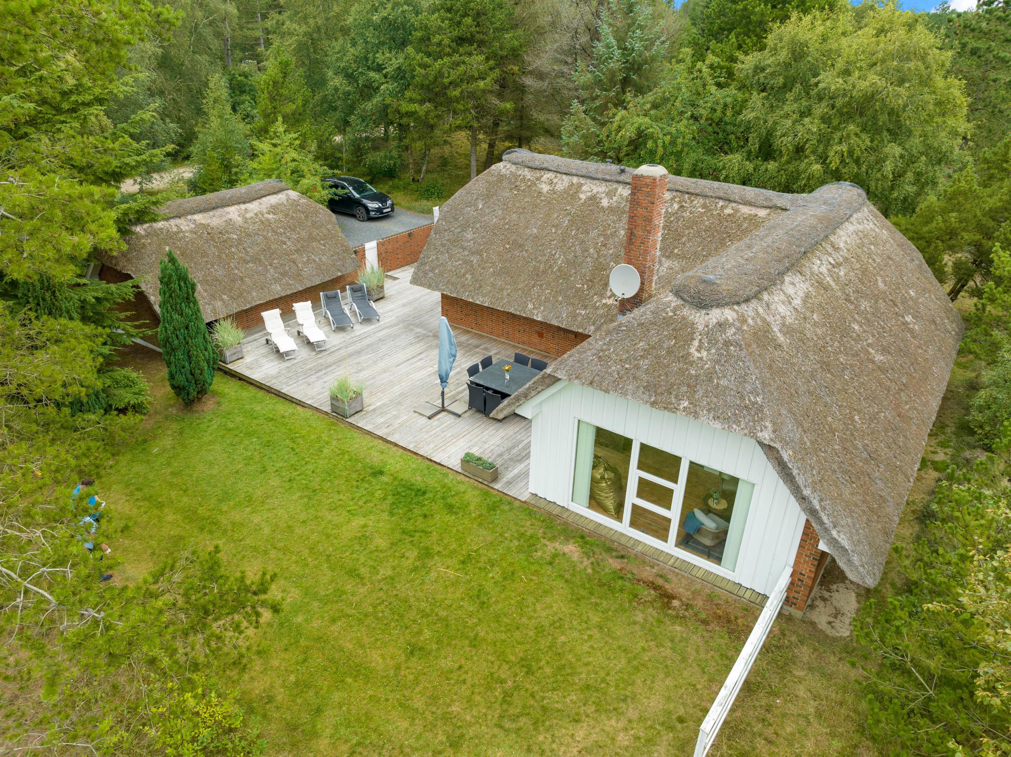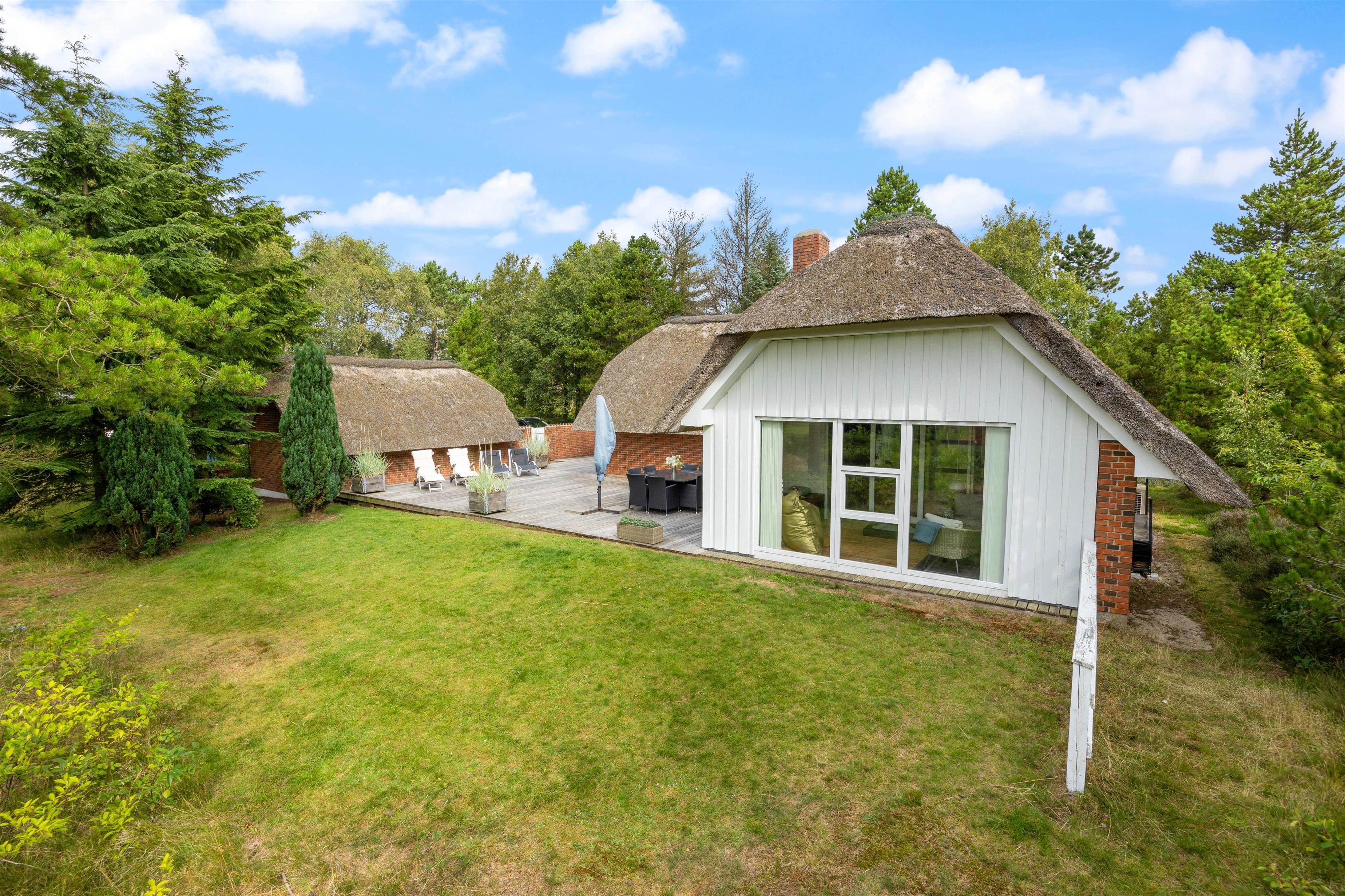 Dette smukke og yderst smagfuldt indrettede feriehus på Råbjergvej 4 på Rømø ligger på en stor, rolig naturgrund på 2654 kvadratmeter, omgivet af træer, lyng og græs. Rådyr, harer og fasaner strejfer roligt rundt i haven. Afstanden til Lakolk badestrand er kun 2600 meter, og der er ca. 650 meter til Vadehavet på Rømøs østlige kyst.
