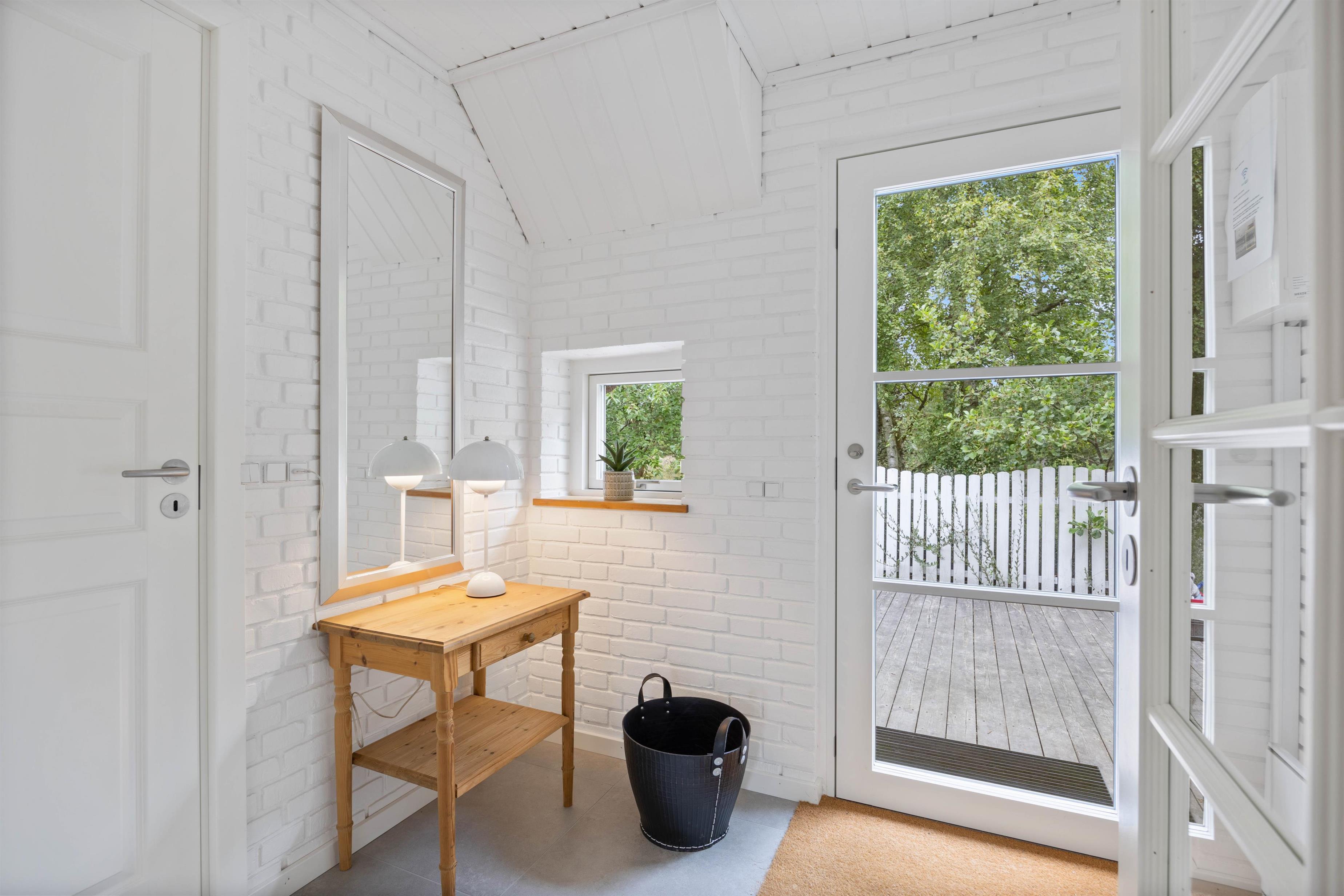 Huset har et badeværelse med en bruseniche og en regnvandsbruser samt toilet, en vaskemaskine og en tørretumbler. Gulvvarme sørger for behagelig varme.