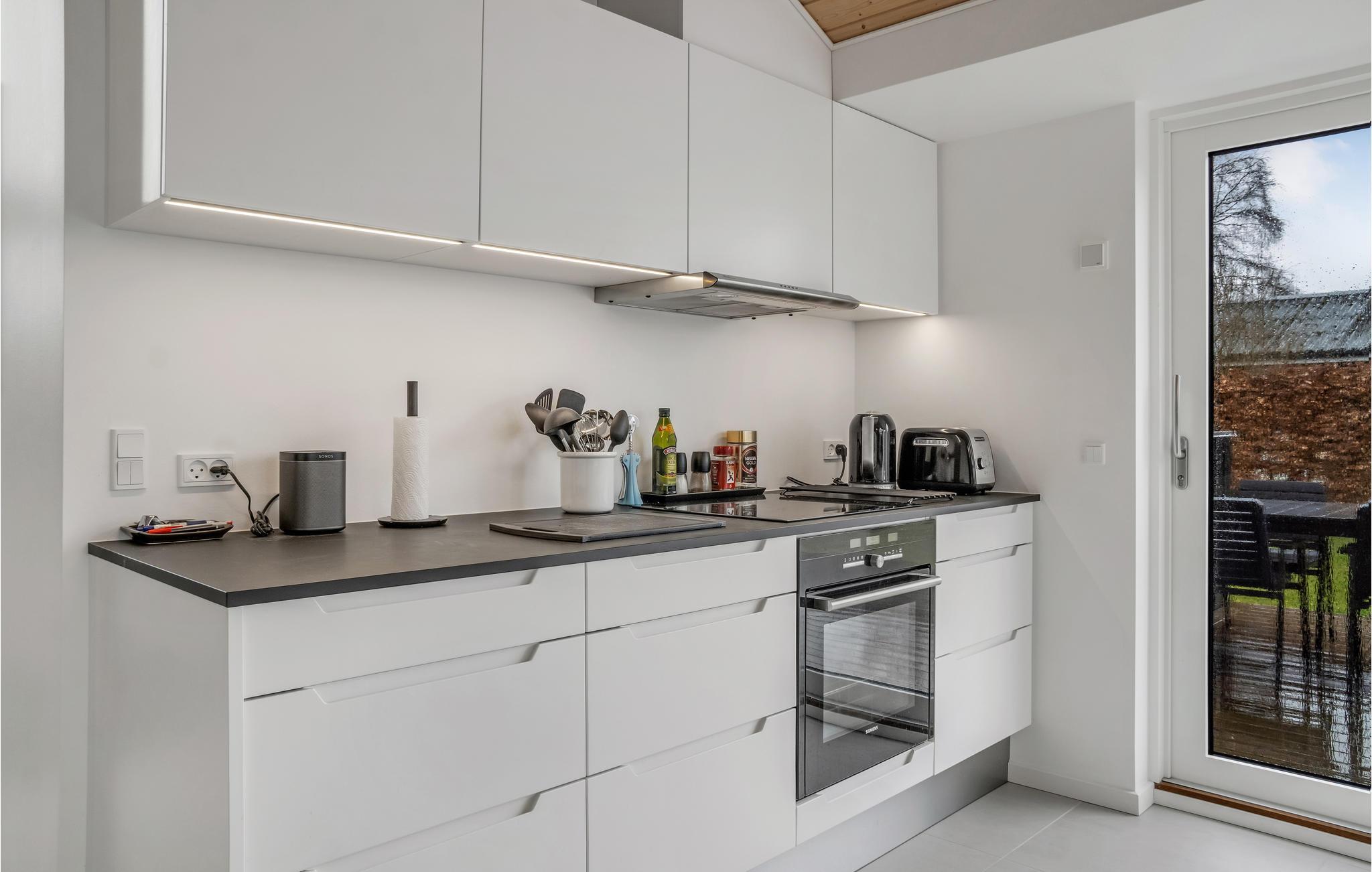 Dette eksklusive hus har en god beliggenhed og giver jer optimale rammer til en afslappende ferie, hvor I ikke kommer til at mangle noget. De lyse lokaler er moderne indrettet i subtile farver, mens de store panoramavinduer sikrer et luftigt udtryk og giver jer en vidunderlig udsigt fra morgen til aften. Her kan I komme helt ned i gear og glemme alt om hverdagens travle program. Nyd husets elegante detaljer og lad blikket vandre over haven, mens I giver jer god tid til dagens måltider eller læner jer tilbage i sofaen. I vinterhalvåret kan I skrue ekstra op for hyggen ved at tænde ild i brændeovnen og snakke om dagens oplevelser, ??mens flammerne knitrer i baggrunden.