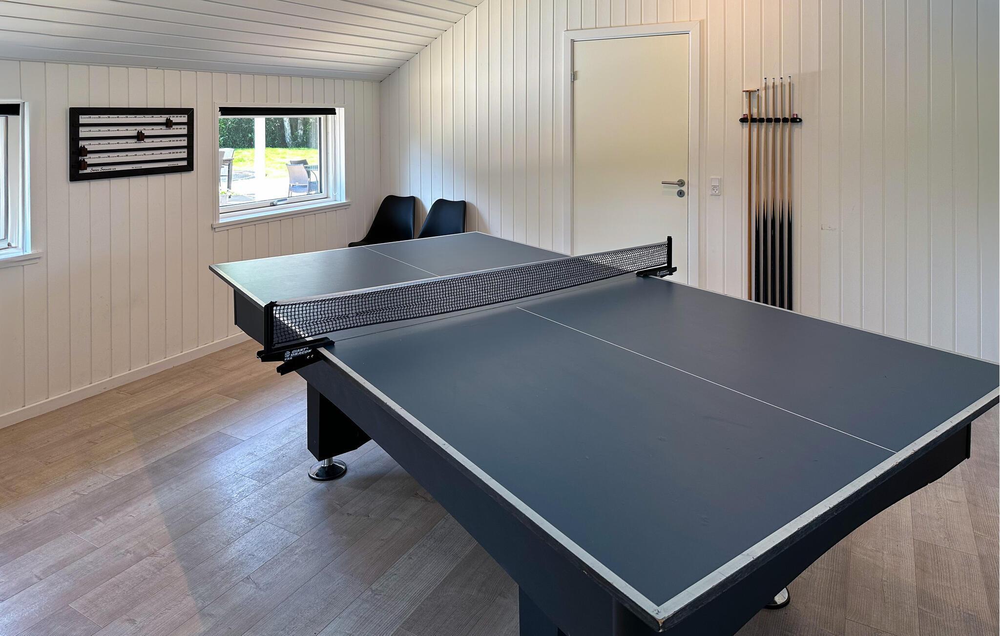 Rummeligt feriehus med privat pool og aktivitetsrum nær familievenlig strand.