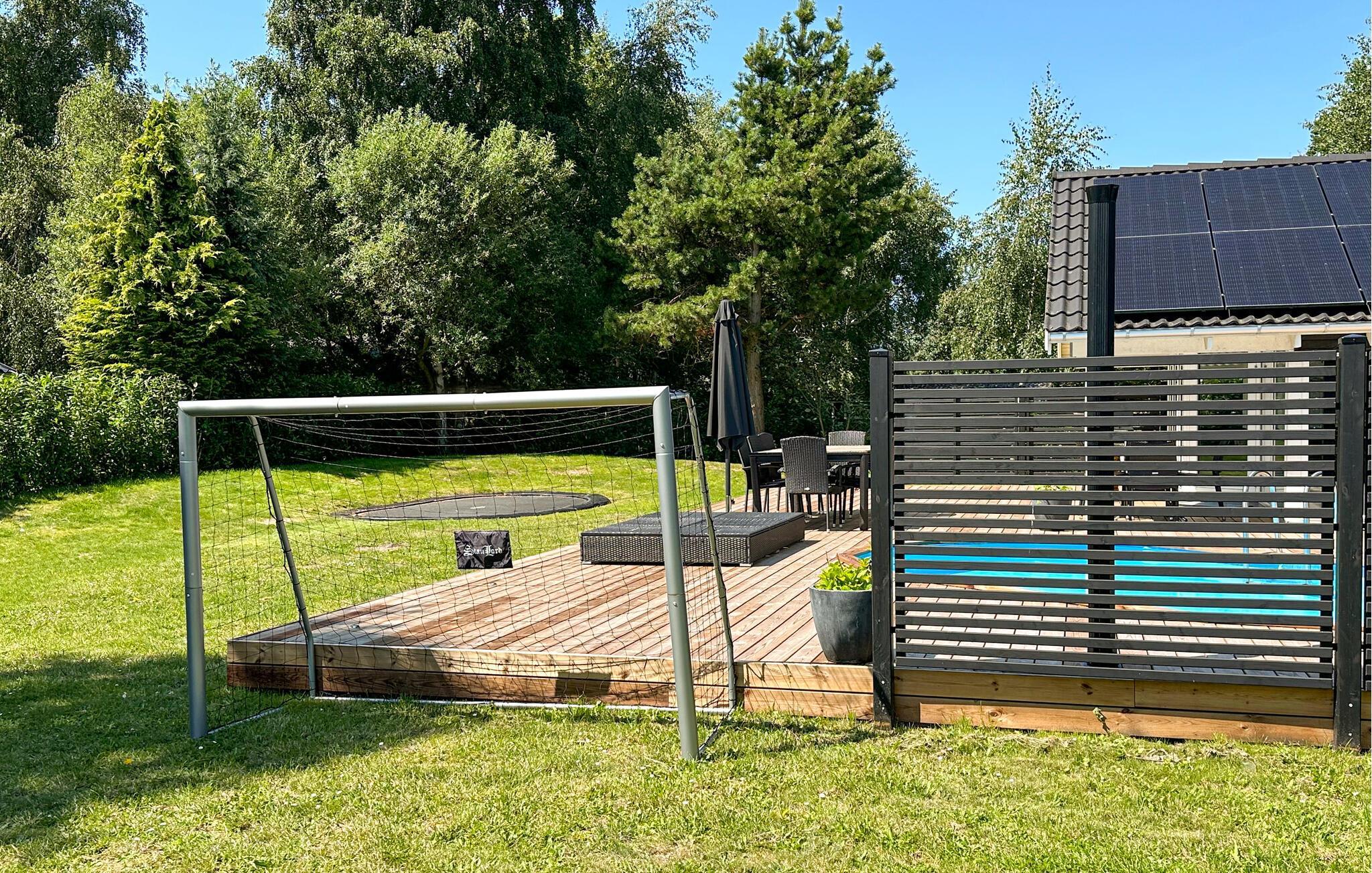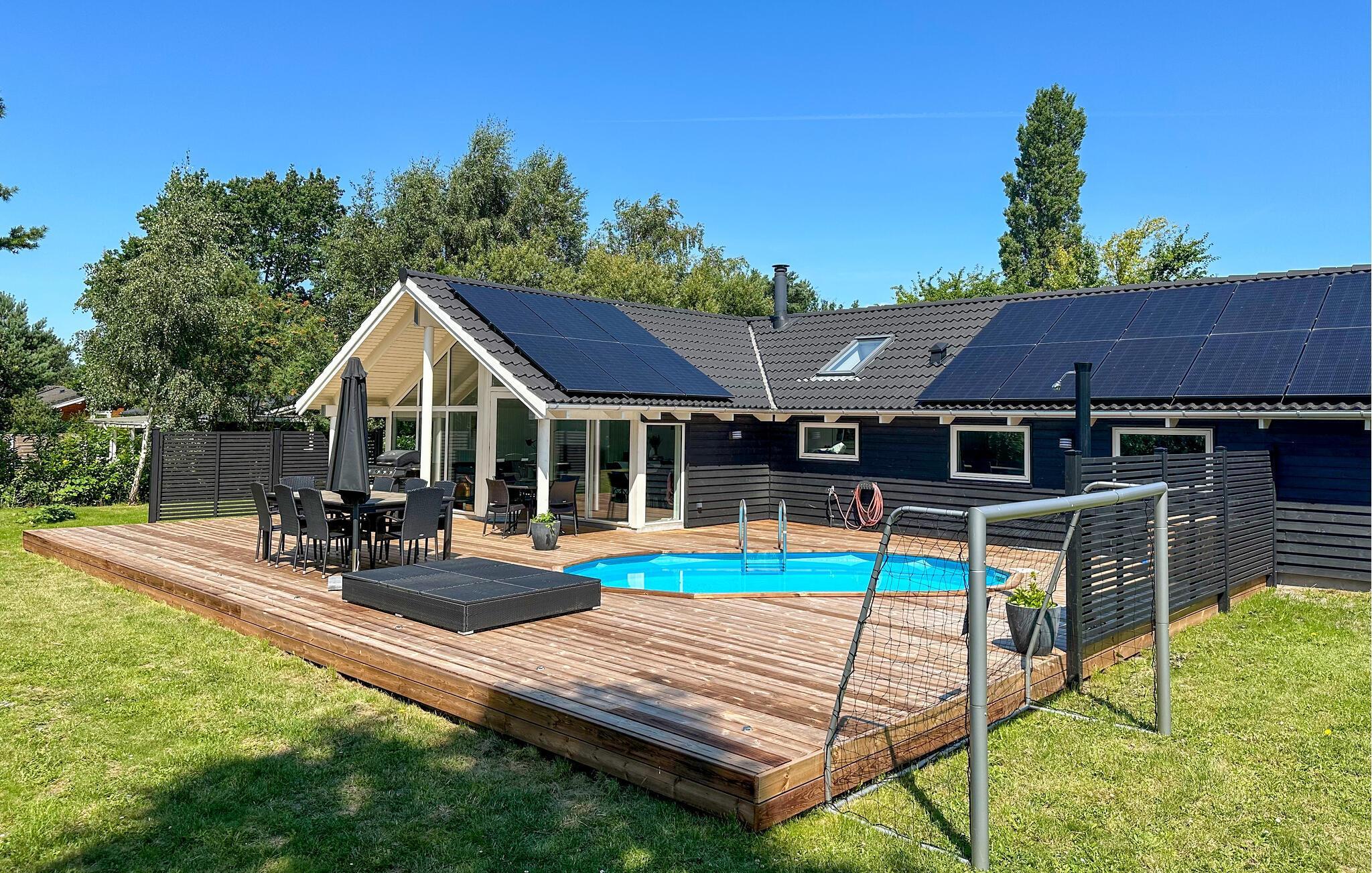 Dette rummelige og flotte feriehus, ligger på en dejlig lukket naturgrund i gåafstand til en familievenlig sandbadestrand. Husets attraktion er uden tvivl den udendørs swimmingpool som er tilgængelig fra ca. 15.6. - 1.9. Husets aktivitetsrum med billard, bordtennis og dart er endnu et trækplaster. Stort badeværelse med spabad og sauna. Stort åbent køkken med alt i hårde hvidevare. Stue med brændeovn og komfortable møbler. Fra stue er der udgang til den overdækkede terrasse. Herfra kan du holde øje med børnene som bader i swimmingpoolen. Huset ligger i et roligt område og ikke langt fra badestranden. Besøg Lalandia Aquadome, Knuthenborg Safaripark eller spis traditionel dansk mad på Restaurant Den Gamle Digegaard. Huset udlejes ikke til ungdomsgrupper.