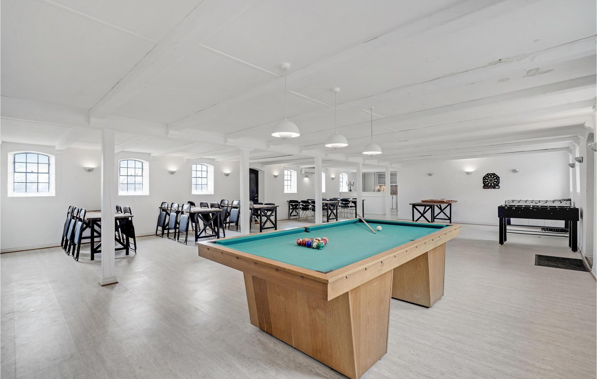 Her er den landlige charme bevaret i små detaljer rundt om i huset, som de smukke, originale bjælker der går gennem hele huset. I kan blandt andet glæde jer til store lyse rum med masser af plads til hygge og afslapning. I den store sofa i opholdsstuen kan I komme helt ned i gear foran fjernsynet, og I kan glæde jer til festlige middage i den hyggelige spisestue. Her kommer I bestemt ikke til at kede jer, der er nemlig et aktivitetsrum med billardbord og masser af plads til leg og spil for hele familien. Dette rum er også oplagt til festlige begivenheder.