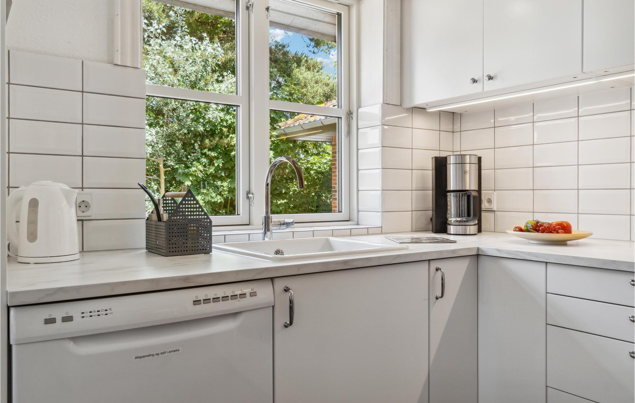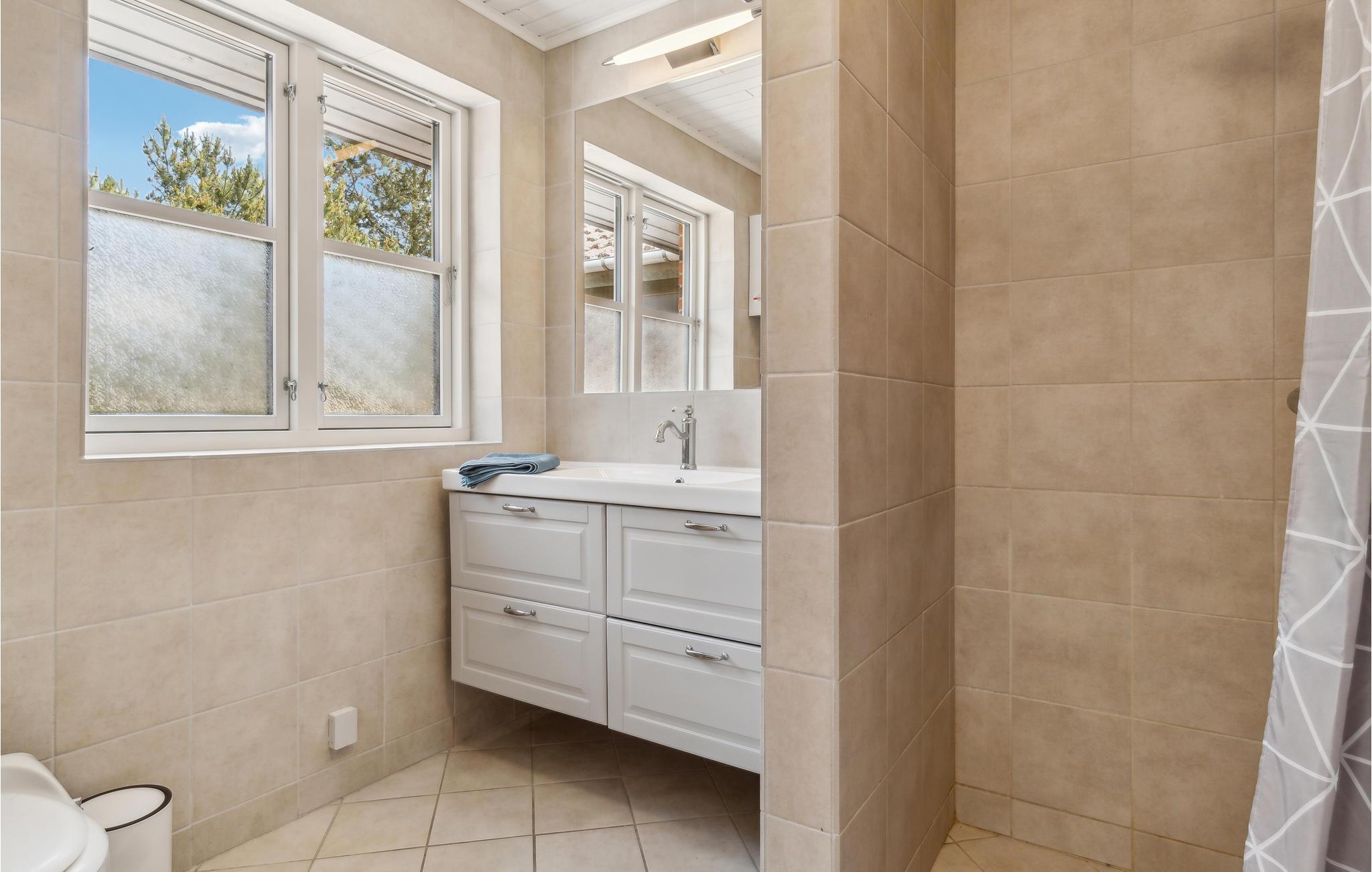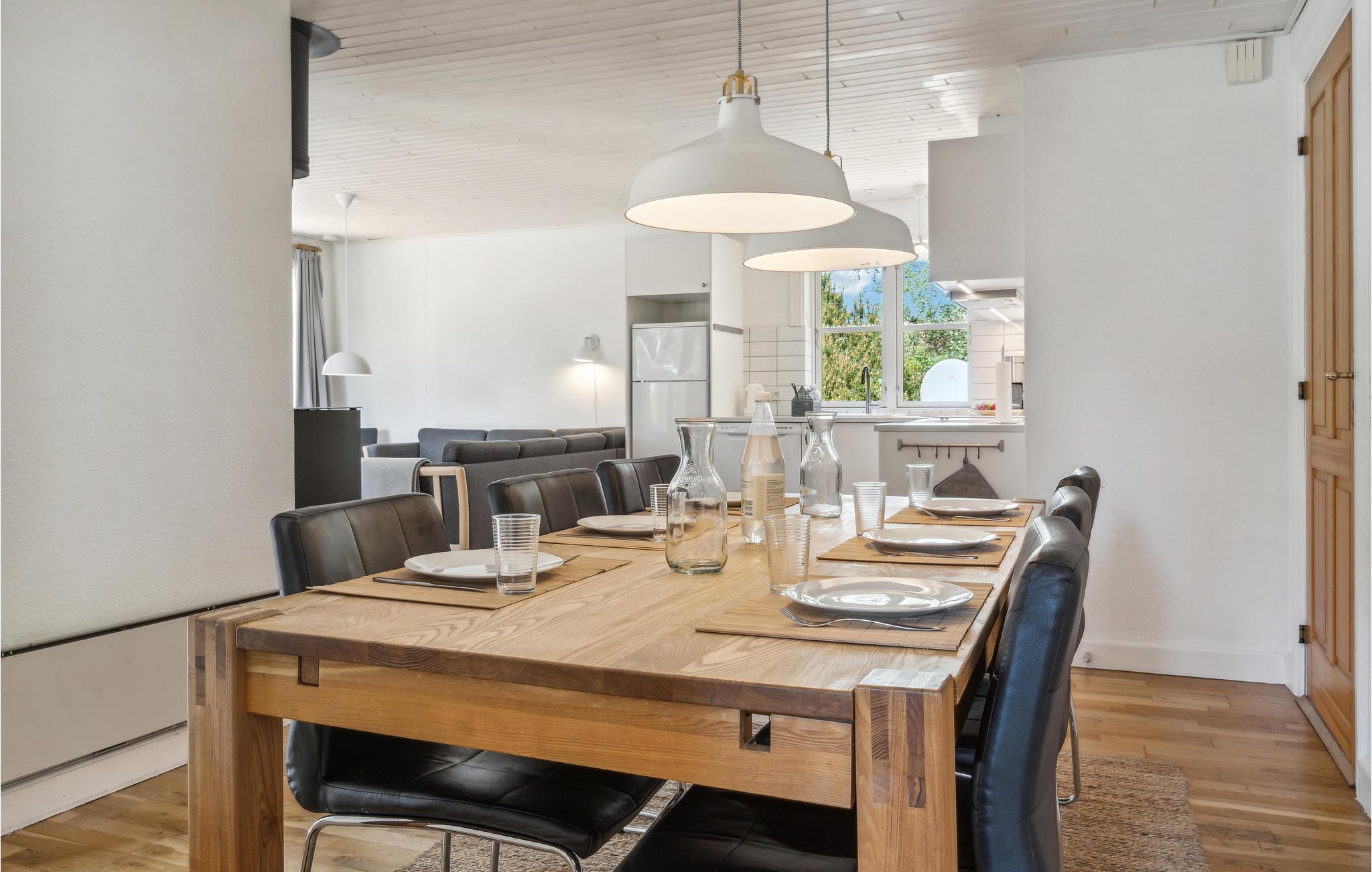 Velkommen til dette komfortable og indbydende feriehus, der ligger på en naturgrund i smukke og rolige omgivelser. Træd ind, og nyd den lyse og behagelige atmosfære og de flotte trægulve. Det pæne og velfungerende køkken forbinder spise- og opholdsstuen, som begge fremstår rummelige og åbne. Spisestuen byder på et spisebord med plads til hele familien, mens opholdsstuen er indrettet med en stor hjørnesofa og et kaffebord. Nyd feriedagene sammen som familie med madlavning, gode middage, spil og film. Og find roen foran brændeovnen, der bidrager med varme og hygge. Badeværelset byder på en niveaufri bruser og gulvvarme, og takket være vildmarksbadet, der befinder sig i carporten, har I her jeres helt egen wellnessafdeling. Slap også af på det åbne og det overdækkede terrasseareal, og nyd solen i havemøblerne, mens børnene gynger og leger i sandkassen.