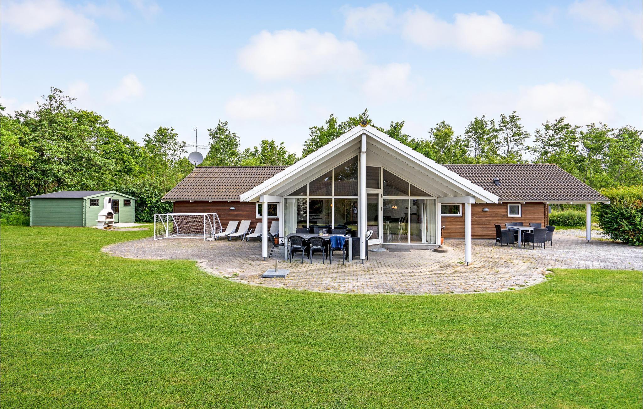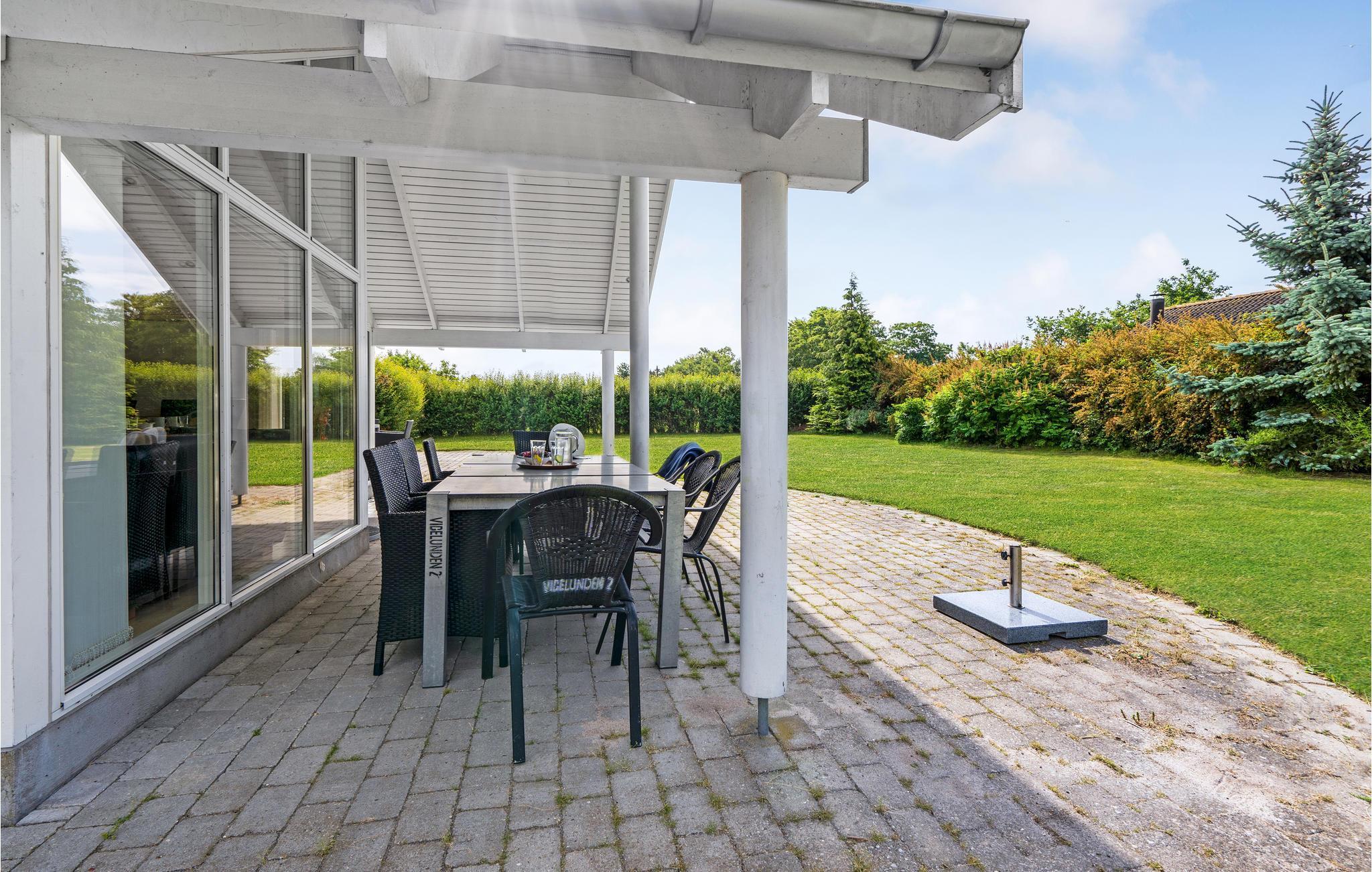 Pragtfuldt feriehus nær børnevenlig sandstrand med moderne faciliteter og stor terrasse for afslapning.
