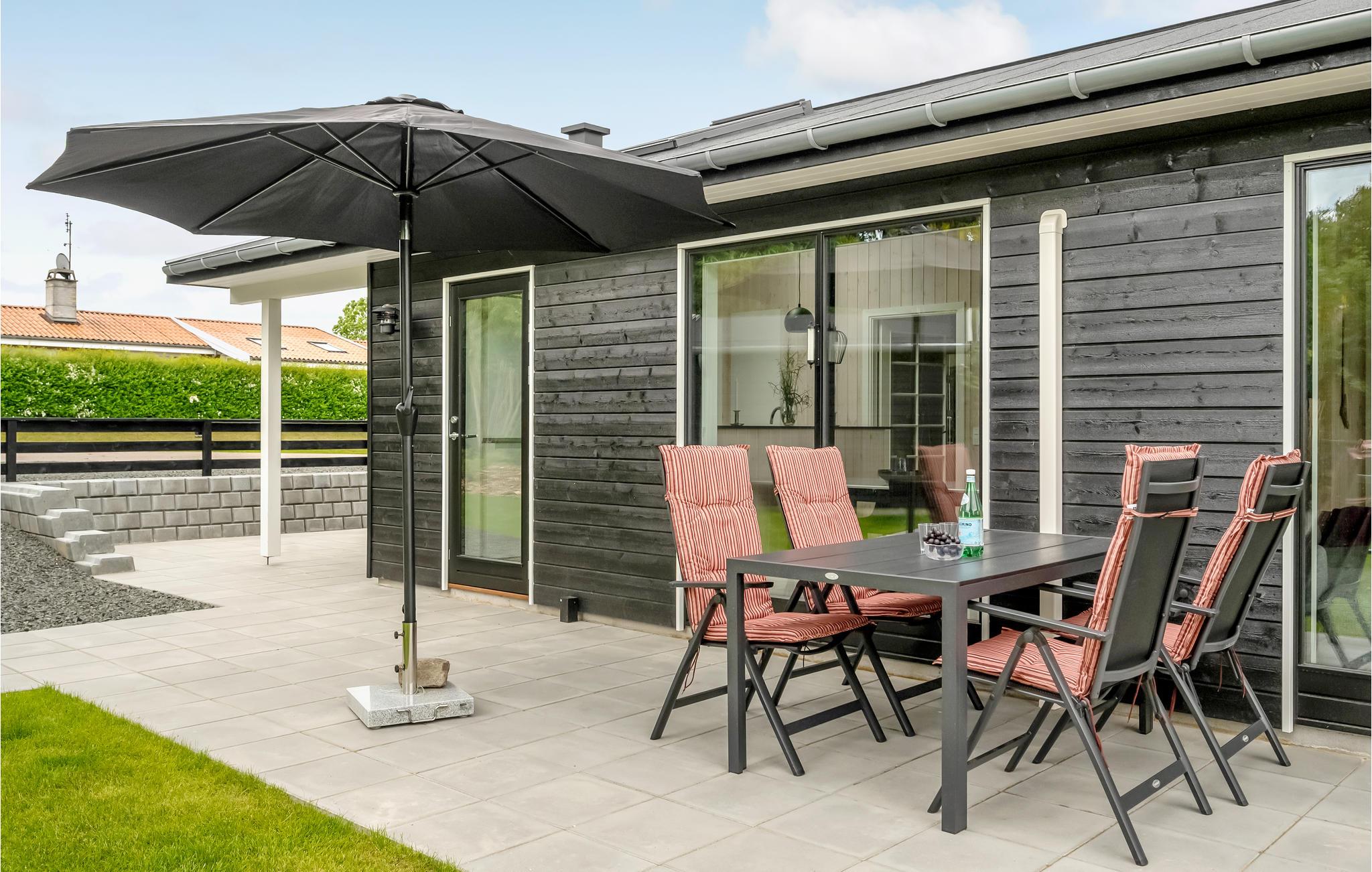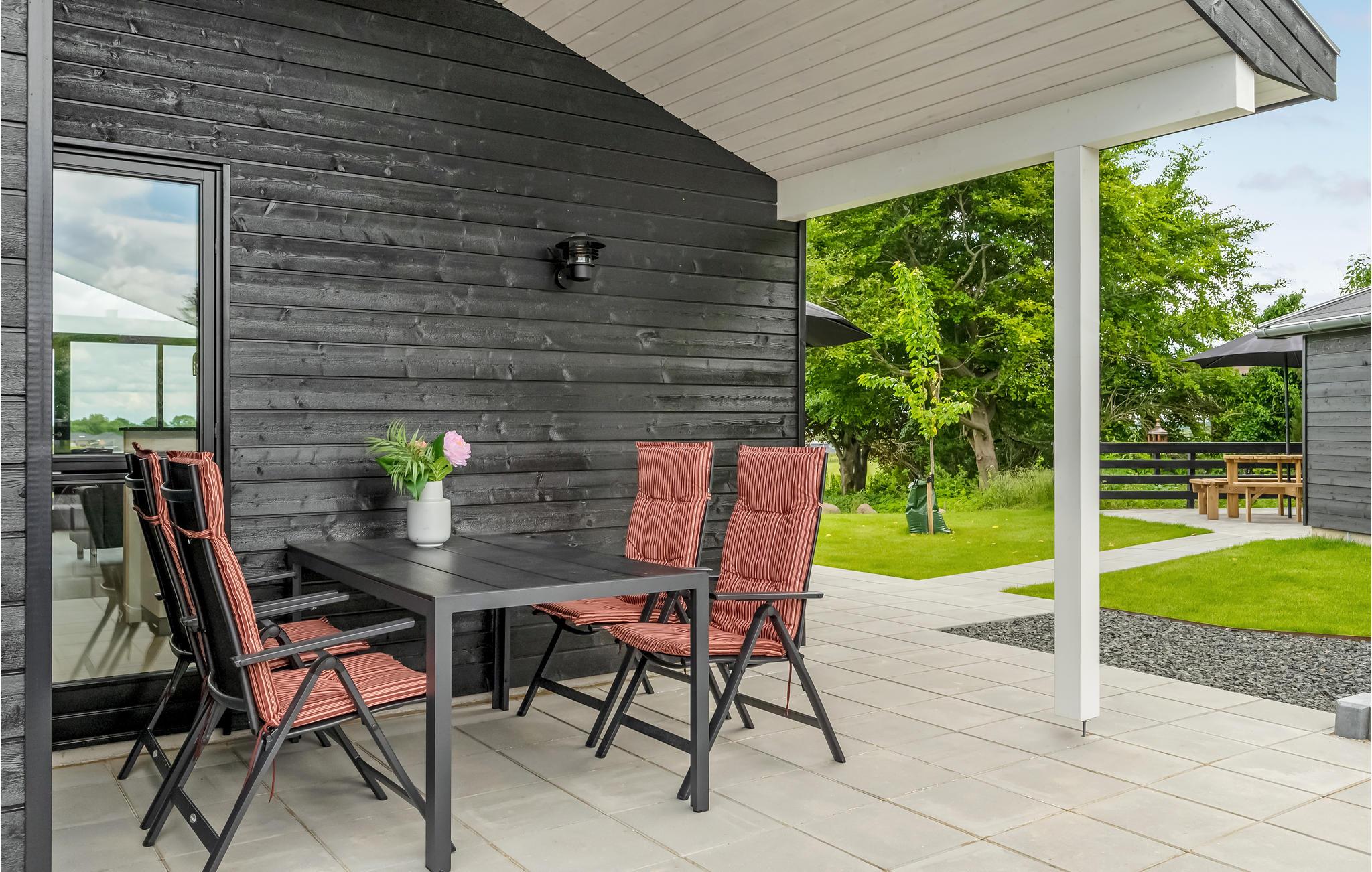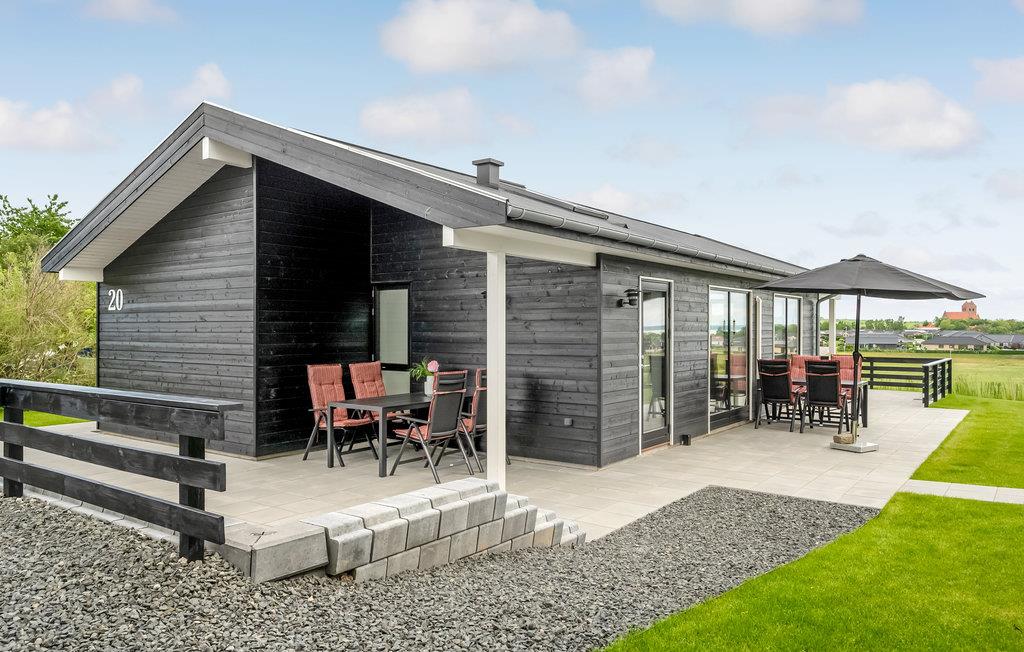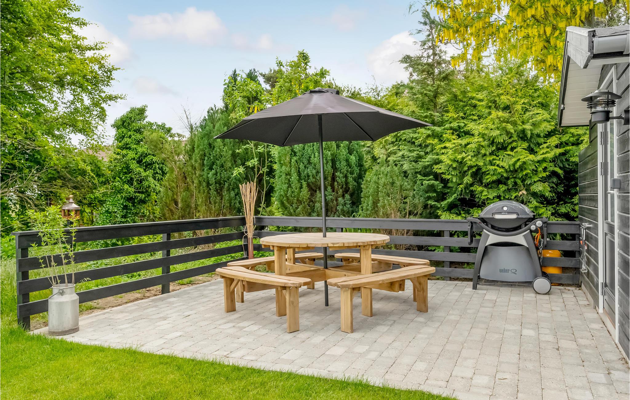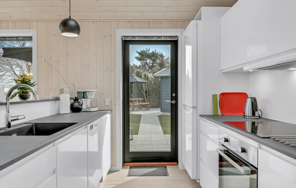 Huset er opført i bæredygtigt træ og er indrettet i en enkel, moderne stil. Der er nem adgang til haven, hvor I kan grille på terrassen om sommeren.