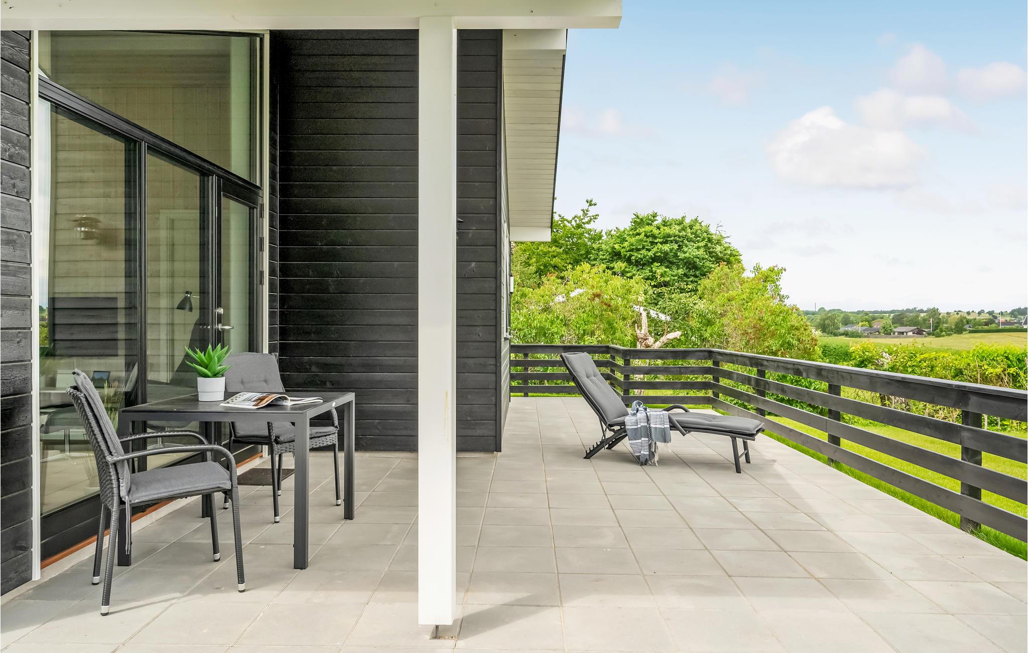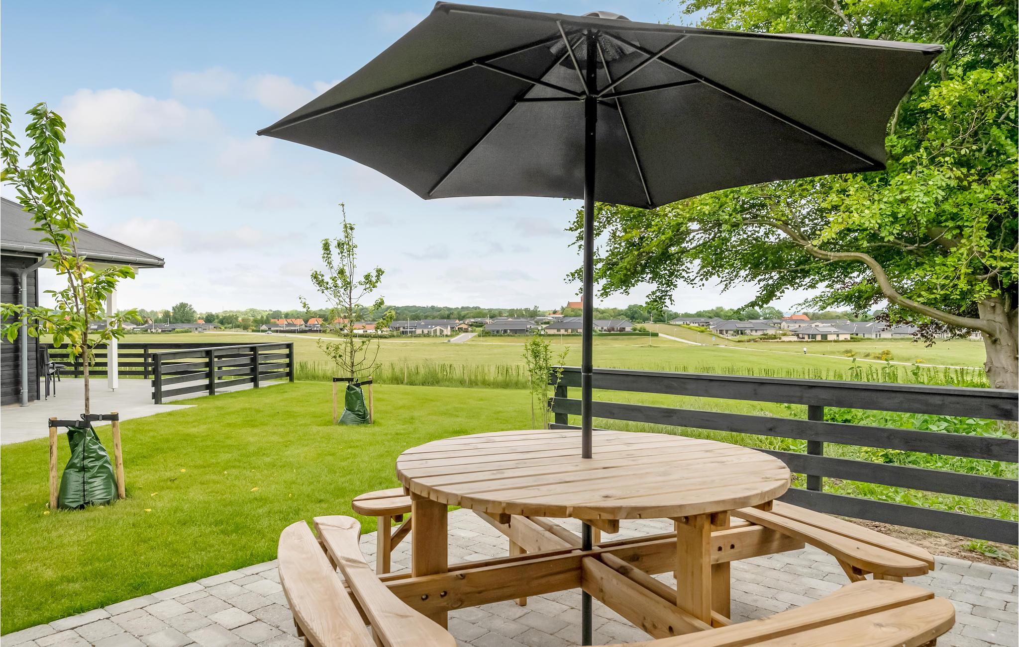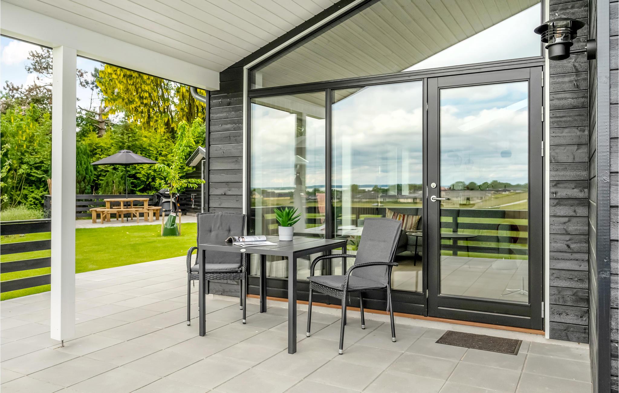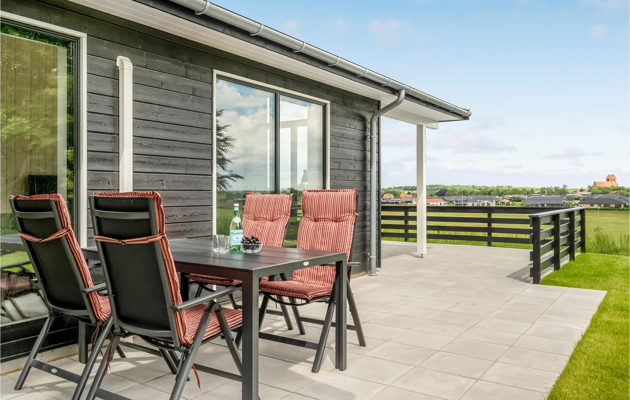 Huset er opført i bæredygtigt træ og er indrettet i en enkel, moderne stil. Der er nem adgang til haven, hvor I kan grille på terrassen om sommeren.