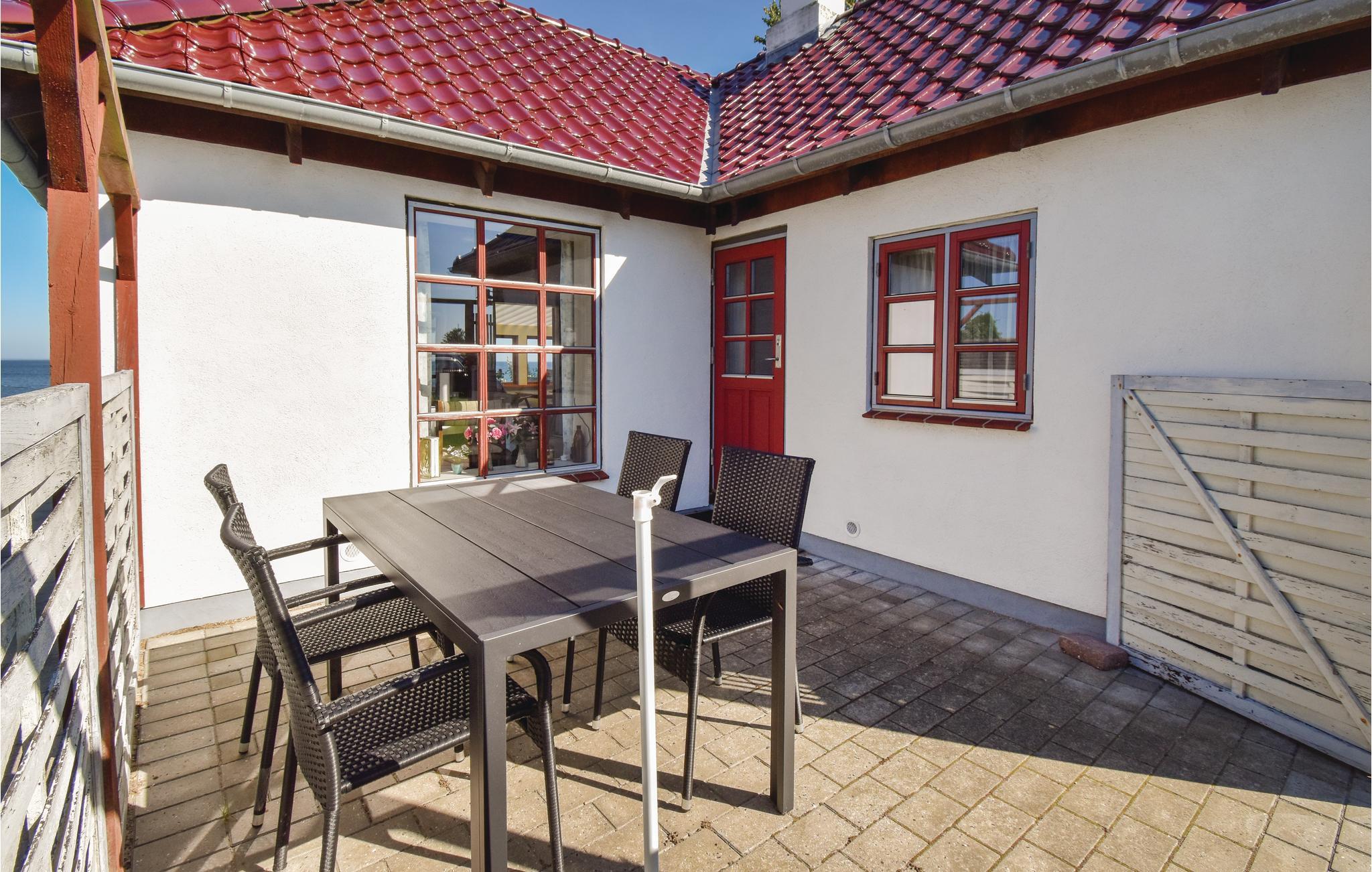 Hvis I vil holde jeres ferie i 1. række og helt ned til vandkanten, er dette sommerhus det oplagte valg. Huset ligger i det rolige område ved Kristiansminde Strand tæt ved Hasmark, kun 25 km fra Odense. Fra huset og fra terrassen er der en fantastisk udsigt over havet. Hvor husets grund slutter, starter den dejlige og familievenlige strand. Til soveværelserne er der forhæng (ingen døre).