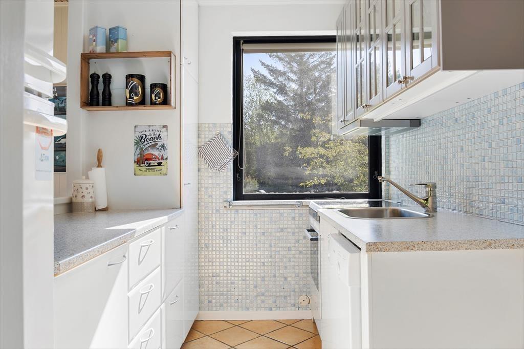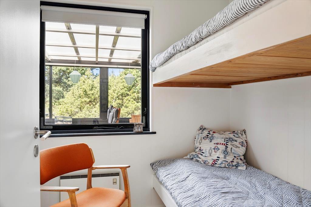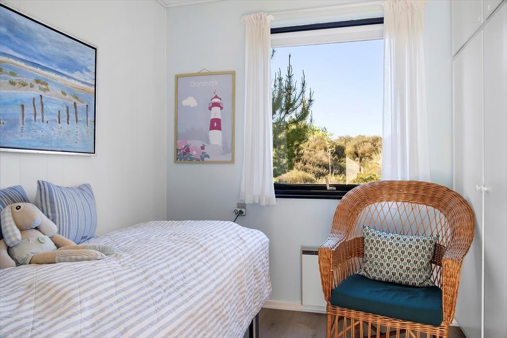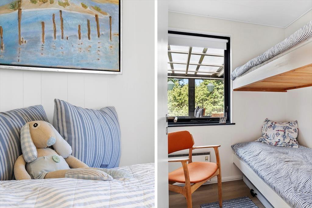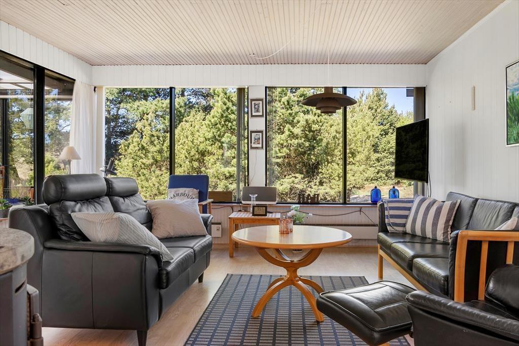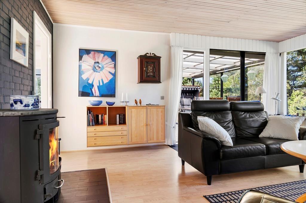 Sommerhuset har stået her i de naturskønne omgivelser siden 1968, men der er sket meget i mellemtiden. Det er nemlig blevet vedligeholdt og moderniseret omhyggeligt gennem årene – blandt andet er det opdateret med et flot badeværelse med gulvvarme, komfortable senge og god skabsplads. Inden døre er 74 m² fornuftigt fordelt på tre soveværelser, det førnævnte badeværelse og et dejligt opholdsrum med stue og køkken i åben forbindelse. Her kan du rigtigt hygge dig i sofaerne og eventuelt tænde op i brændeovnen, hvis det er køligt udenfor. Trænger du til god underholdning, er der 30 kanaler at zappe igennem på fladskærms-TV'et, med mindre du bare vil nyde den grønne udsigt gennem de store stuevinduer.