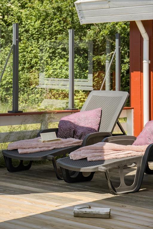 For enden af en lille, lukket vej på en stor grund i Kromose finder du dette charmerende sommerhus. Her kan du nyde udelivet på den skønne solterrasse, og inden døre er der som en skøn detalje både spa og sauna på det ene badeværelse.