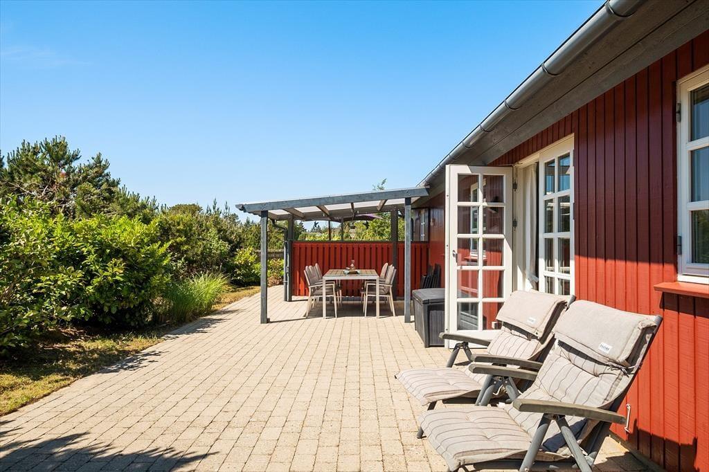 Der er direkte udgang fra stuen og køkkenet, så på lune dage kan du invitere den friske sommerluft indenfor – eller selv smutte ud under åben himmel. På det flisebelagte terrasseareal kan du vælge imellem flere gode opholdspladser, hvis du vil slappe af eller grille, og på den grønne naturgrund finder du desuden et legestativ med gynge, en sandkasse og sågar en petanquebane.