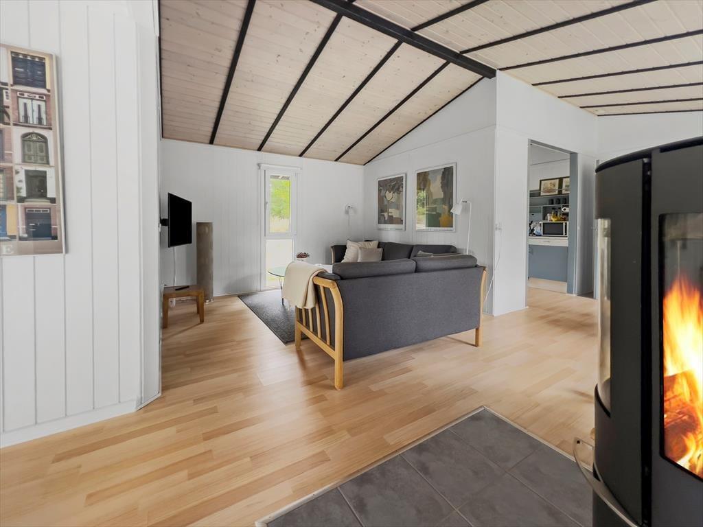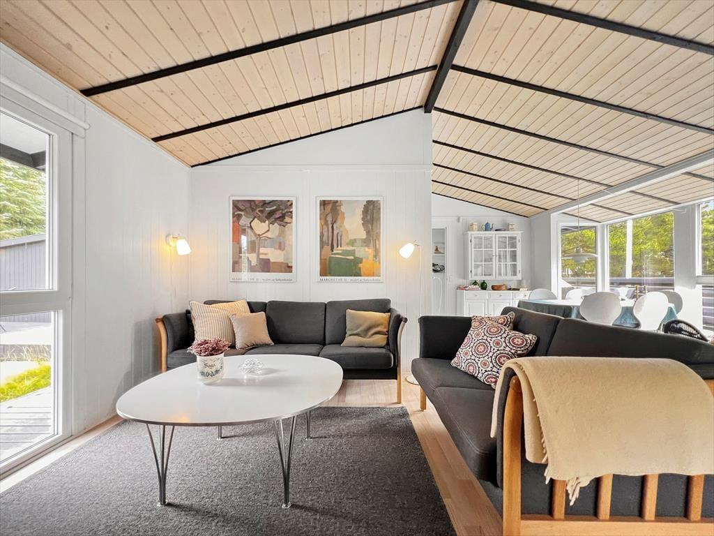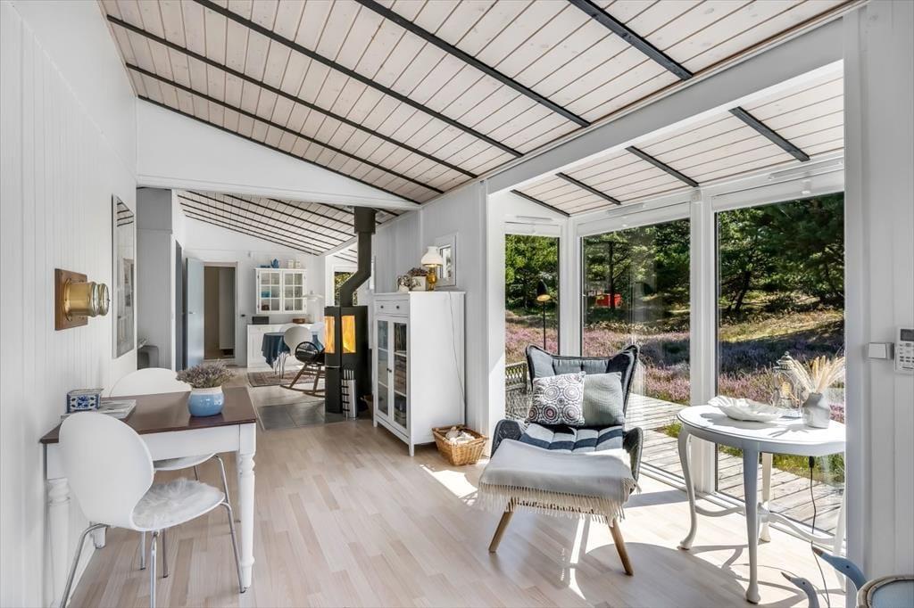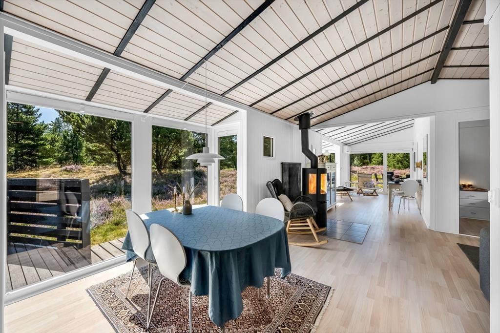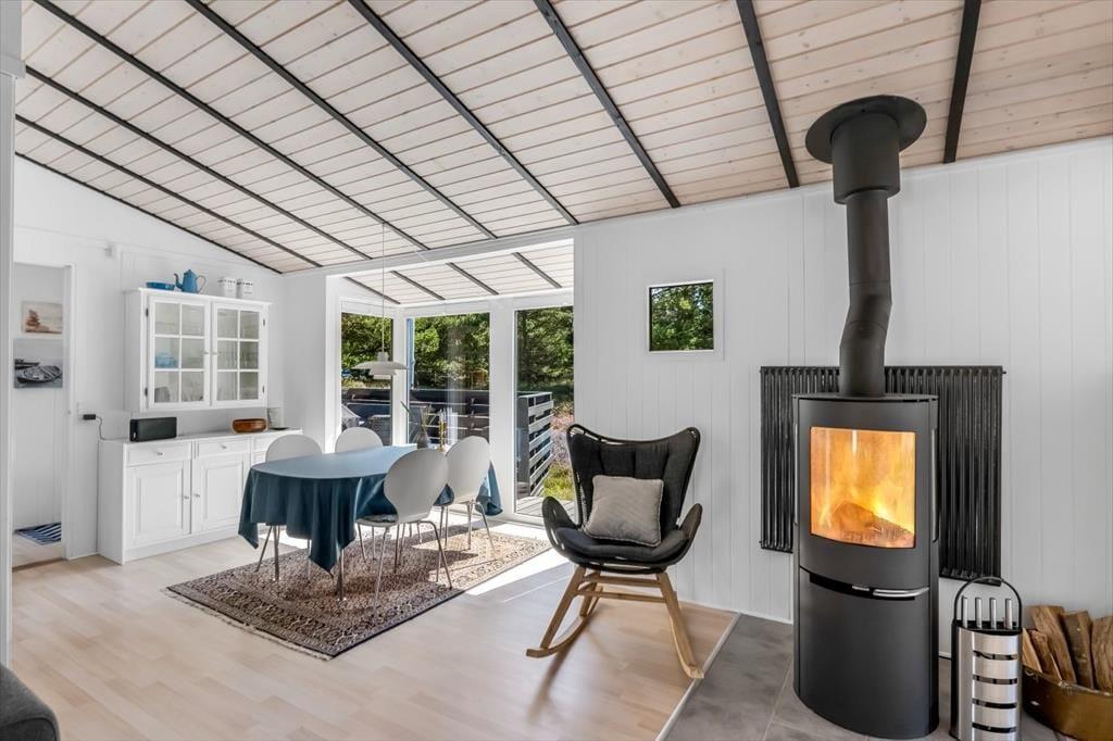 Sommerhusets lyse og stilfulde rammer inviterer til, at du og dine kære tager ferien i helt roligt tempo. Det er nemlig intet mindre end skønt at bruge lang tid på at drikke kaffe og nyde morgenmaden, mens I kigger ud på den fri natur fra opholdsrummets spiseplads – og måske får I endda øje på et rådyr eller en fasan, der kommer forbi på grunden. En daglig udflugt eller to er selvfølgelig også en god idé, når det er ferietid, med mindre I bare trænger til at hygge igennem inden døre med brætspil, boglæsning og strikkeprojektet i stuens komfortable møbler. Tre dejlige soveværelser sørger for, at I kan være op til fem personer i huset, og på det flotte badeværelse er det muligt at tage brusebad med kig til den blå himmel.