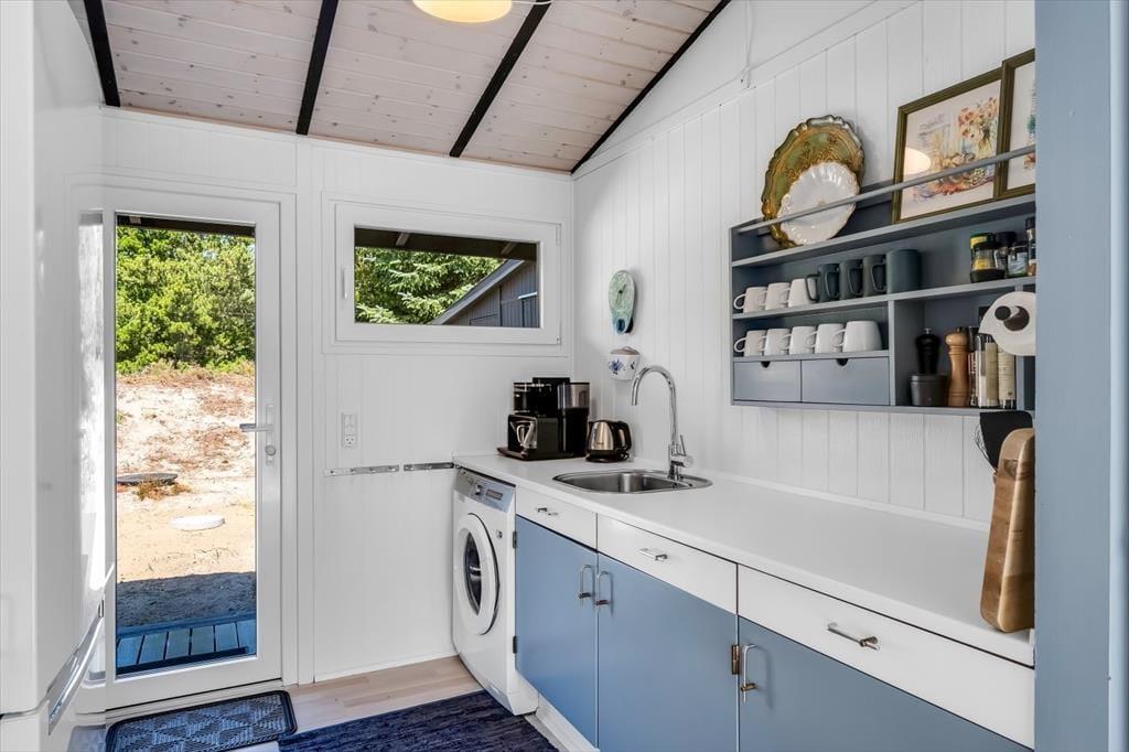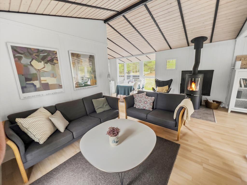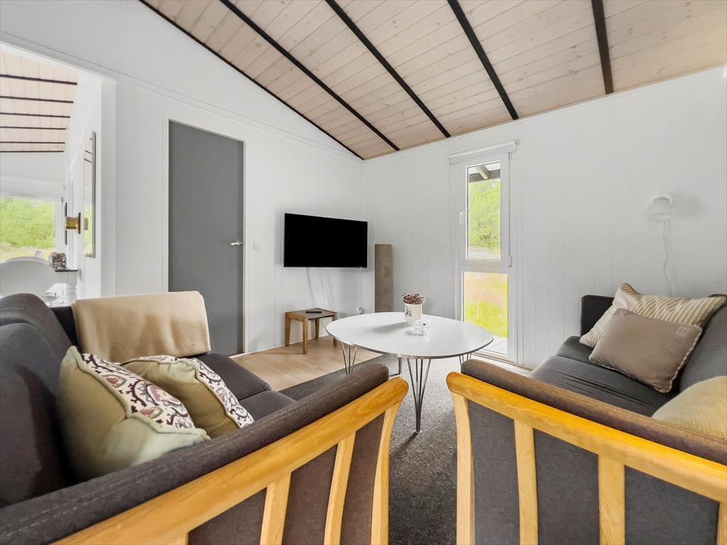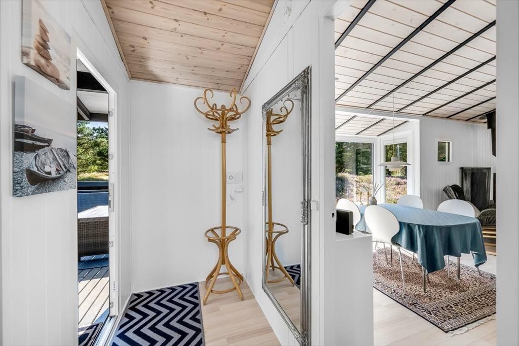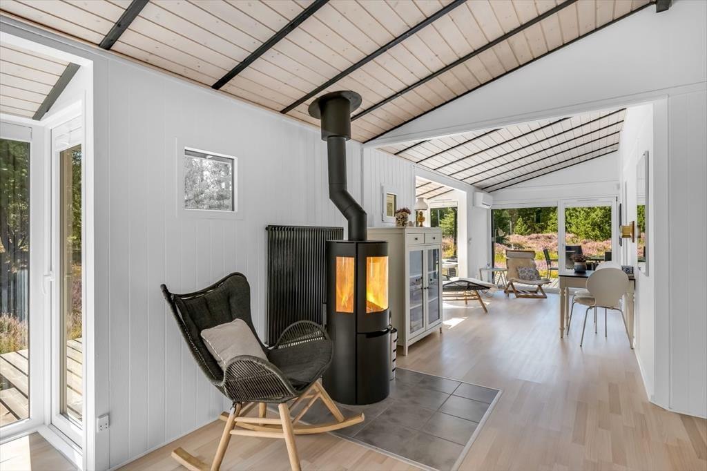 Sommerhusets lyse og stilfulde rammer inviterer til, at du og dine kære tager ferien i helt roligt tempo. Det er nemlig intet mindre end skønt at bruge lang tid på at drikke kaffe og nyde morgenmaden, mens I kigger ud på den fri natur fra opholdsrummets spiseplads – og måske får I endda øje på et rådyr eller en fasan, der kommer forbi på grunden. En daglig udflugt eller to er selvfølgelig også en god idé, når det er ferietid, med mindre I bare trænger til at hygge igennem inden døre med brætspil, boglæsning og strikkeprojektet i stuens komfortable møbler. Tre dejlige soveværelser sørger for, at I kan være op til fem personer i huset, og på det flotte badeværelse er det muligt at tage brusebad med kig til den blå himmel.