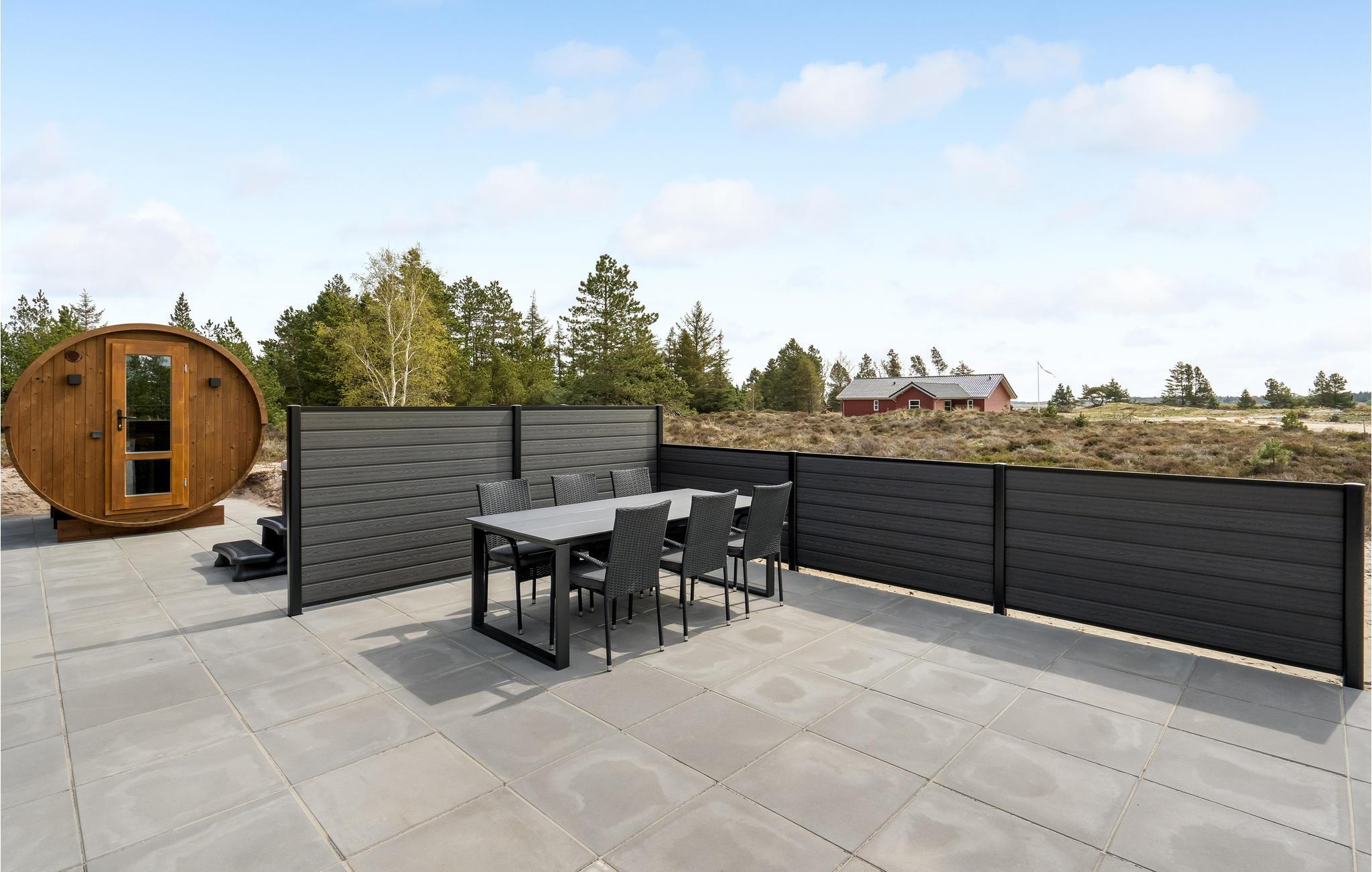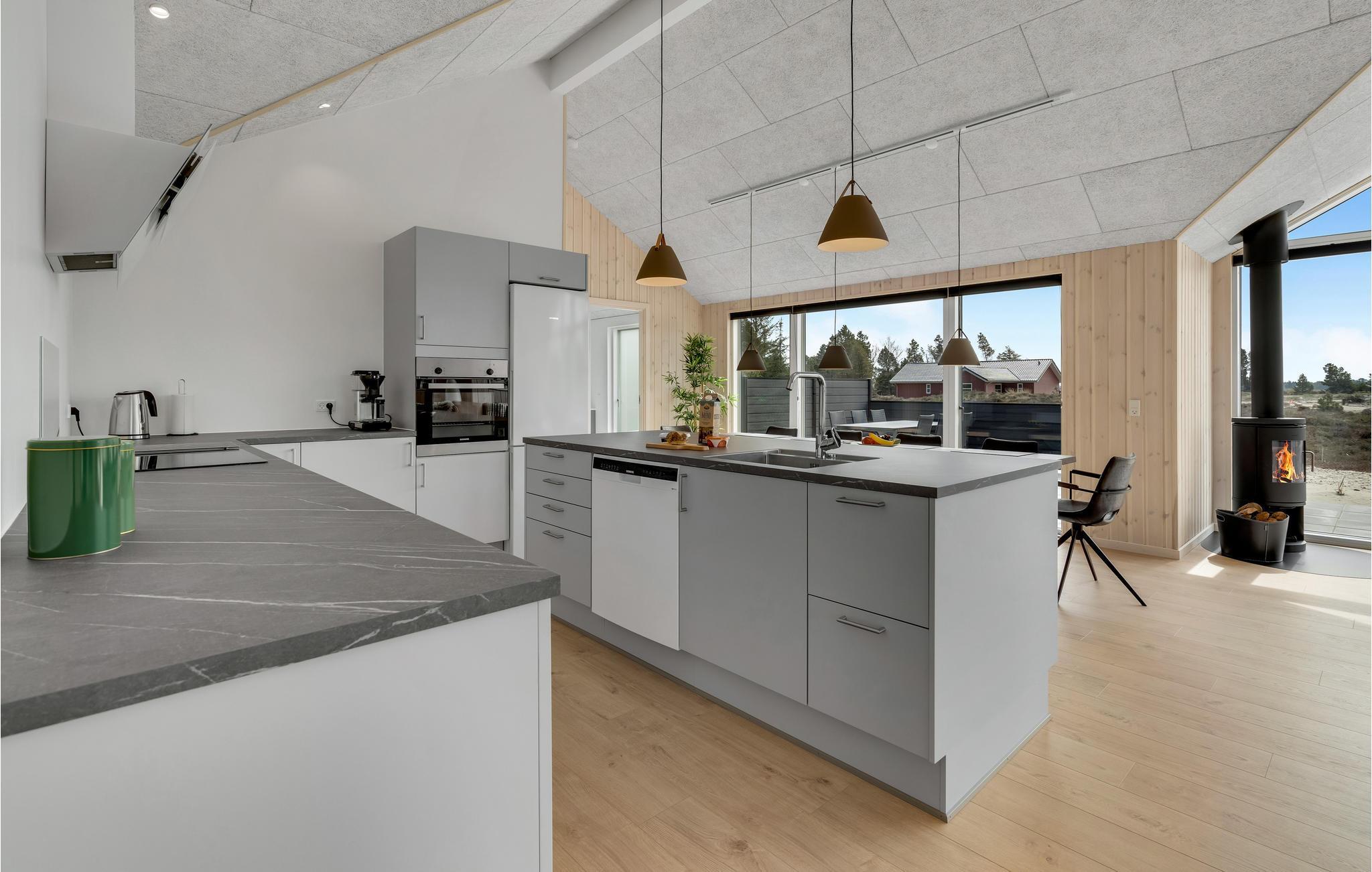 Indlejret i Kromoses flotte klitlandskab ligger dette dejlige feriehus. Her er der masser af plads og gode rammer til nogle hyggelige dage med den store familie eller jeres gode venner og deres børn. Boligen emmer af smarte løsninger til alt fra afslapning til aktiviteter og giver jer fine forhold til at samles og nyde hinandens selskab. Huset og haven har masser af tilbud til en ferie uanset årstid og vejrlig. Opholdsrummet bliver jeres faste samlingssted i eftermiddagstimerne, hvor I kan gøre aftenretterne klar sammen, spille brætspil ved spisebordet eller se en serie i sofaen, mens ilden knitrer i brændeovnen. I aktivitetsrummet kan børn og aktive voksne kaste sig over billard, bordtennis, dart og en spillekonsol.