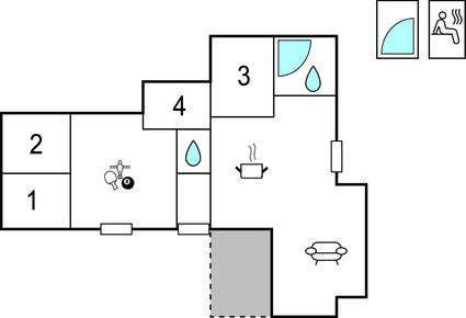 Badeværelse (nr. 1) - WC. Varmt og koldt vand. Bruser