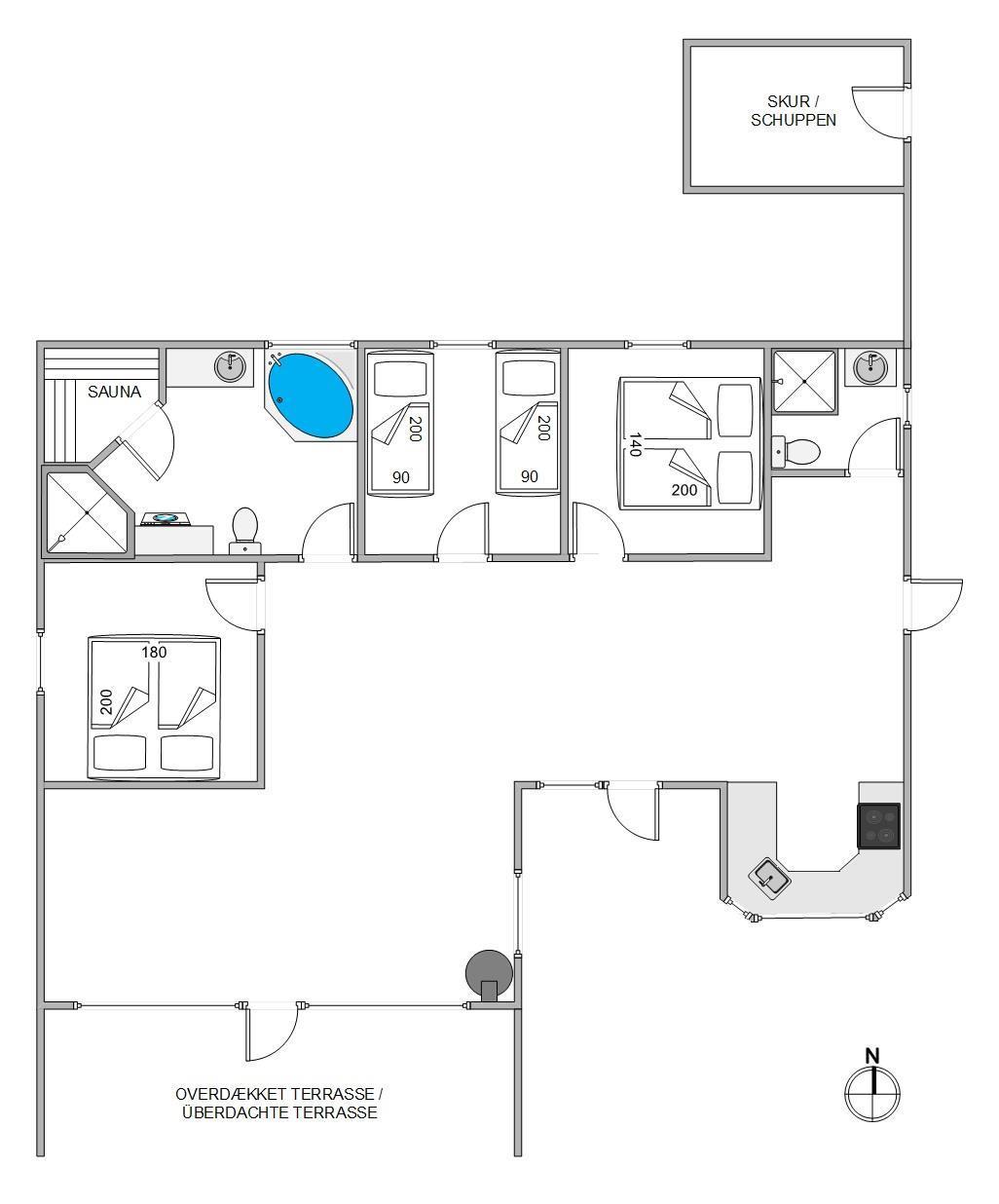 Den gode nattesøvn er sikret i de 2 lyse soverum med dobbeltsenge og et værelse med 2 enkeltsenge. Der er desuden en hems, og 2 lyse badeværelser er der gulvvarme. Køkkenet er klassisk åbent ud til alrummet med mulighed for samtale og kortspil, mens der kokkereres. Den perfekte ramme for en vellykket familieferie. Her kan hygges både ude og inde.