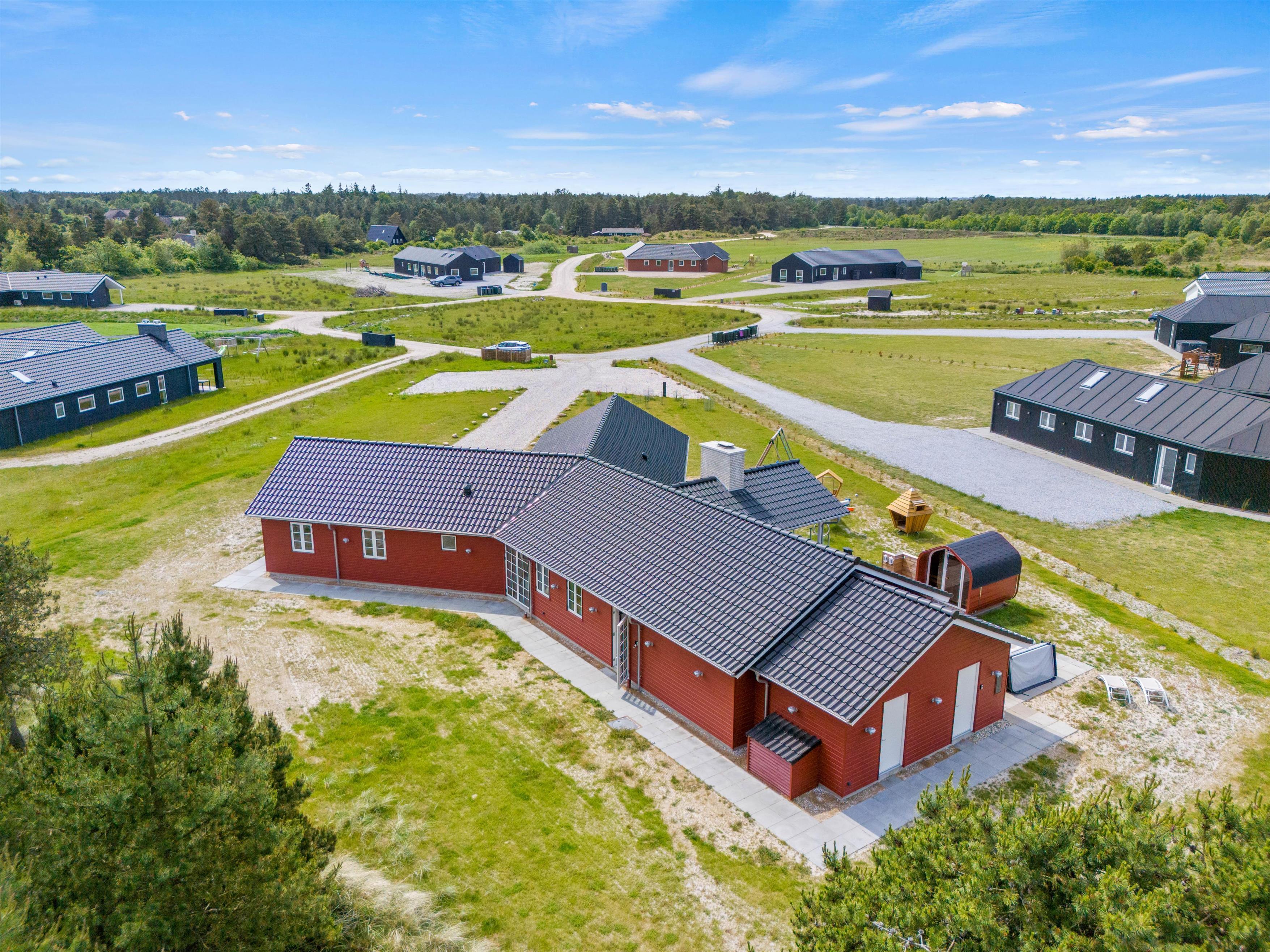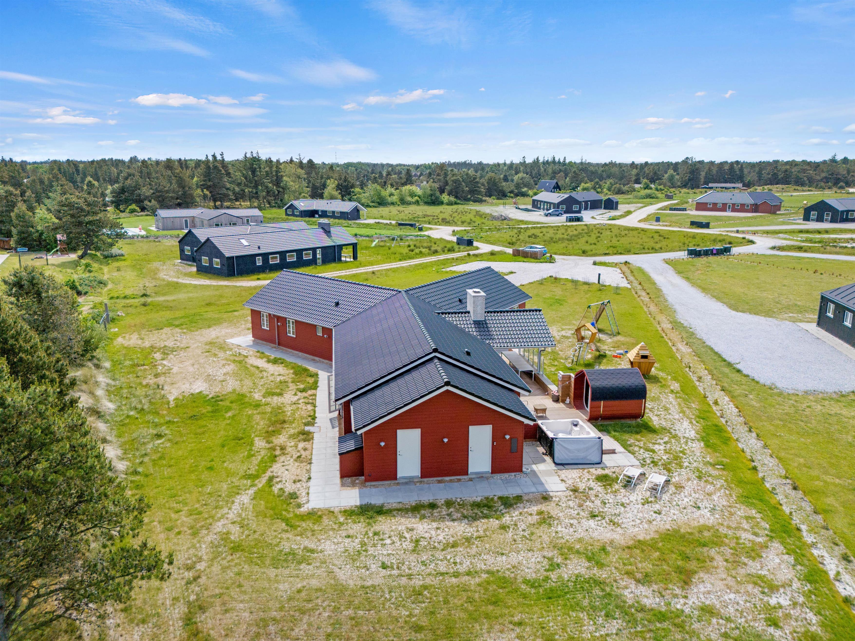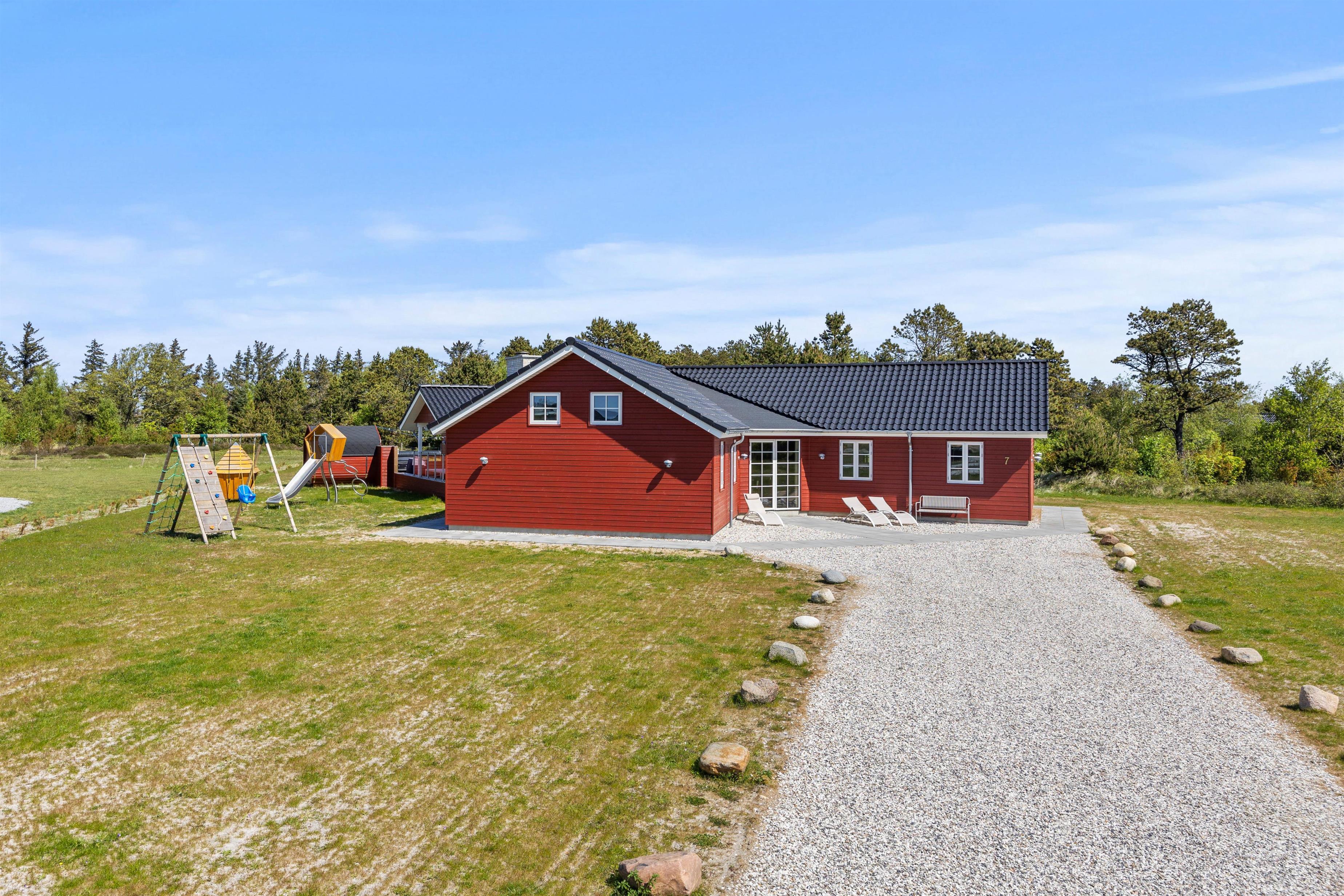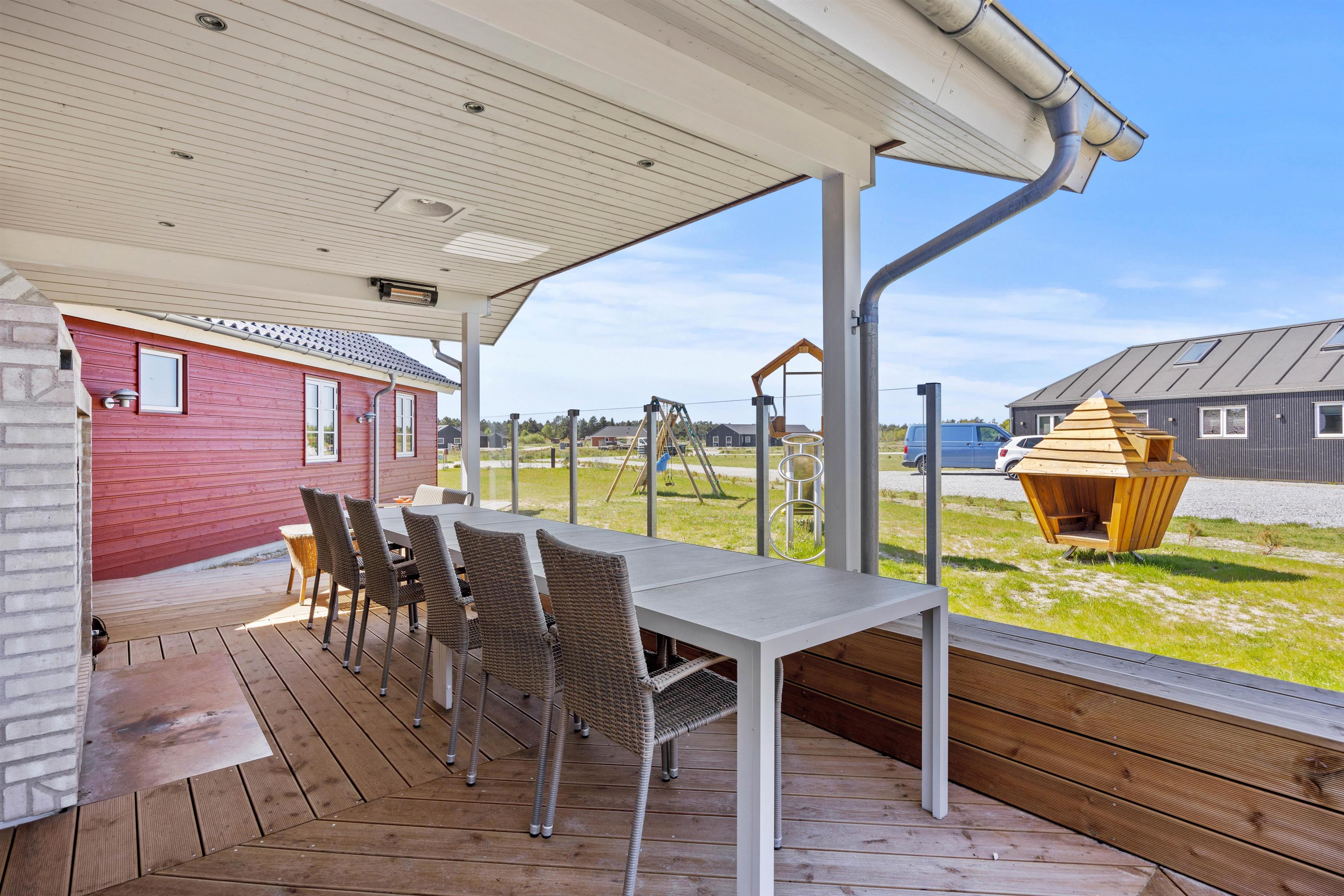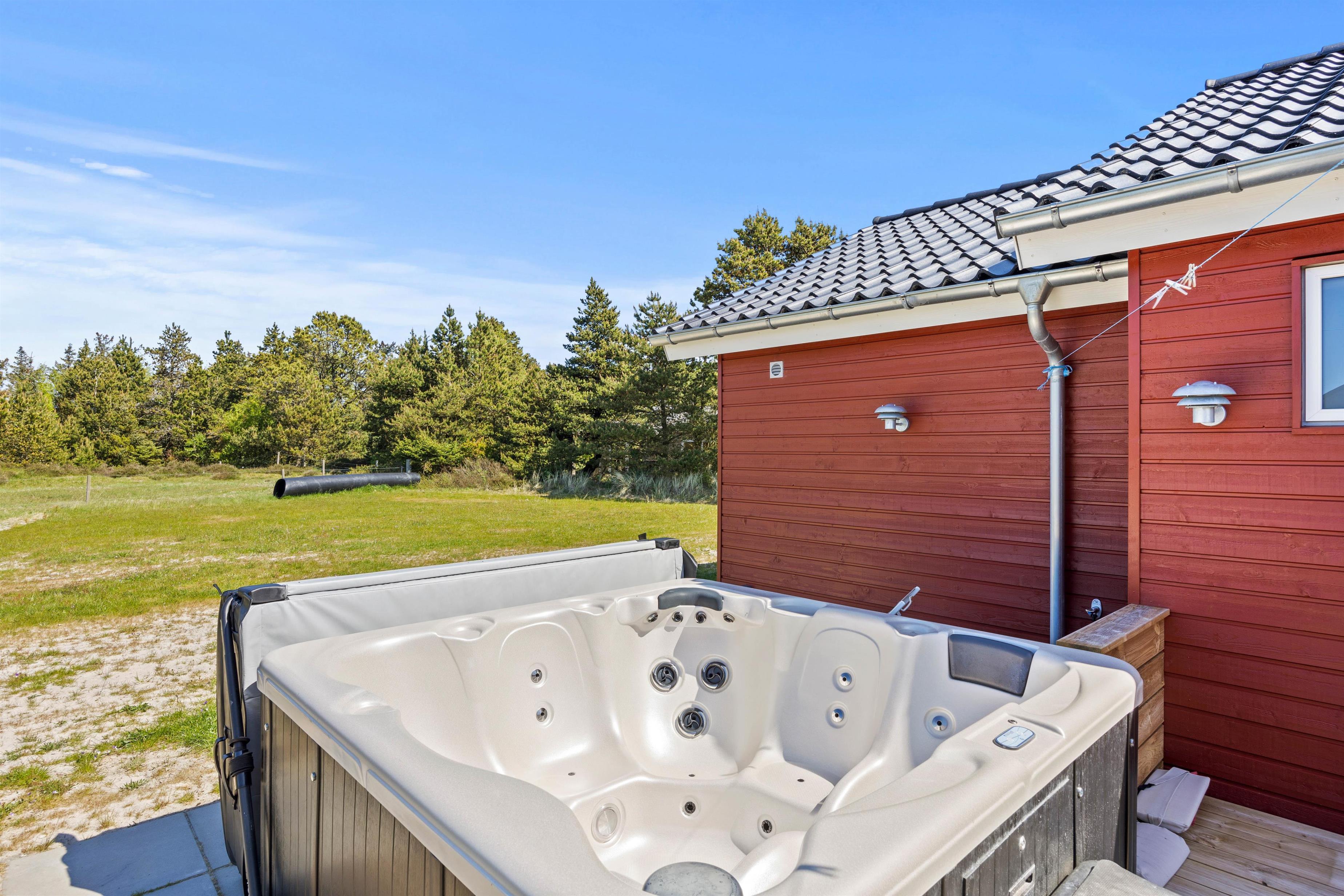 Aktivitetshuset er perfekt for dem, der søger både underholdning og hvile. Her kan I udfordre hinanden i en omgang billard, bordfodbold eller slappe af i saunaen eller poolen. Børnene vil elske at lege i haven med gynger og sandkasse, mens de voksne slapper af på den overdækkede terrasse foran udepejsen. For alle, der gerne vil nyde den friske luft og udendørsfaciliteterne, er der mulighed for at benytte udesaunaen, mens maden hyggeligt simrer på grillen.