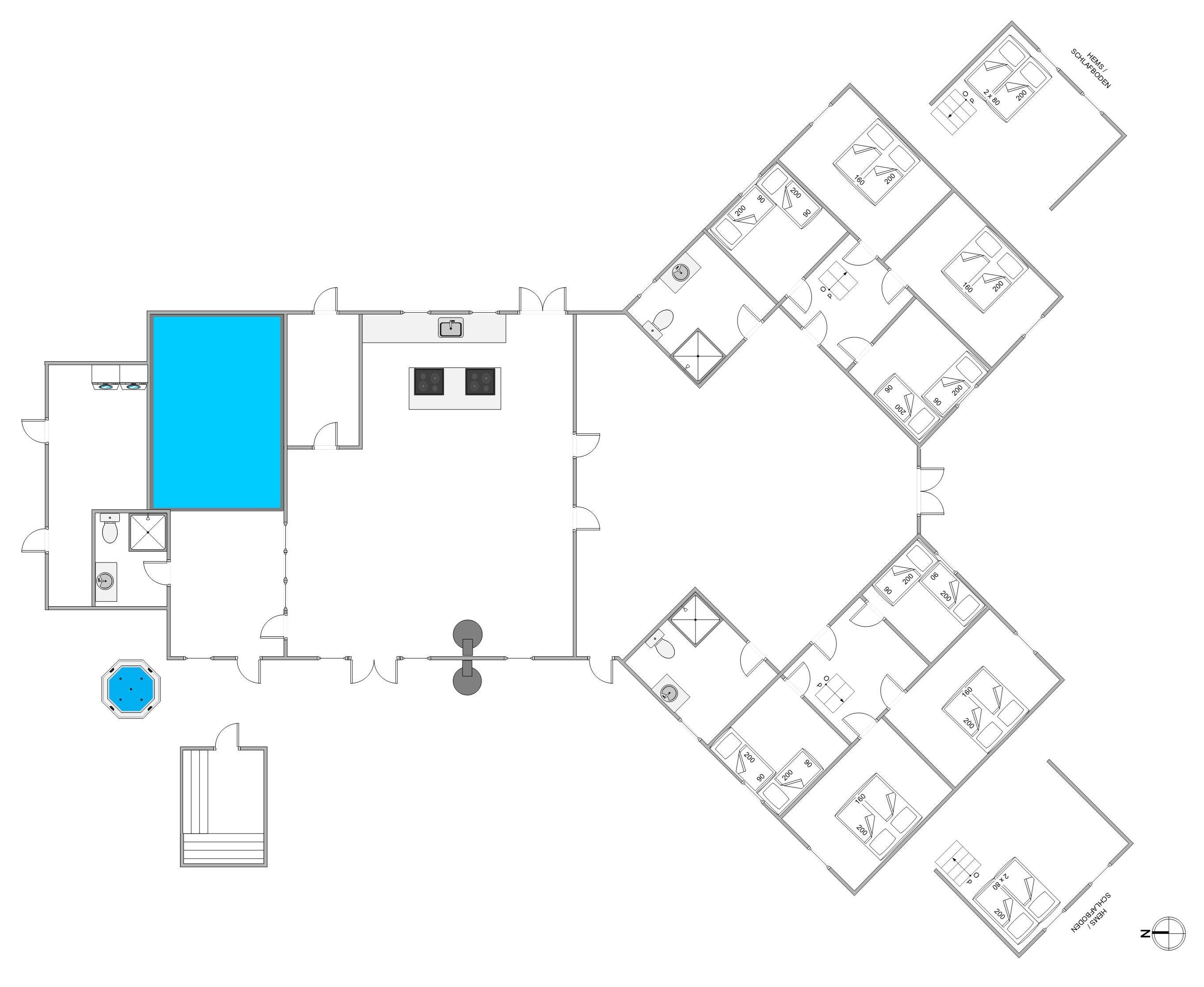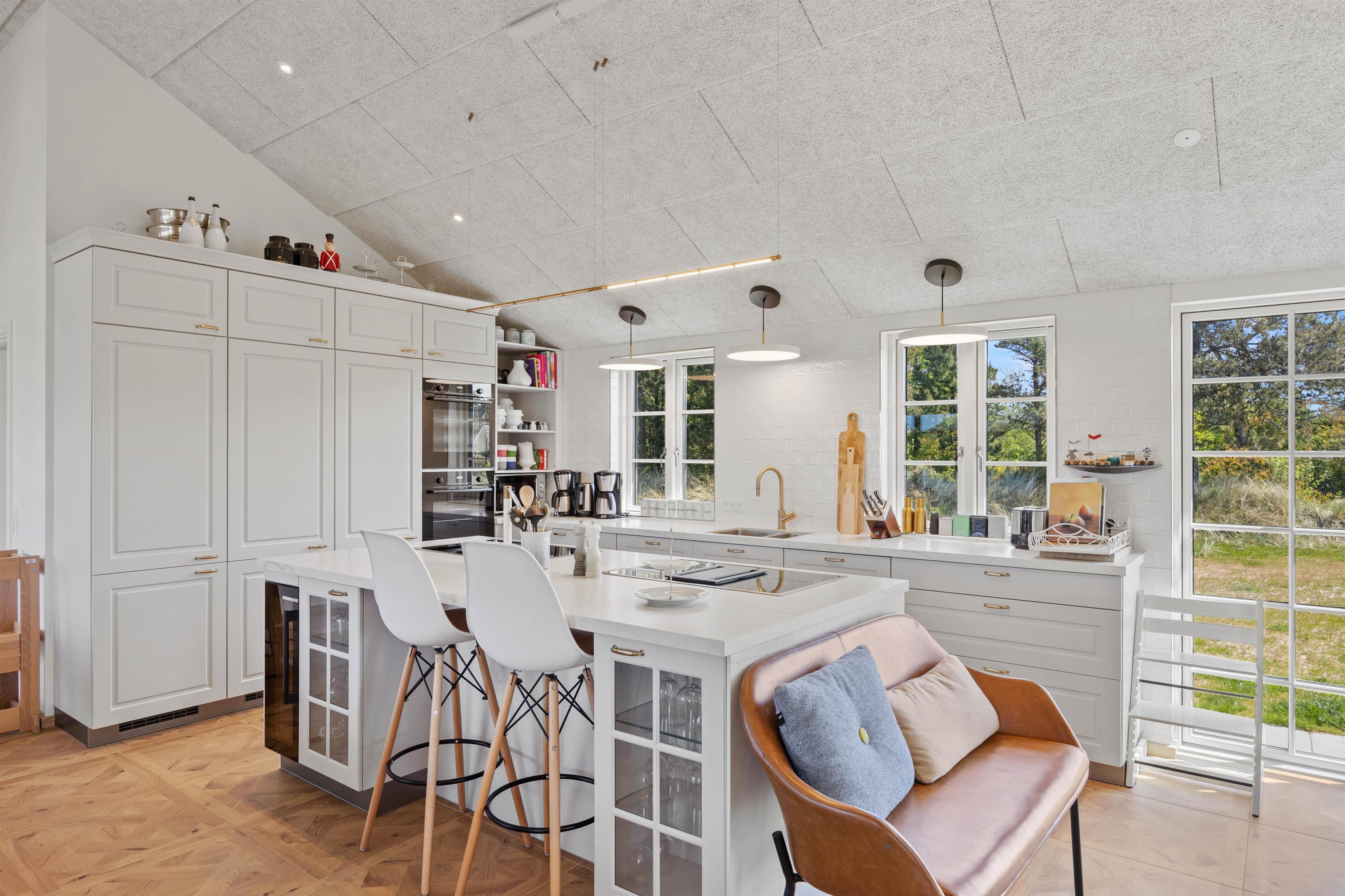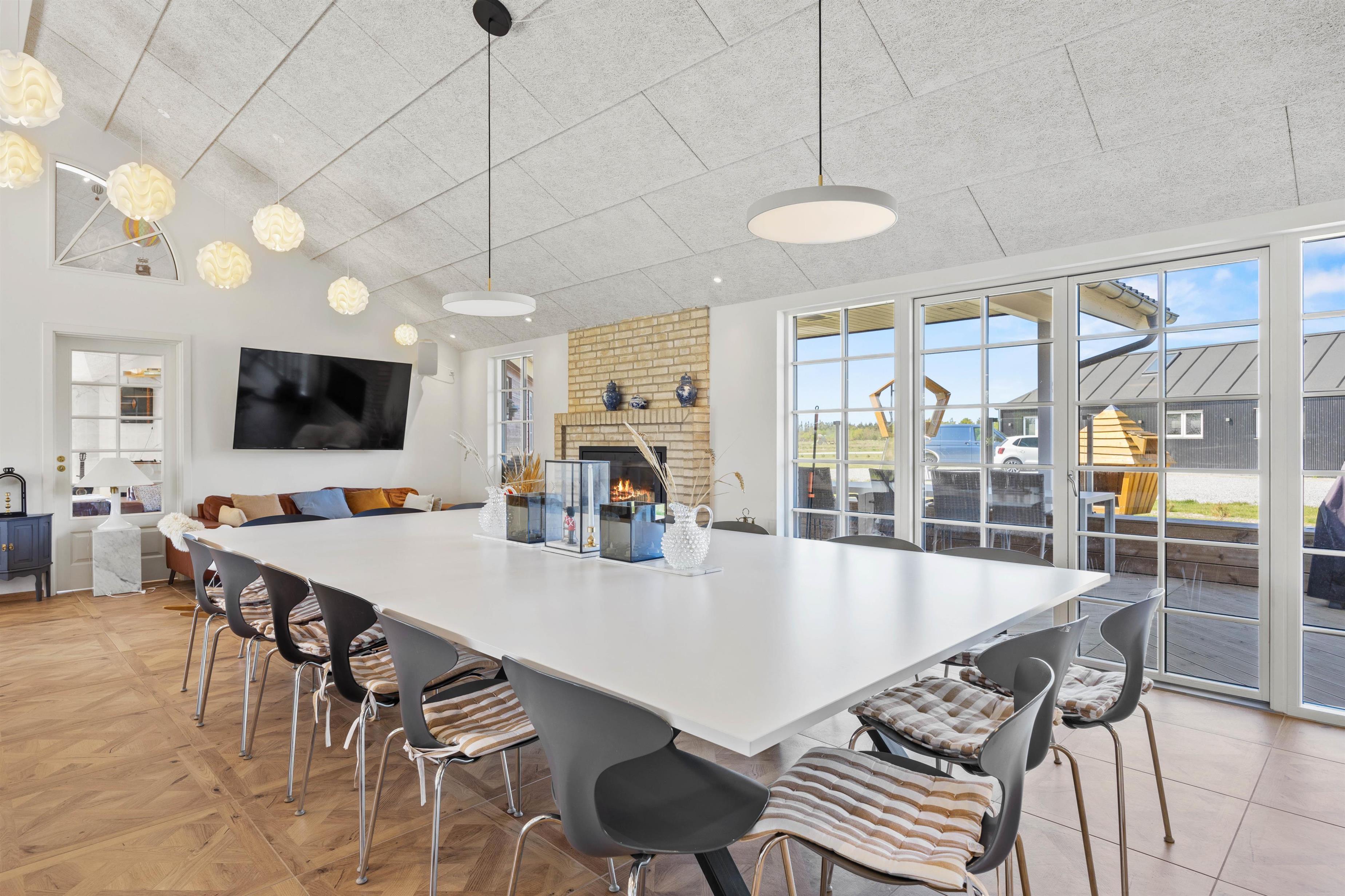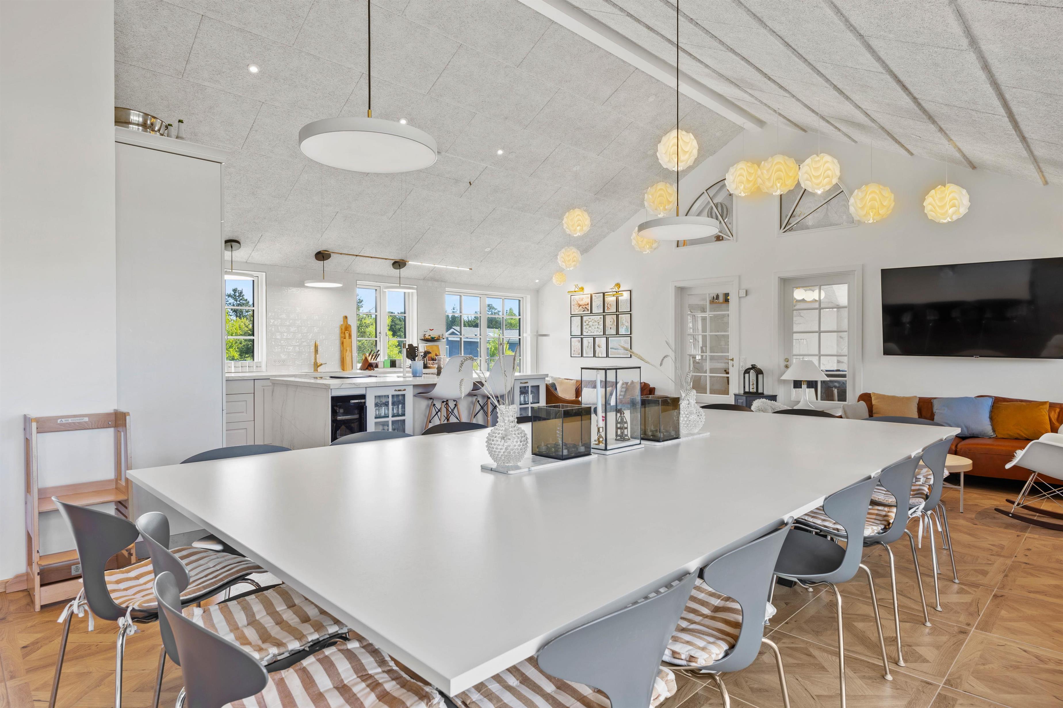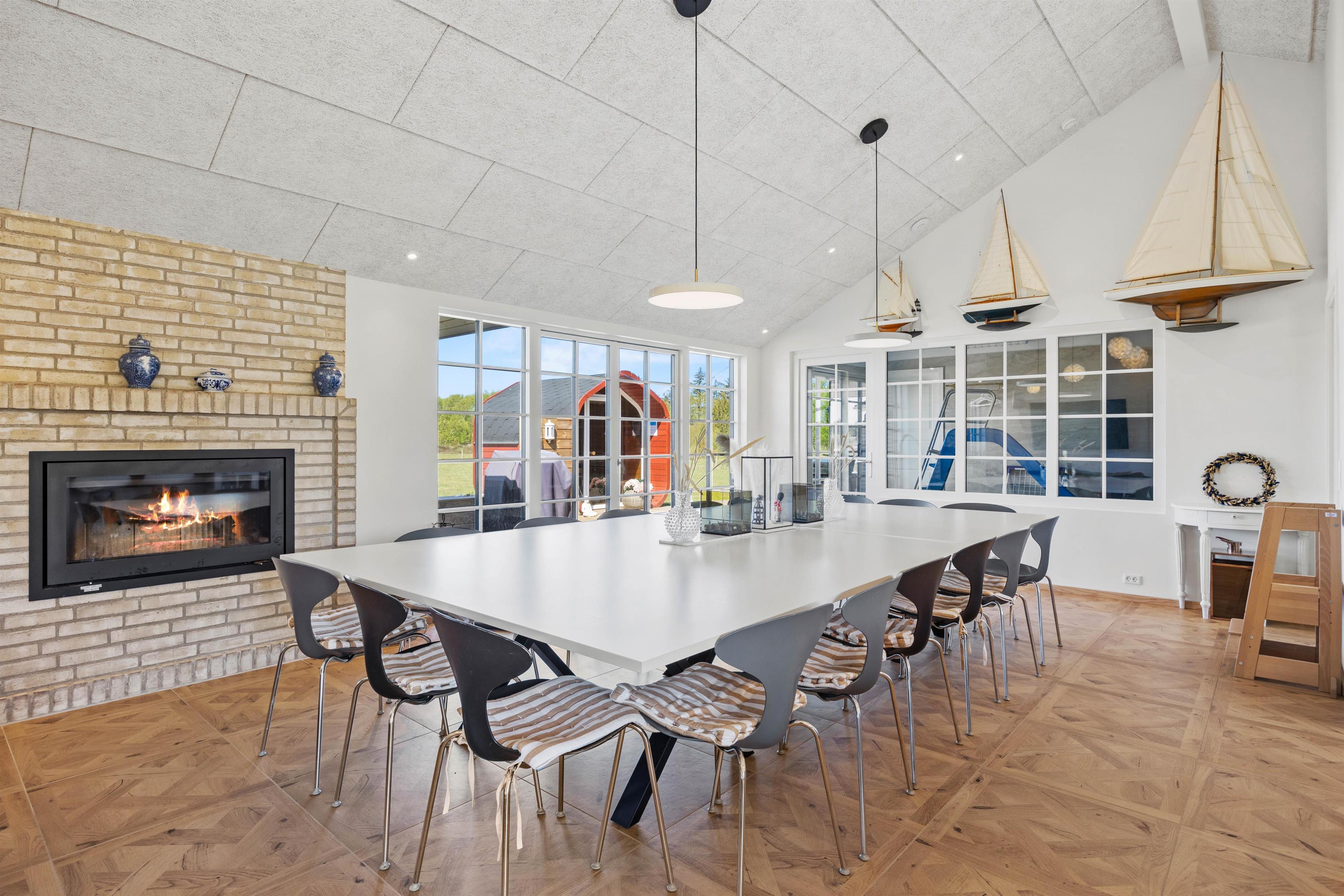 Aktivitetshuset er perfekt for dem, der søger både underholdning og hvile. Her kan I udfordre hinanden i en omgang billard, bordfodbold eller slappe af i saunaen eller poolen. Børnene vil elske at lege i haven med gynger og sandkasse, mens de voksne slapper af på den overdækkede terrasse foran udepejsen. For alle, der gerne vil nyde den friske luft og udendørsfaciliteterne, er der mulighed for at benytte udesaunaen, mens maden hyggeligt simrer på grillen.