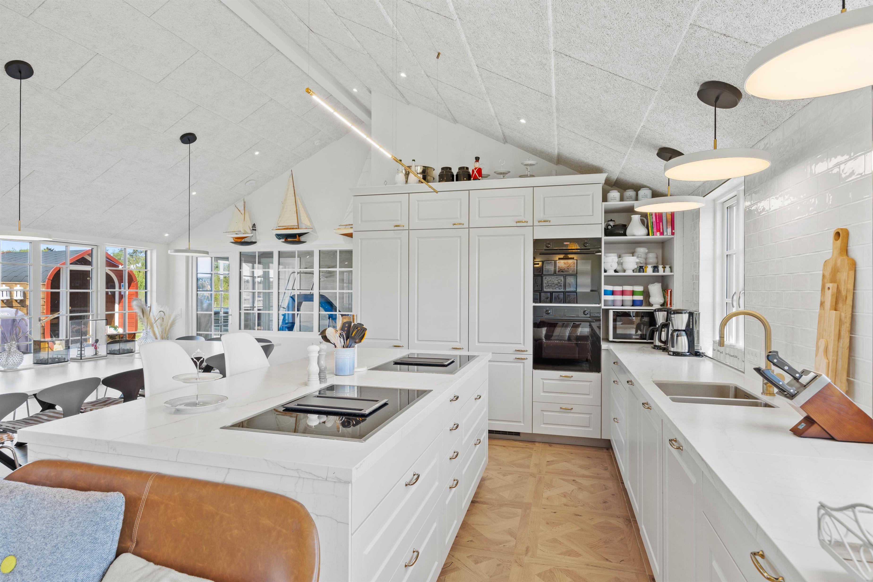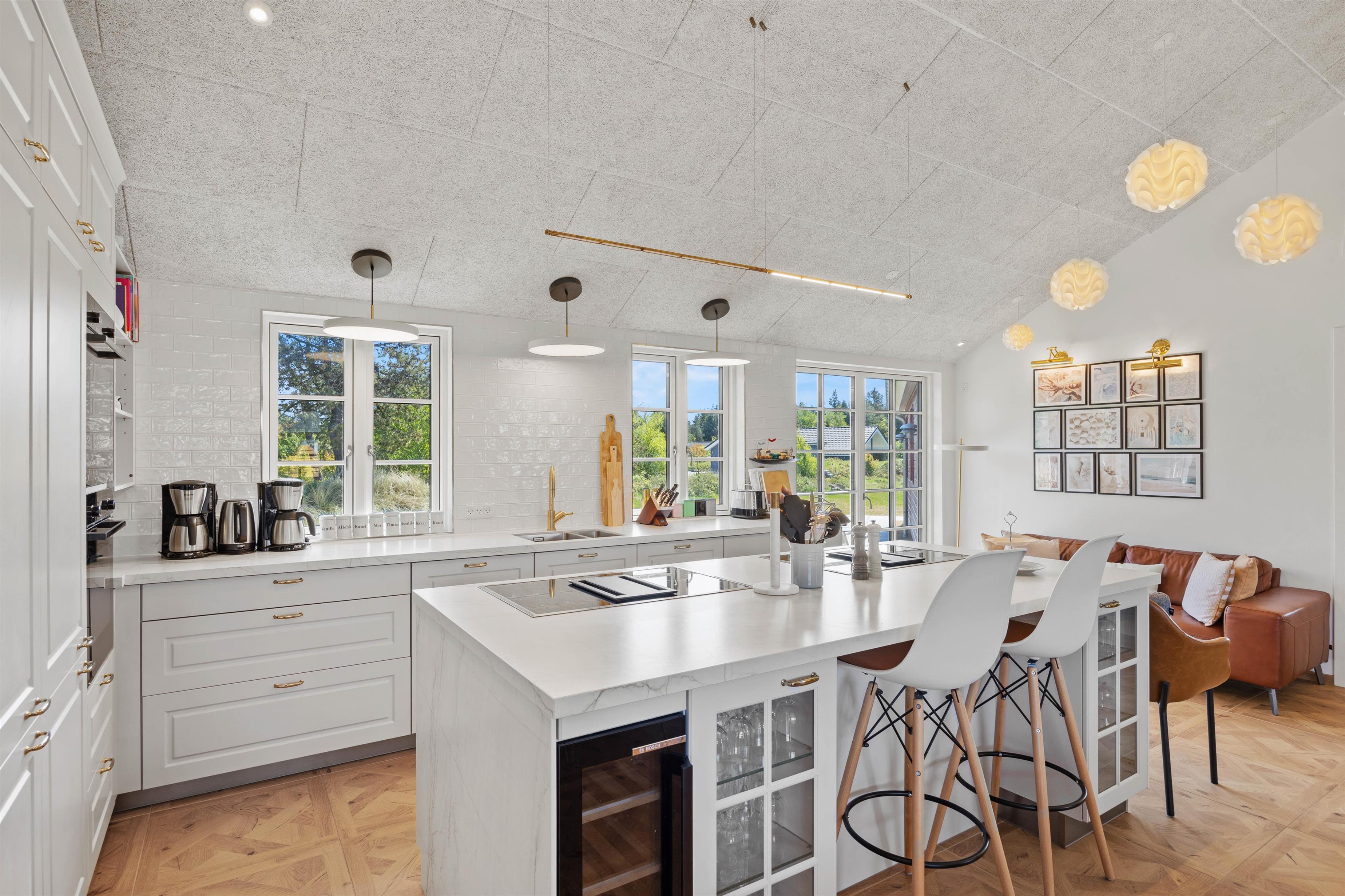 Dette rummelige sommerhus byder på hele otte soverum, så der er rigelig plads til op til 20 personer. Der er også tilladt at have 2 hunde med, så ingen behøver at blive hjemme. Efter en dag fuld af eventyr kan I nyde en hyggelig aften foran brændeovnen eller tage et afslappende dyp i udespaen. Det moderne køkken er foruden et ekstra køleskab selvfølgelig udstyret med en opvaskemaskine, hvilket gør måltidsforberedelser og oprydning til en leg.