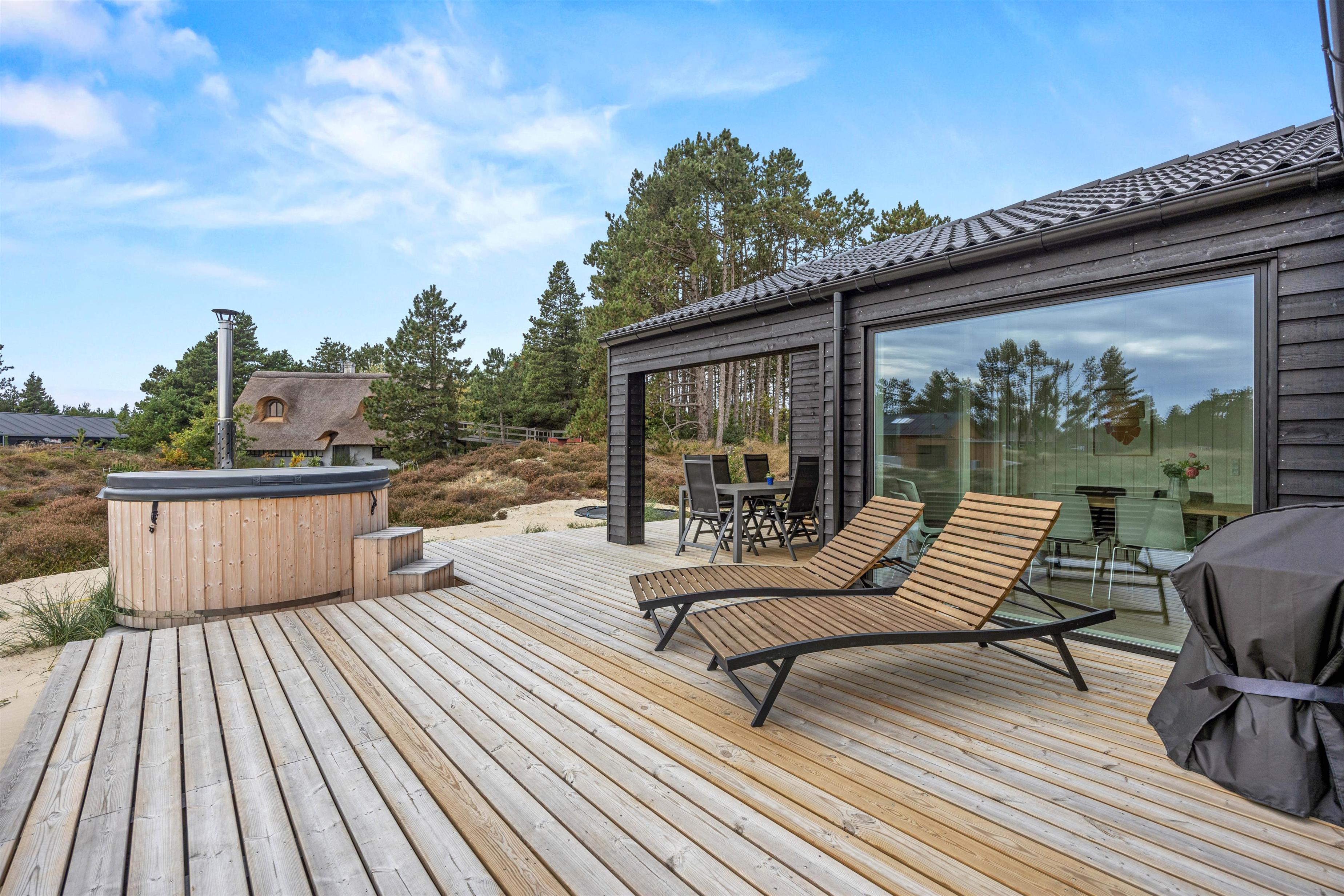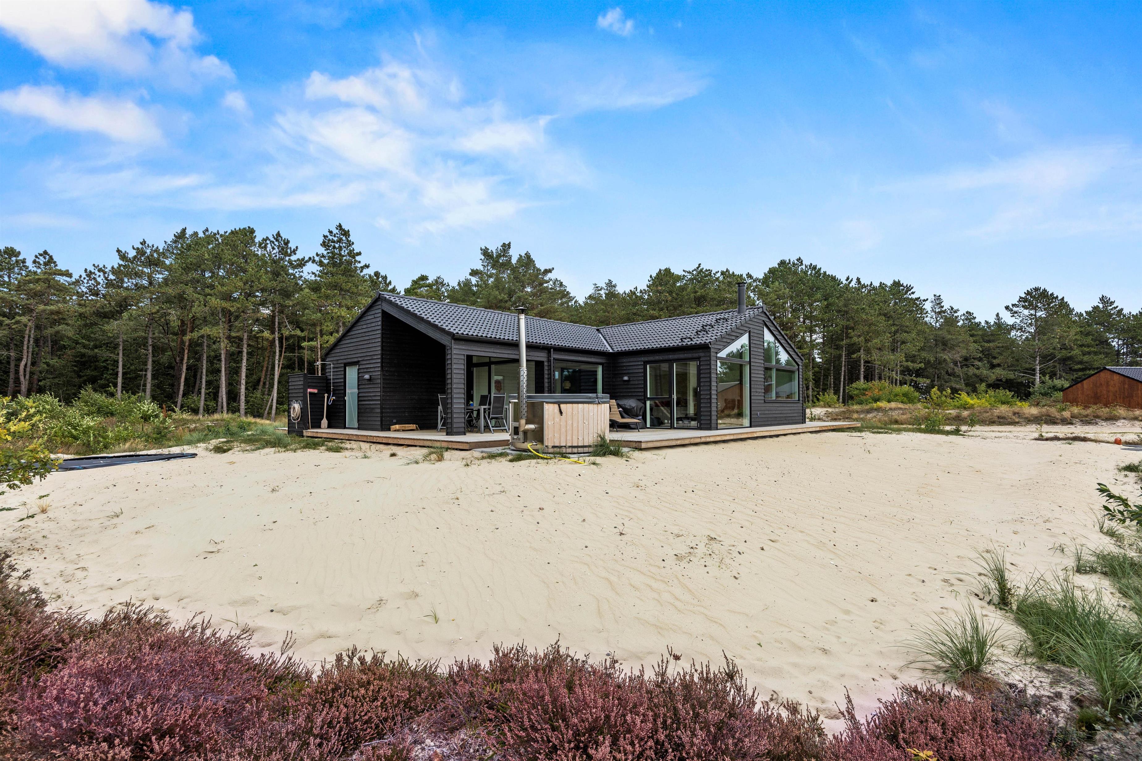 Dette 5-stjernede sommerhus på Rømø blev bygget i 2025 og kombinerer moderne design med funktionelle og gennemtænkte indretninger.