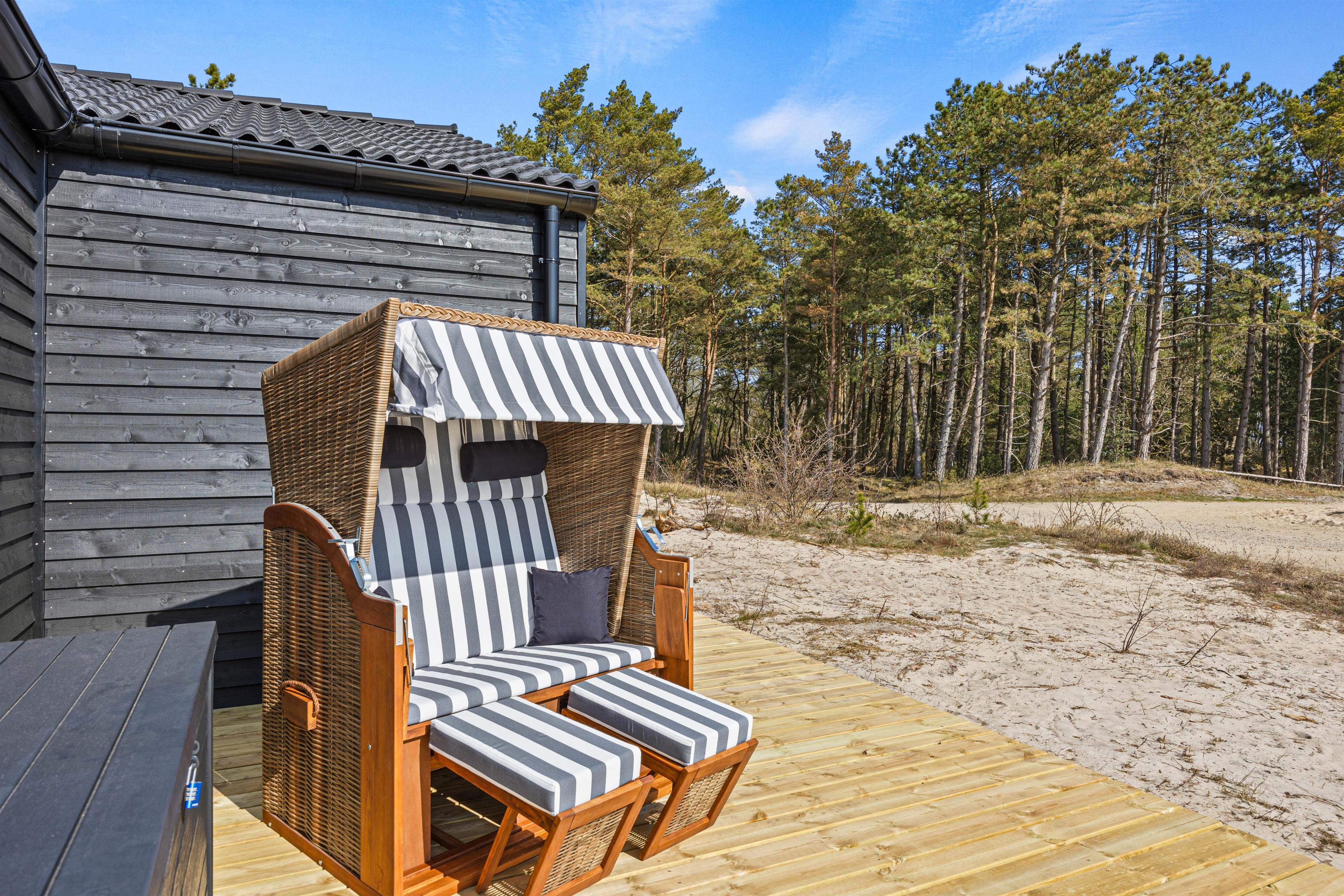 Faciliteterne lever op til alle forventninger: 2 luksuriøse badeværelser med gulvvarme, hvoraf 1 badeværelse har direkte adgang fra et soveværelse, en sauna til afslappende stunder og et vildmarksbad udendørs, som indbyder til velvære. Den udendørs bruser giver ekstra friskhed og komfort efter en dag på den nærliggende strand eller Vadehavet, som kun ligger 200 meter væk. Her bestemmer tidevandet, hvordan naturen viser sig.