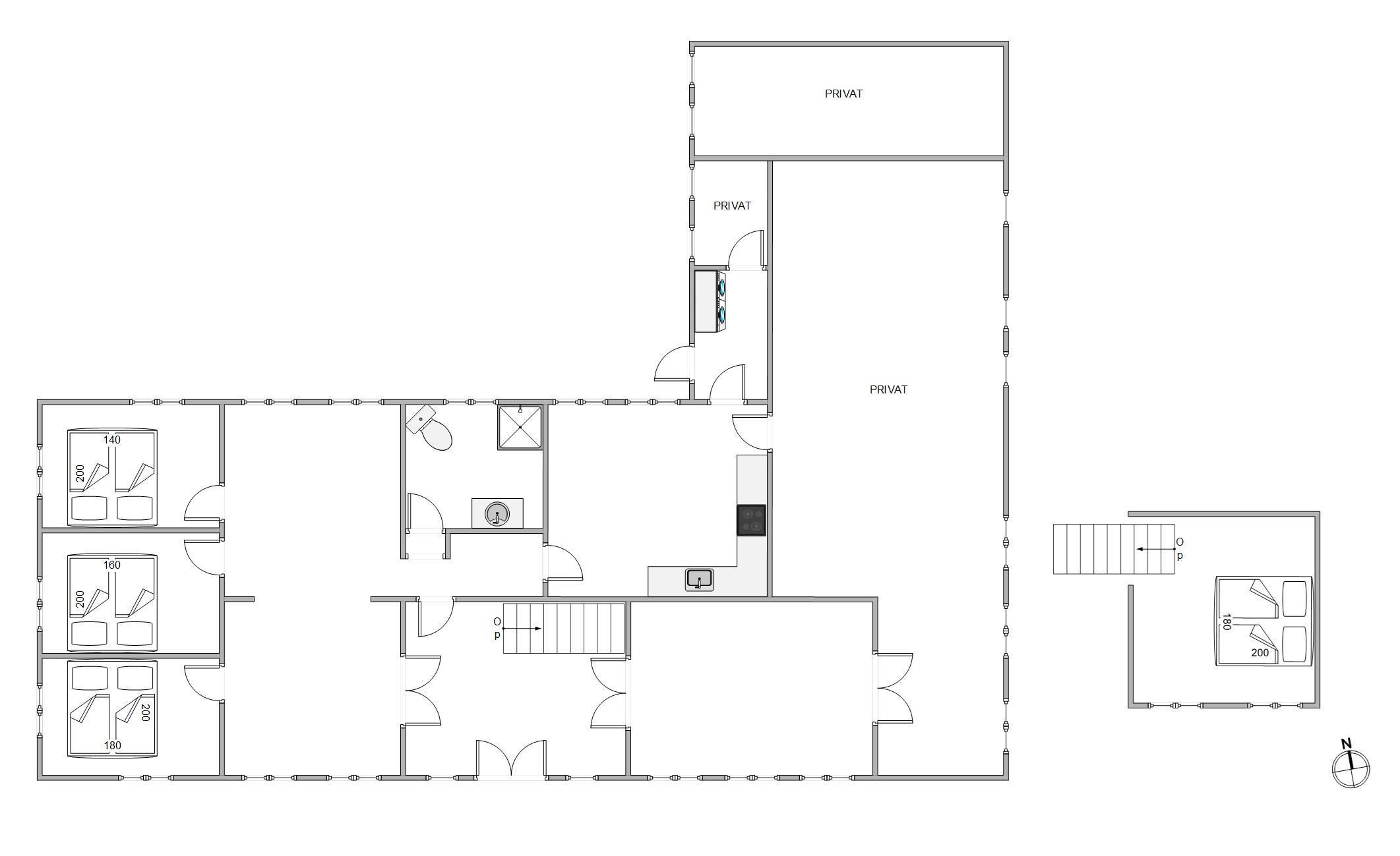 Når aftenen falder på, er det tid til at finde soveværelserne. Da alle er udstyret med dobbeltsenge i forskellige størrelser, bliver det nok vægfarven, der afgør valget. Et af soveværelserne ligger på 1. sal. Hvert rum i sommerhuset er malet i en unik farve, hvilket bidrager til, at sommerhuset virkelig er noget særligt.