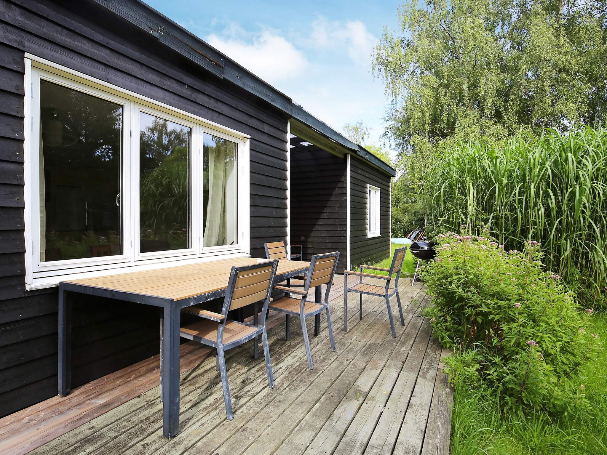 Hyggeligt sommerhus nær stranden i Kulhuse med brændeovn, terrasse og have, perfekt til familier og naturglade gæster.