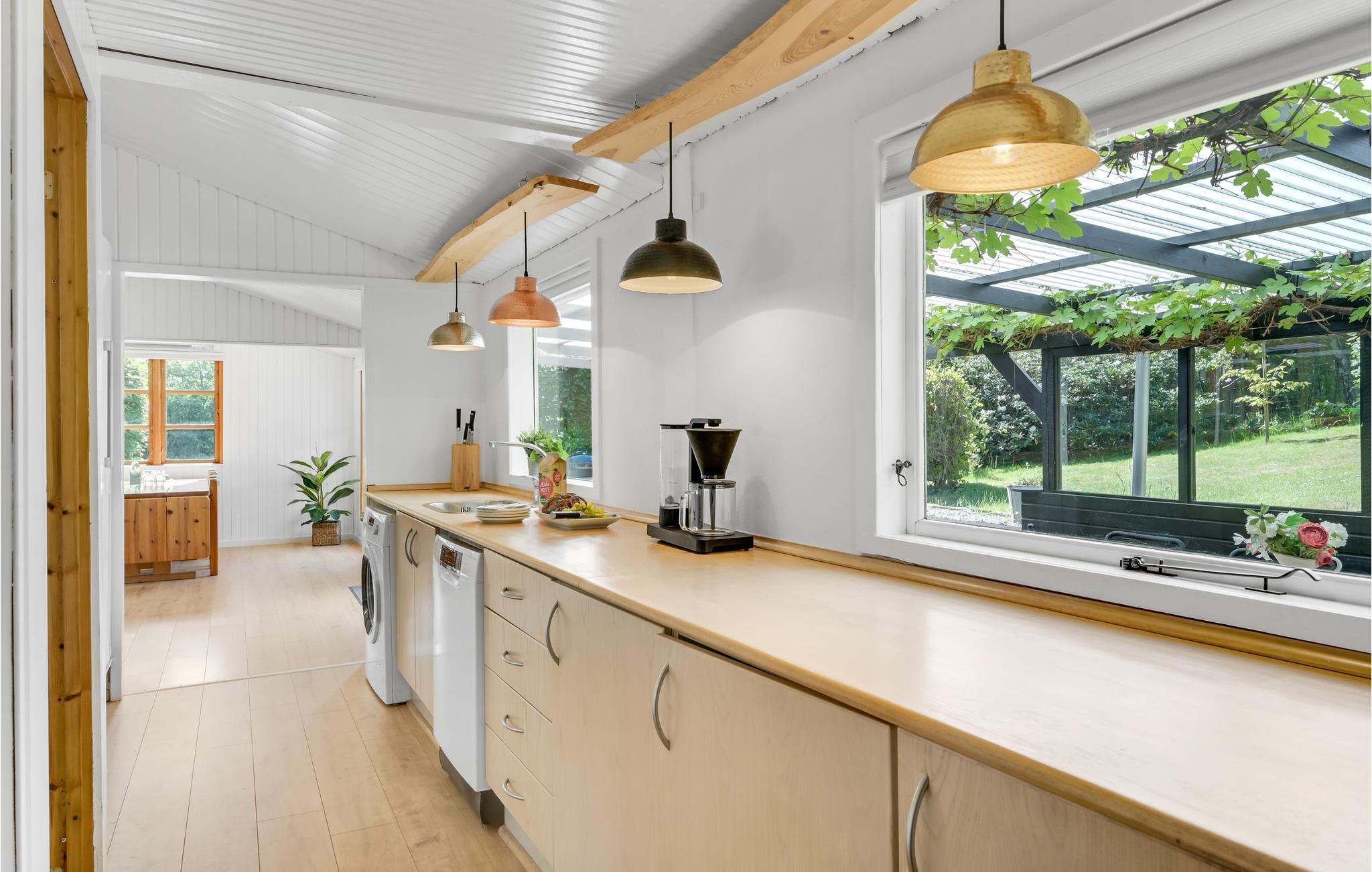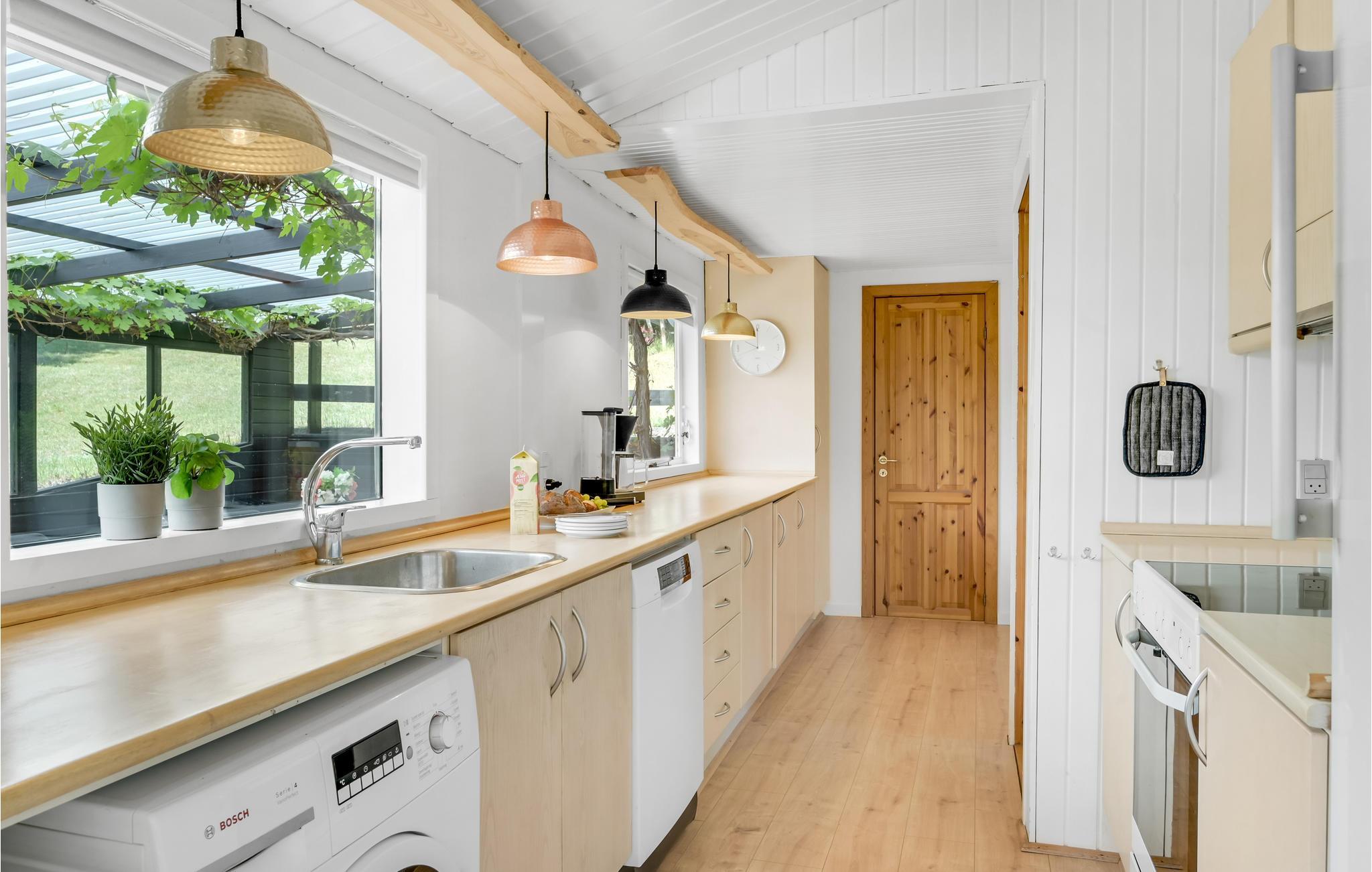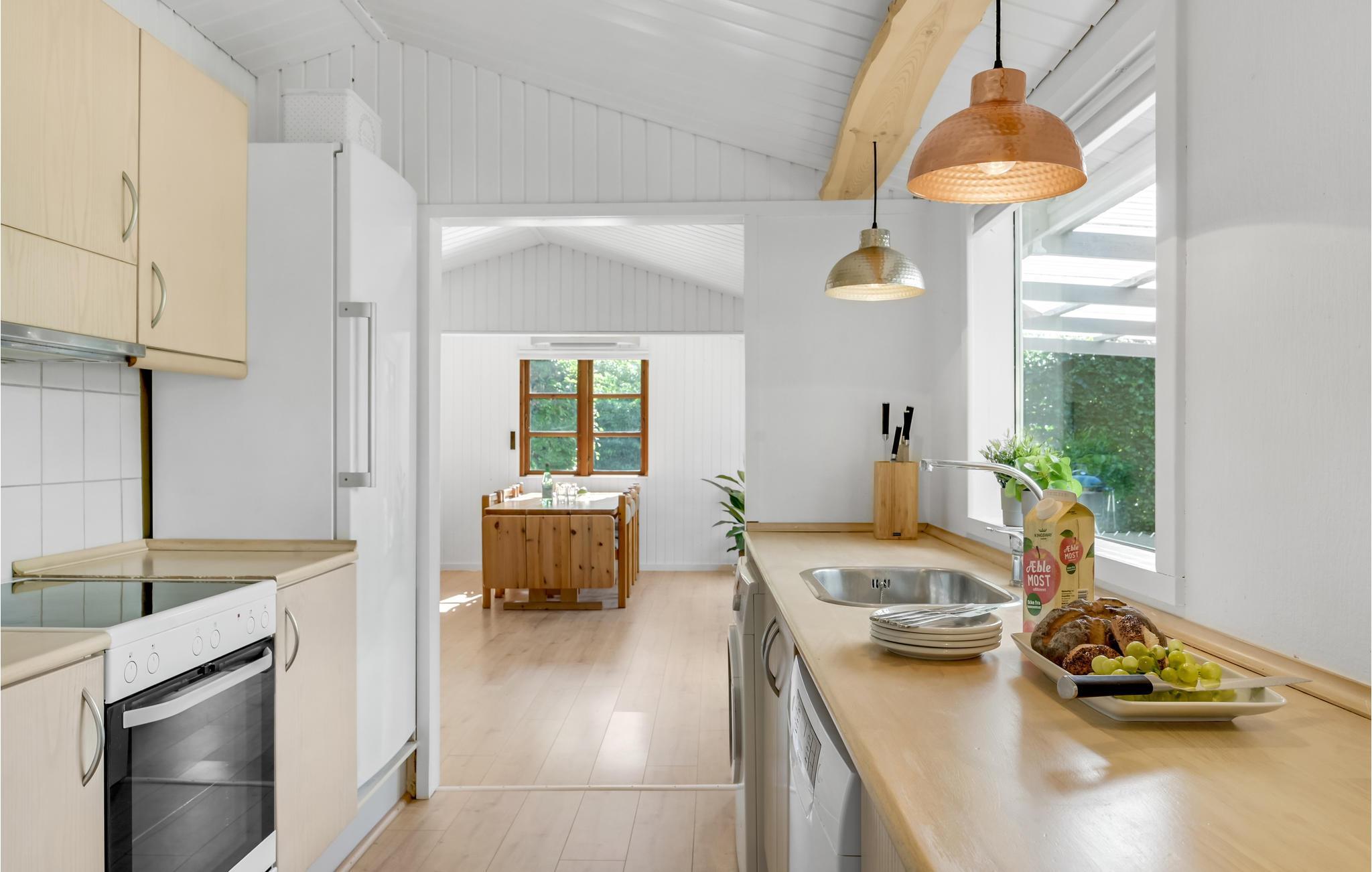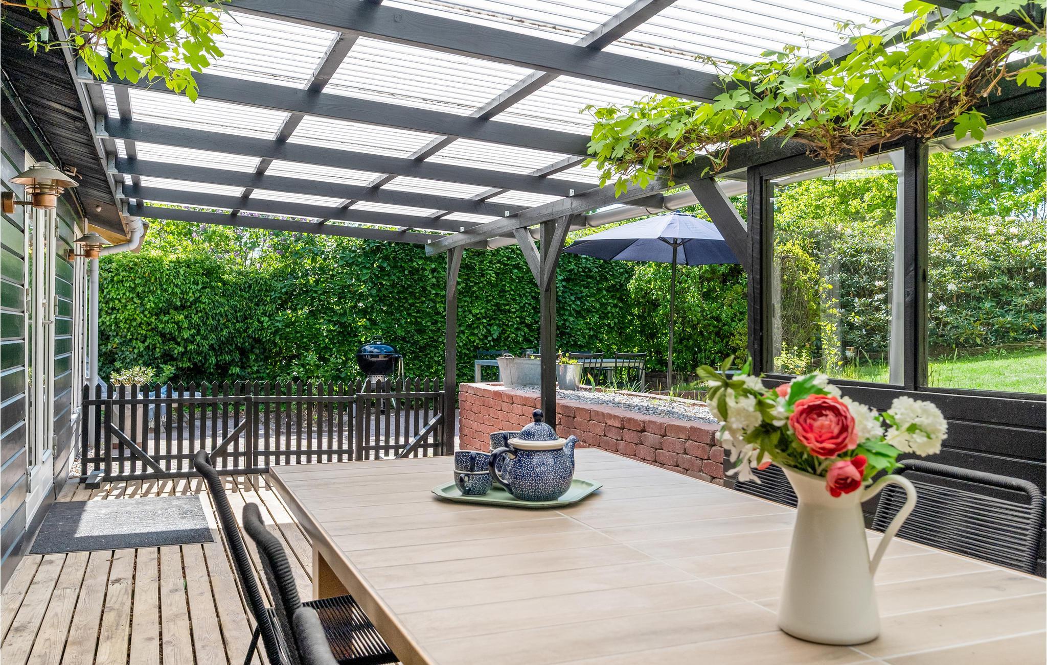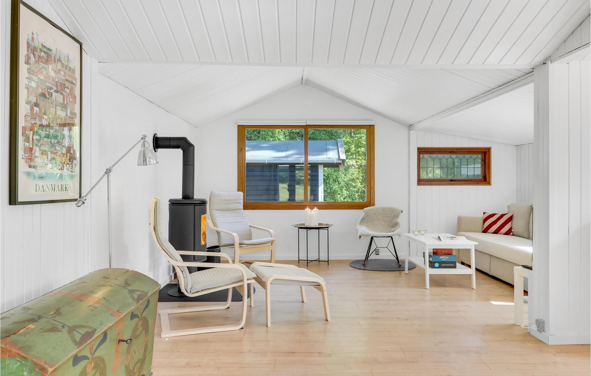 Dette enkle sommerhus vil glæde jer med sin lyse stue og smagfulde dekorationer. Her finder I frem for alt rummelighed og komfort, skabt af det raffinerede arrangement og valg af æstetiske møbler. Nyd den private have, hvor I finder en overdækket og en åben terrasse. Der er også grill og liggestole, så I kan solbade, når vejret er godt eller afslutte milde aftener med lækre måltider.