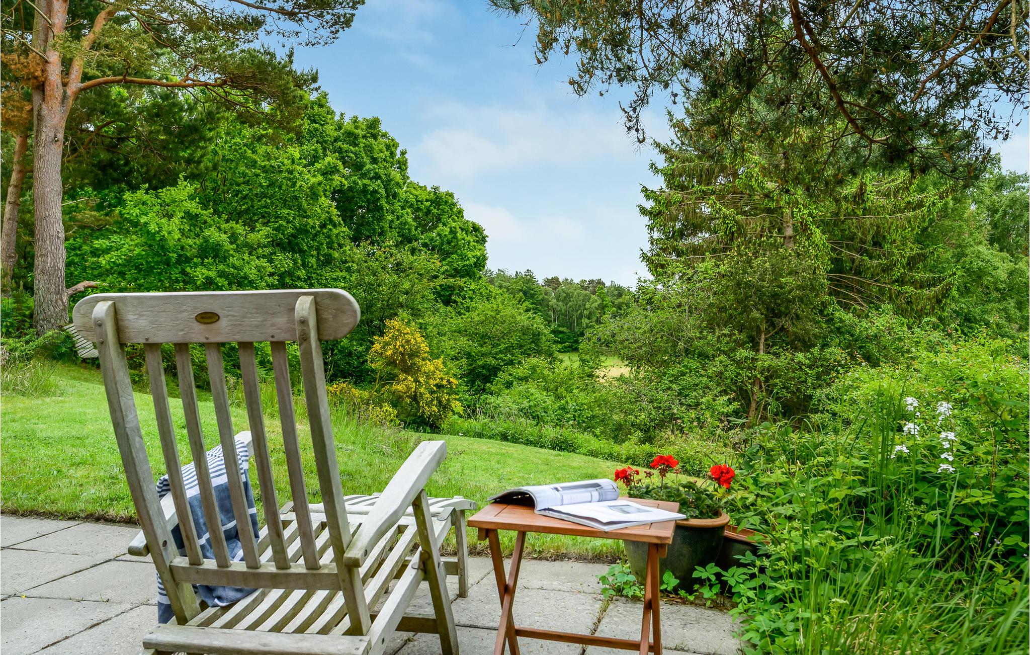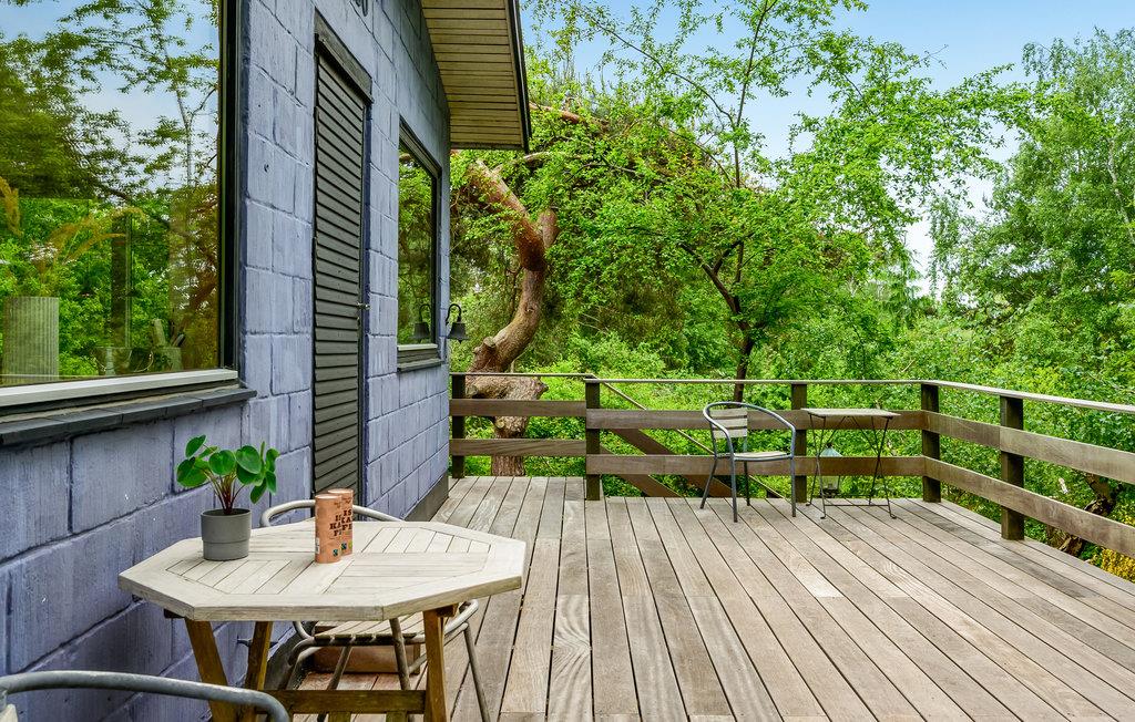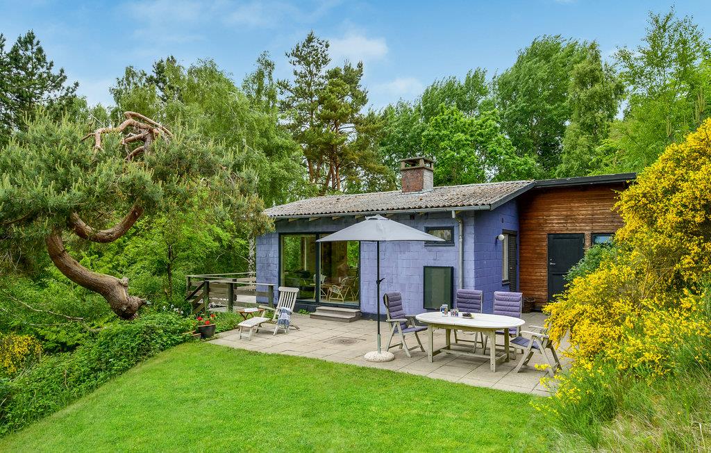 I får næsten følelsen af at bo i toppen af et træ, for dette sommerhus ligger elegant placeret på en bakke med en vidunderlig udsigt til trækronerne og det åbne landskab. Her får I nogle skønne omgivelser til at nyde nogle fredelige dage med solskin på terrasse og dejlige gåture i det grønne. Sæt jer med måltiderne i haven og lyt til tonerne af fuglesang, mens I planlægger dagens gøremål. Indretningen er charmerende i klassisk, dansk sommerhusstil med fine detaljer fra 1060'erne.