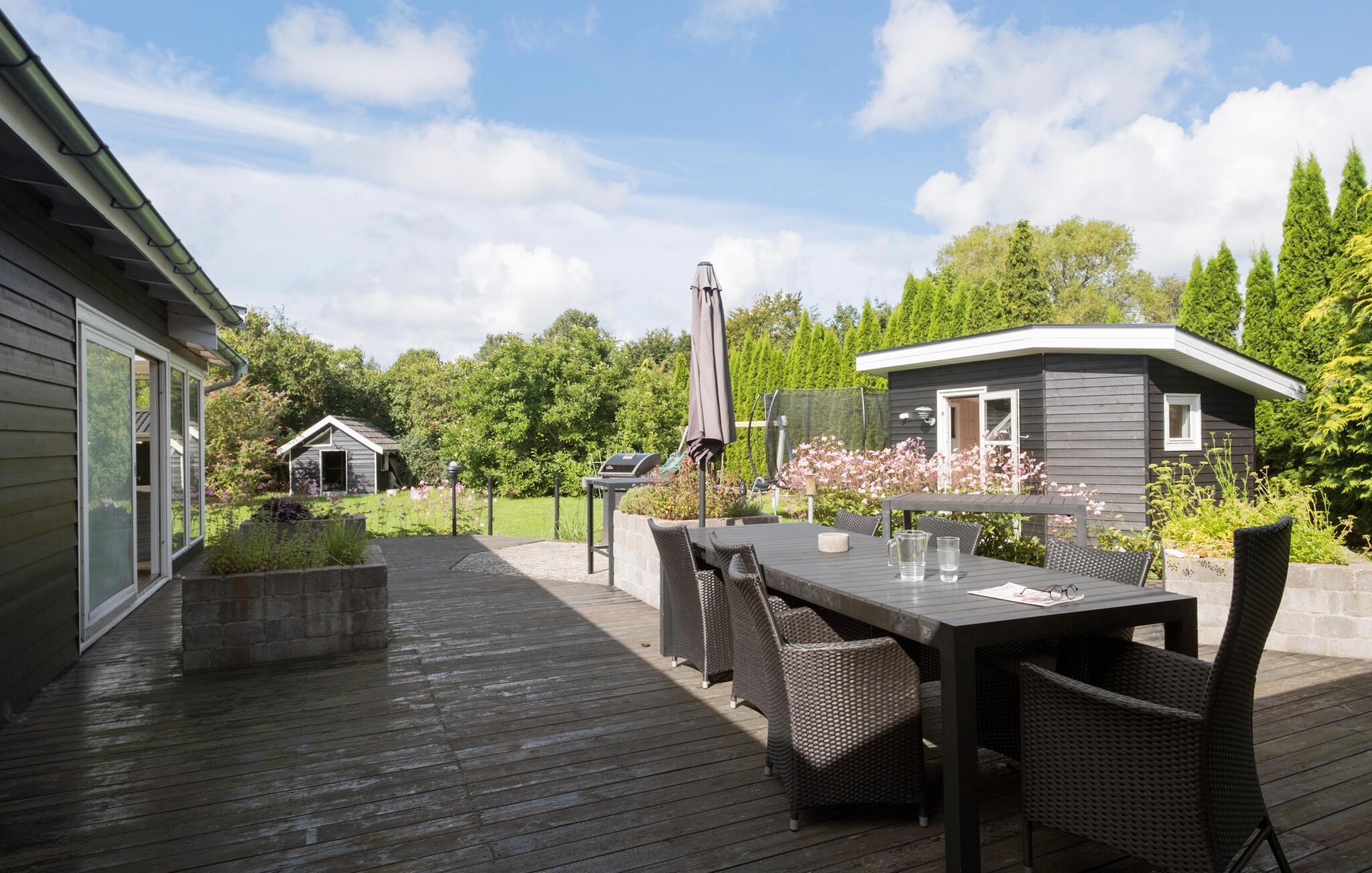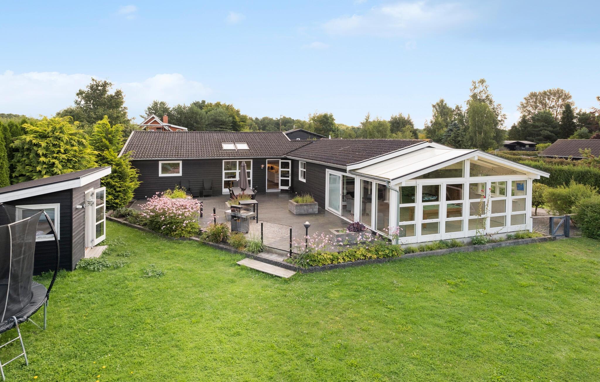 Rummeligt feriehus nær Kulhuse Strand med moderne køkken, aktivitetsrum og stor have til afslapning.
