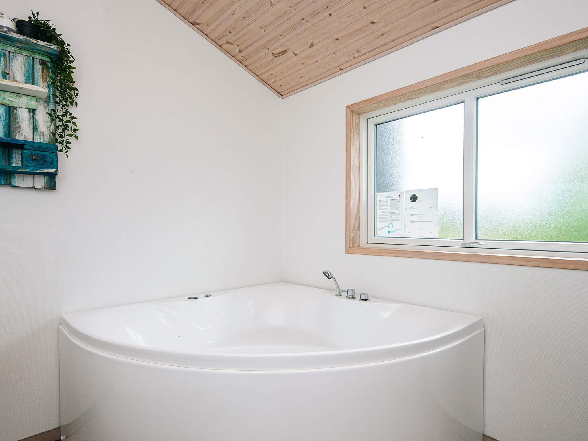 Børnevenligt feriehus med spabad til familier beliggende i et familievenligt område og med en imponerende panoramaudsigt over Kvie Sø. Feriehuset er bygget med de bedste materialer og med mange gode detaljer. Der er trægulve i alle rum og i stuen. Køkkenet ligger i åben forbindelse med stuen og spisestuen. Huset er indrettet i skandinavisk stil, og fra stuen er der udgang til to terrasser, hvor solen og naturen kan nydes i havemøblerne. Via indgangen er der adgang til en terrasse med morgensol. Huset er praktisk indrettet, så det er muligt at dele huset op i to sektioner. For eksempel i en børne- og en voksenafdeling. Det ene rum, som er et gennemgangsrum, er indrettet med en dobbelt sovesofa af høj kvalitet. Dette rum er forbundet med aktivitetsrummet og to andre rum. Her er der et stort aktivitetsrum på 30 m2, hvor der er tv med dvd-afspiller, billard, bordfodbold og bordtennis, hvilket giver børnene god plads til at lege og forældrene fred og ro til samtale i stuen. Udlejes ikke til ungdomsgrupper.
