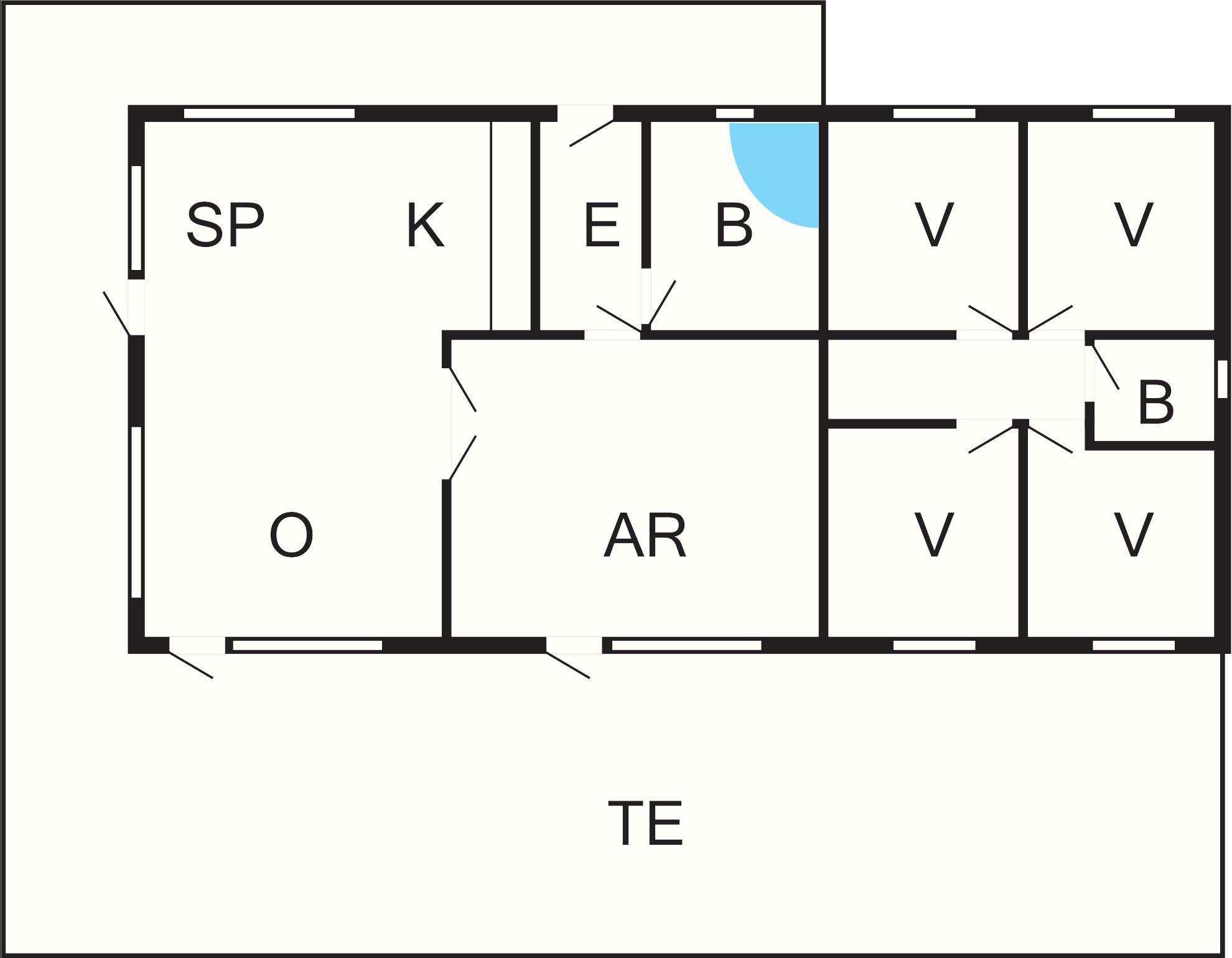 4 Soveværelser: (1DS)+(1DS)+(2S)+(2S)