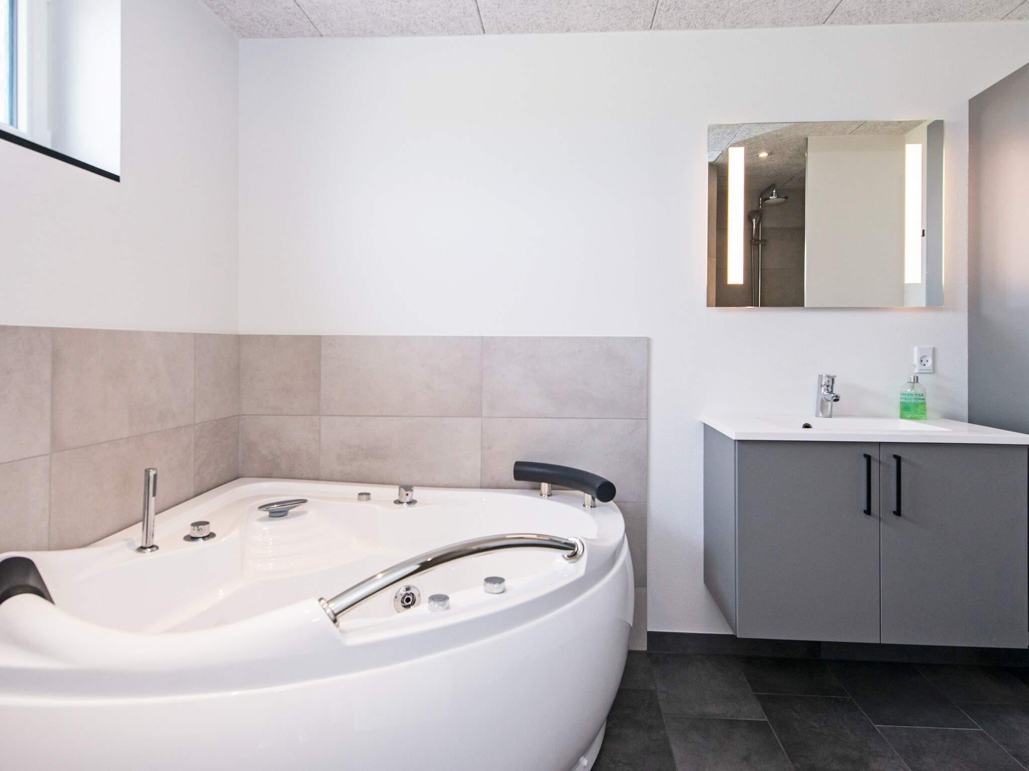 Ved Kvie Sø finder I dette aktivitetshus med indendørs spabad beliggende tæt på søen i rolige og naturskønne omgivelser. Huset er yderst stilfuldt indrettet, lyst og indbydende. Alle værelser er rummelige og med gode senge. Køkkenet er indrettet med alle moderne hjælpemidler og i stuen giver det store vinduesparti en storslået naturudsigt. Aktivitetsrummet er udstyret med sjove aktiviteter for alle aldersgrupper, deriblandt bordfodbold, bob-spil. PS3 inkl. spil. Nyd terrassen i de gode havemøbler eller tag et forfriskende bad under udendørs-bruseren. Der er shelter og en trampolin til de yngste (benyttes på eget ansvar og forsikring). Udlejes ikke til ungdomsgrupper. Fri adgang til badeland.6 forskellige steder. Adgang til bowling i Varde. Gratis adgang til badeland