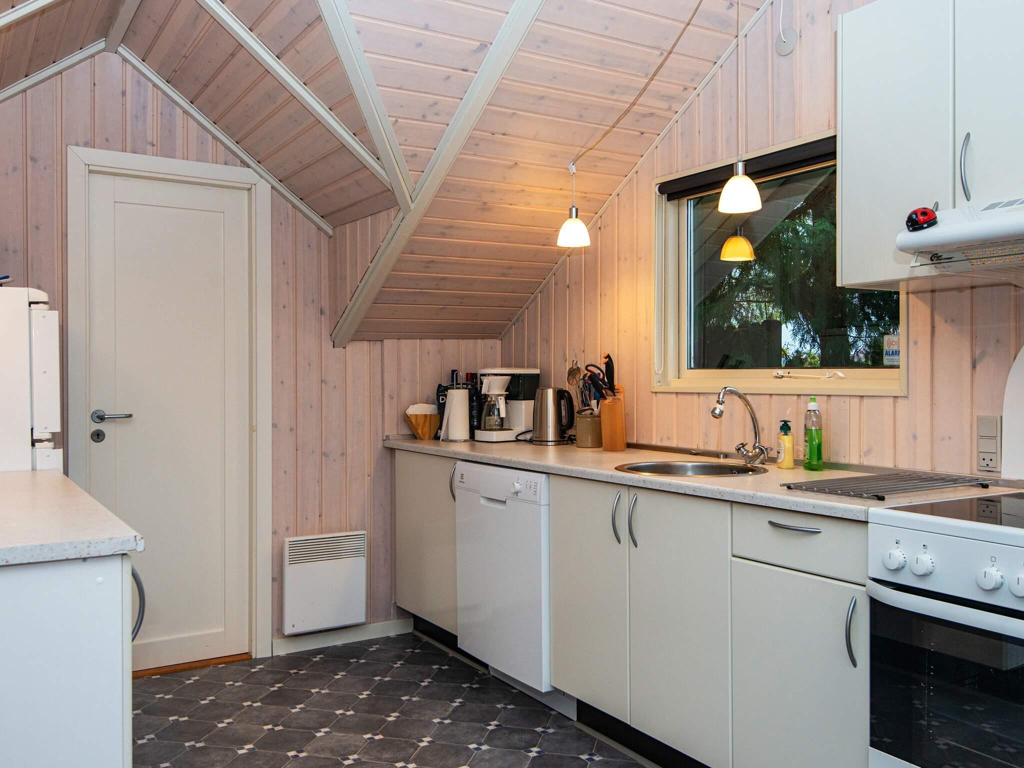 Beliggende nær den smukke Kvie Sø, kendt for sit rige fugleliv og naturskønne vandrestier langs kysten, giver dette feriehus et fredeligt tilflugtssted i naturen. Det åbne køkken og opholdsstue skaber et indbydende rum for familiesammenkomster, og fra stuen har gæsterne adgang til både en delvist overdækket terrasse og en stor, lukket terrasse, perfekt til spisning eller afslapning udendørs.