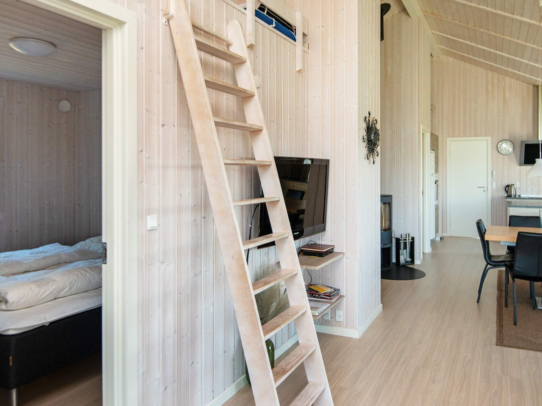 Aktivitetshus med panoramaudsigt over Kvie Sø. Køkken i åben forbindelse til stuen, der er møbleret i skandinavisk stil med brændeovn og fladskærms-tv. Fra stuen er der udgang til delvis overdækket terrasse. Det ene af de to luksuriøse badeværelser har spabad og i aktivitetsrummet er der mulighed for at spille bordtennis, billard og bordfodbold. Der er udendørs bruser. Husets indretning gør det velegnet til både 1 og 2 familier. Der er gynge, sandkasse og trampolin (benyttes på eget ansvar/forsikring). Området omkring Kvie Sø byder på gode naturoplevelser, her er flere Put and Take fiskesøer, hvorfor der også er indrettet udendørs renseplads til dagens fangst. Ca. 100 m fra huset ligger den børnevenlige sandstrand ved Kvie Sø, hvor der både er iskiosk og restaurant. Gratis adgang til Svøm & Leg samt 1 times gratis bowling pr. dag i Sportium i Varde.