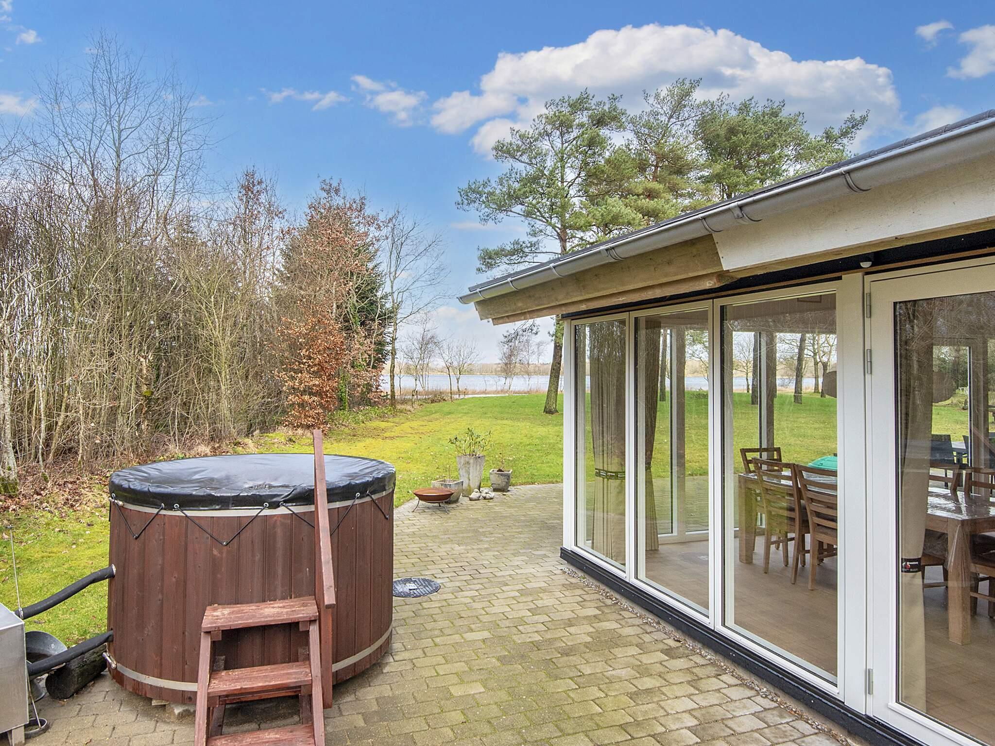 en stor grund, der strækker sig næsten til vandkanten. Ejendommen er designet til afslapning og nydelse af den omkringliggende natur, og byder på et udendørs spabad og en sauna, hvor du kan slappe af og forynge krop og sind.