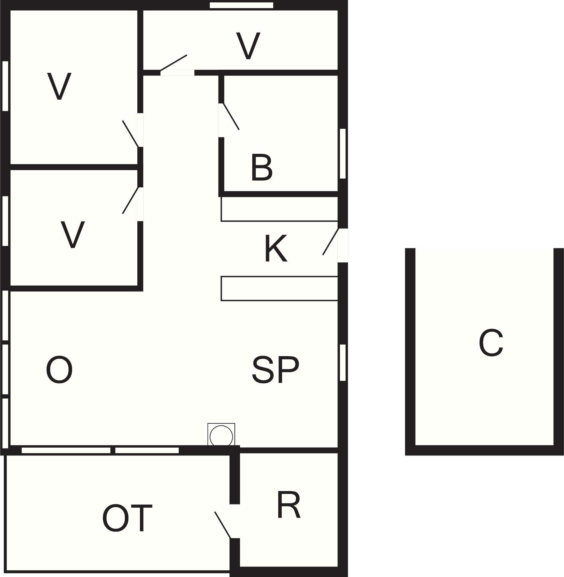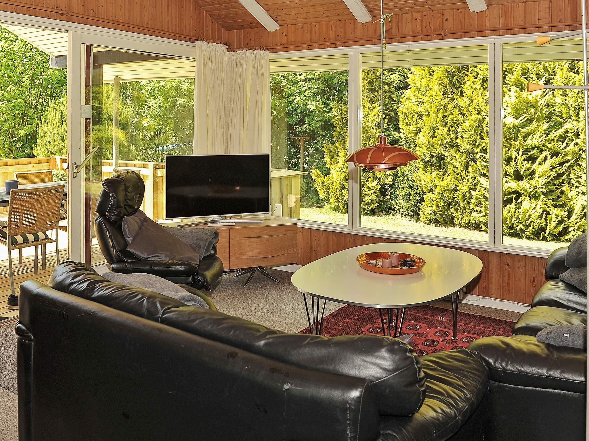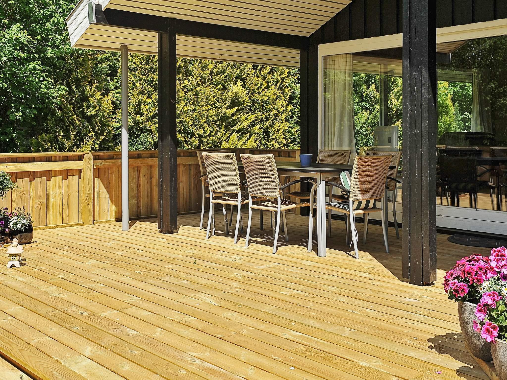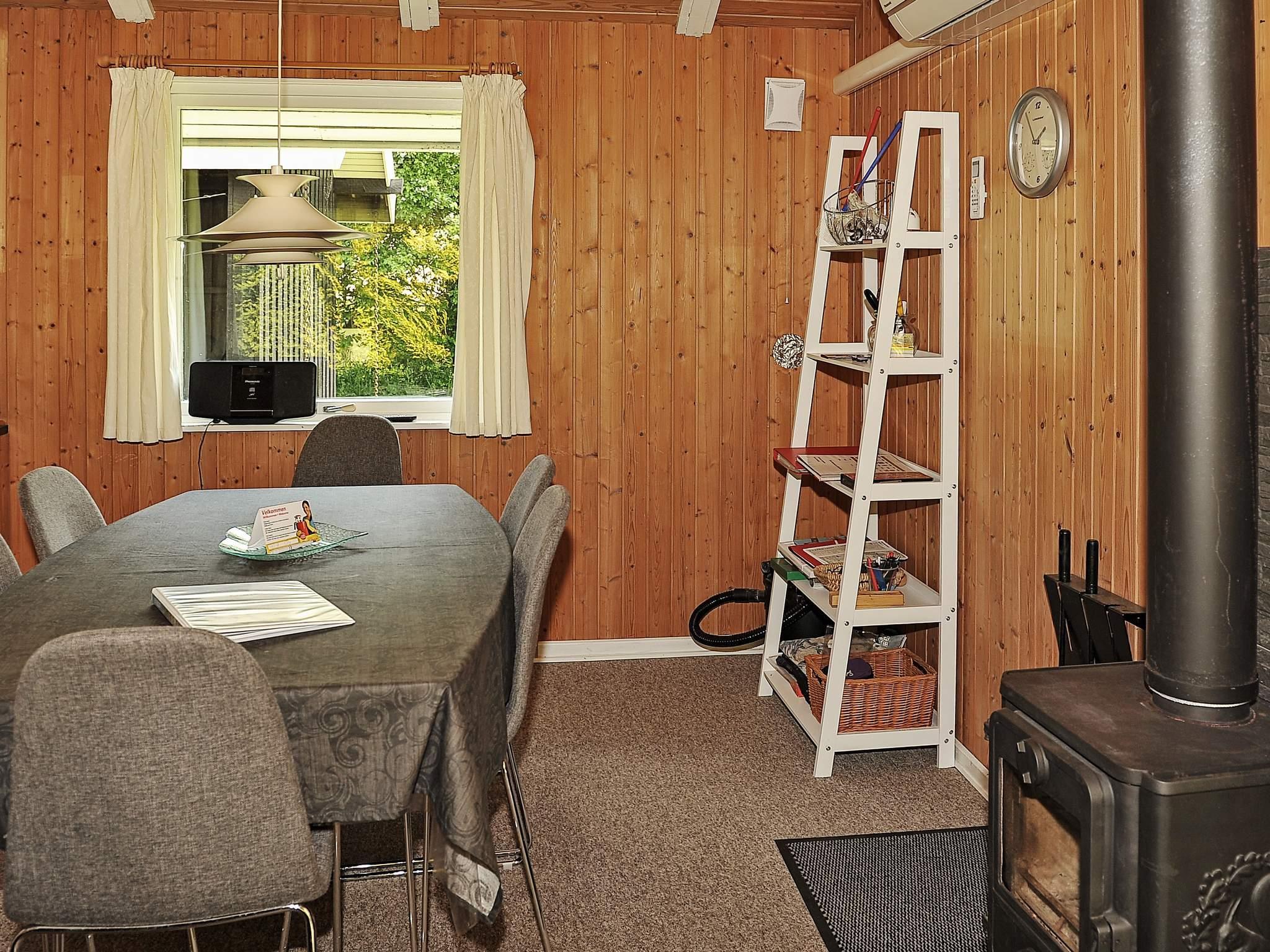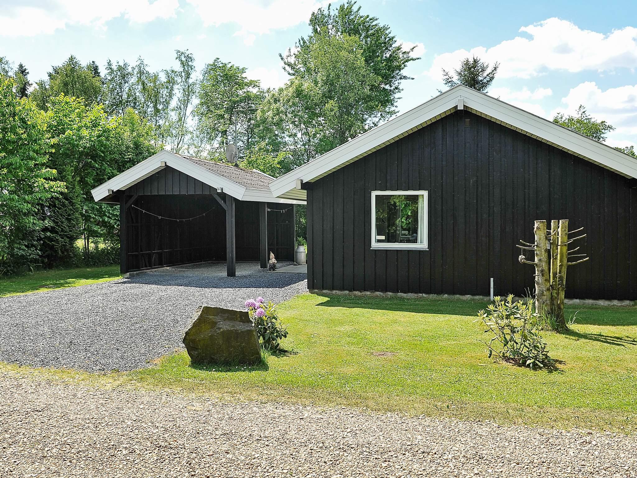 Traditionelt sommerhus beliggende tæt ved Kvie Sø. Opholdsstuen, som ligger i åben forbindelse med det veludstyrede køkken, er indrettet med store panoramavinduer, der giver et godt lysindfald og gør, at I kan følge børnenes leg i haven fra stuen, mens I evt. luner jer ved brændeovnen på en kølig sommeraften - Brændeovnen er en pilleovn og ejer vil sørge for, at der er træpiller til rådighed. Fra stuen er der også udgang til den overdækkede træterrasse fra 2018. Der er stige op til husets store hems, som er indrettet som ”legehule” for børnene. Der er carport.Der er kun TV via Apple streaming. Der er 50/50 Mbit internetforbindelse i huset.