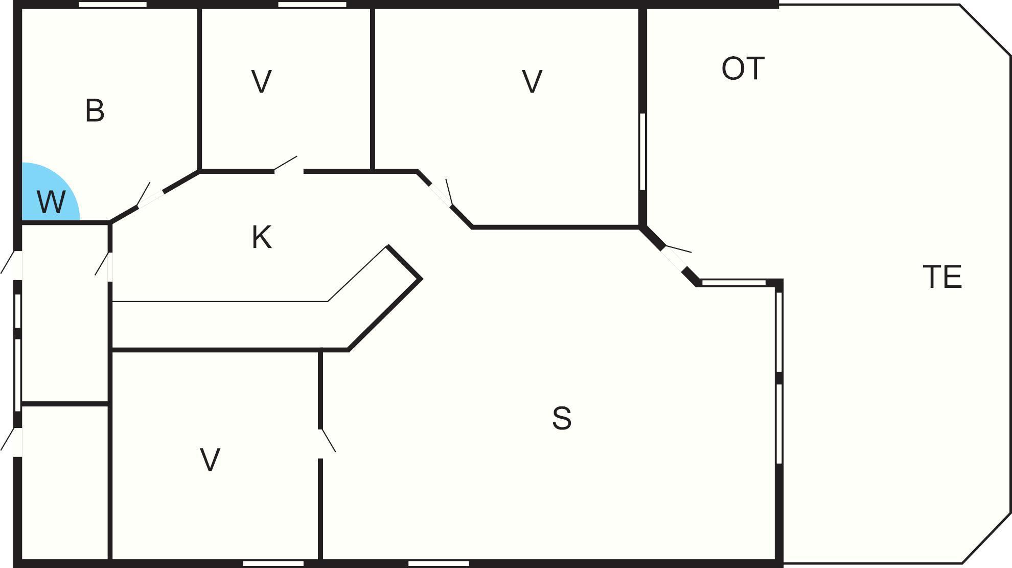 Sovepladser: 6 (2 dobbeltsenge + hems med 2 madrasser).
