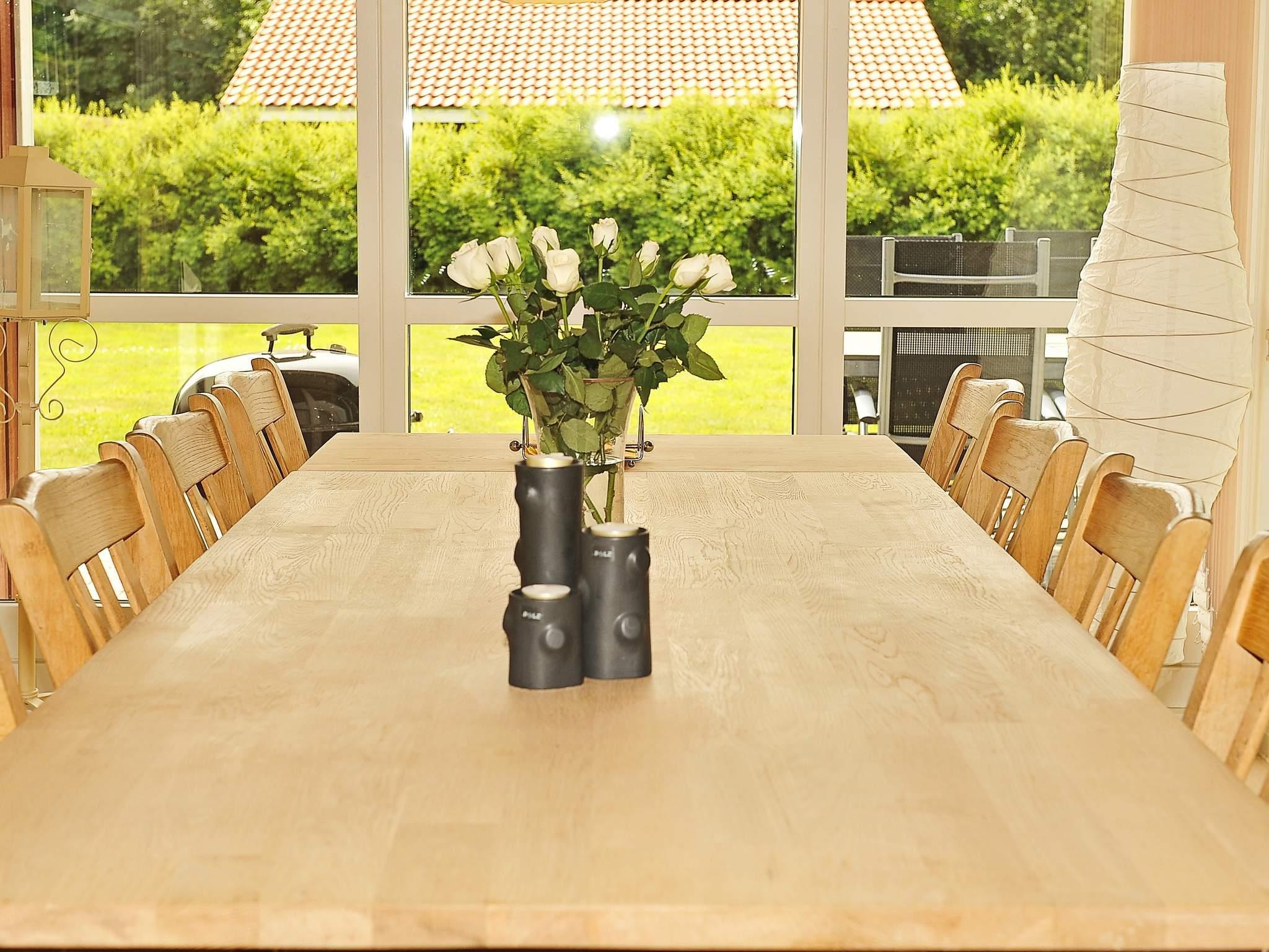 Velholdt og veludstyret sommerhus på læfyldt grund. Huset er indrettet med entre, badeværelse med spabad og sauna og et ekstra toilet. Der er 3 soverum. Huset er indrettet med et stort køkken, som ligger i åben forbindelse med spisepladsen og opholdsstuen, hvor I også finder brændeovnen til de kølige aftener. Fra opholdstuen er der direkte udgang til den delvist overdækkede terrasse, hvorfra I bl.a. kan nyde børnenes leg i sandkassen, gyngerne eller den tilhørende trampolin (benyttes på eget ansvar/forsikring).