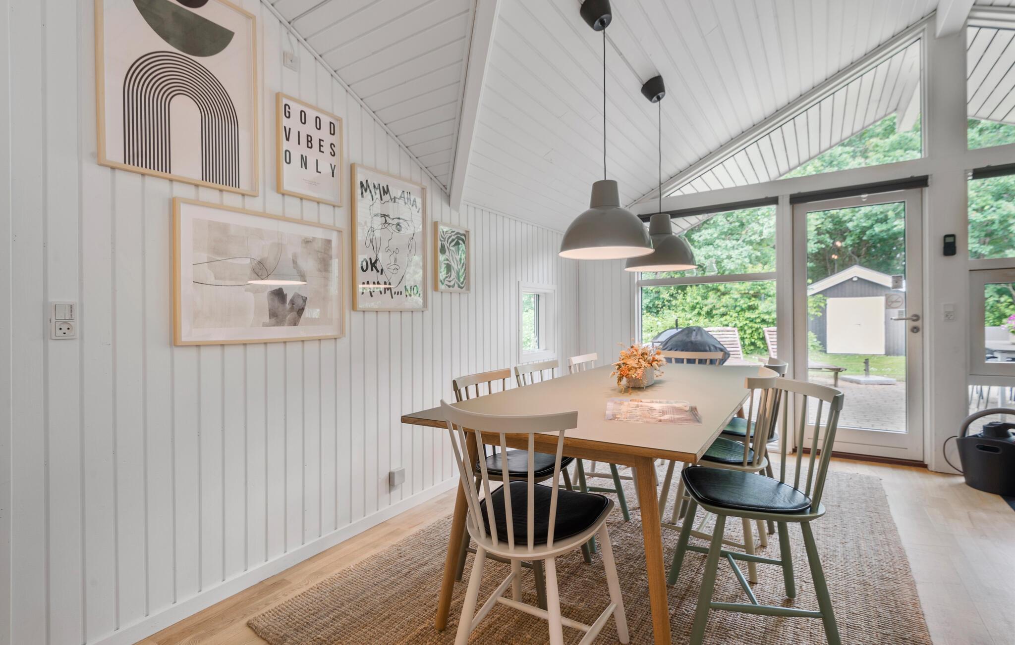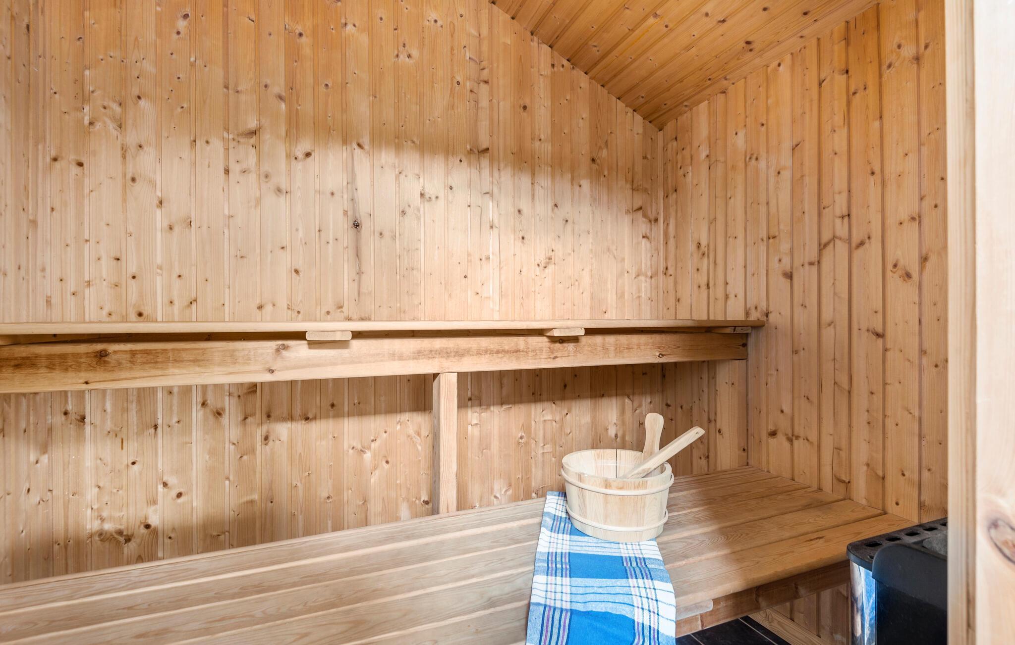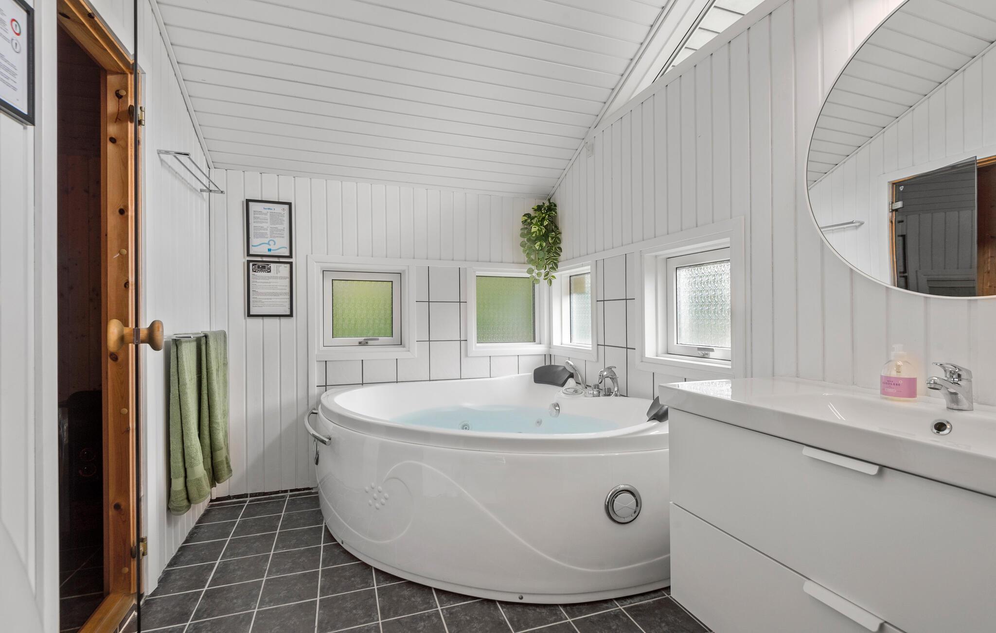 Glæd jer til en pause fra hverdagen, og nyd familietid og afslapning i dette lyse og hyggelige feriehus. Den store vinduesfacade i stuen lader dagslyset strømme ind og skaber en behagelig stemning, når I laver mad i det veludstyrede køkken eller spiller spil ved spisebordet. Nyd også nogle dejlige timer i wellnessområdet med spabadet og saunaen.
