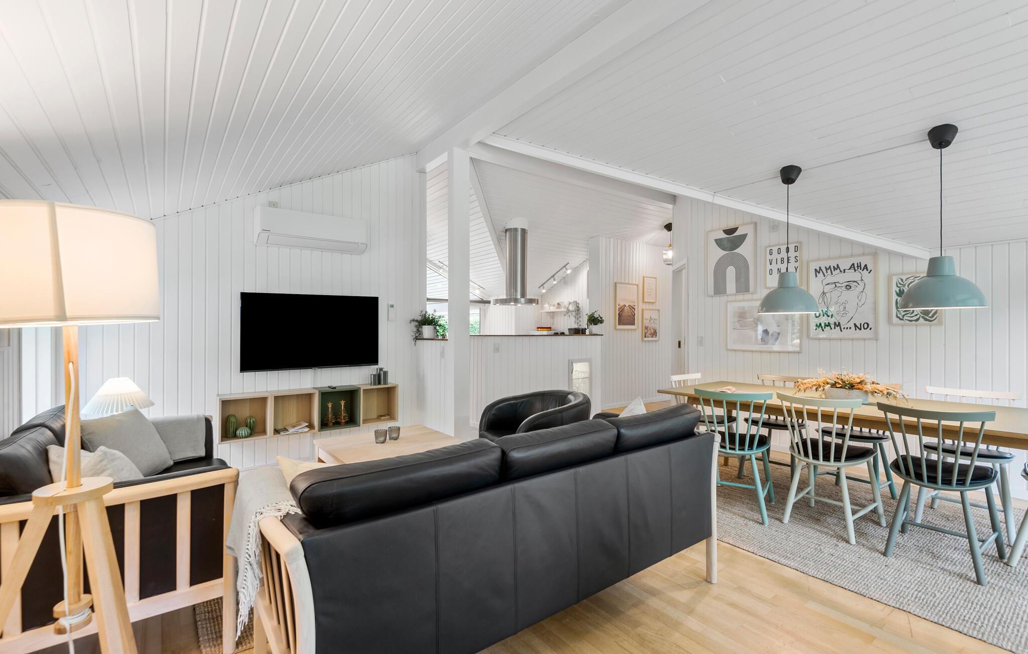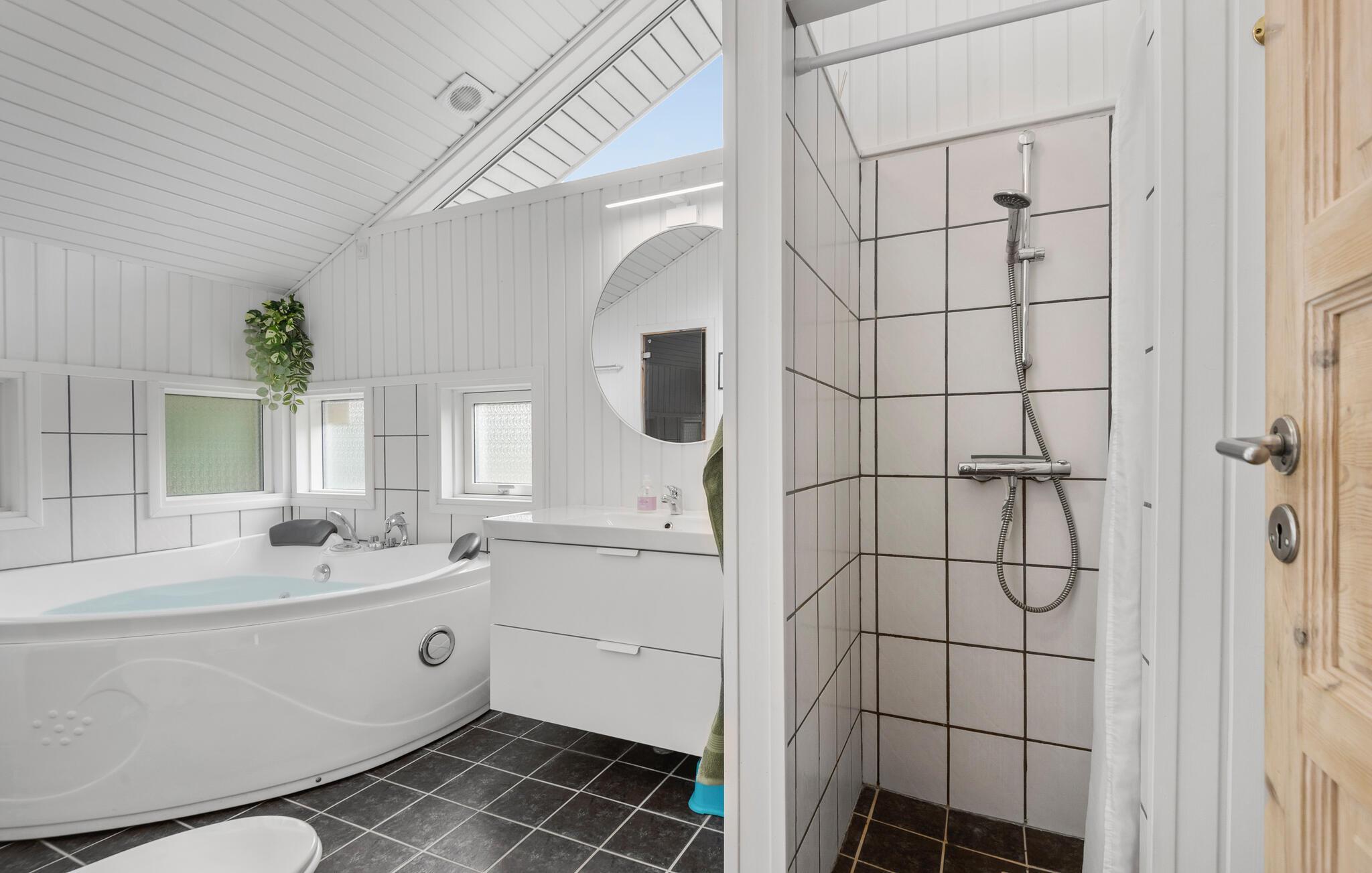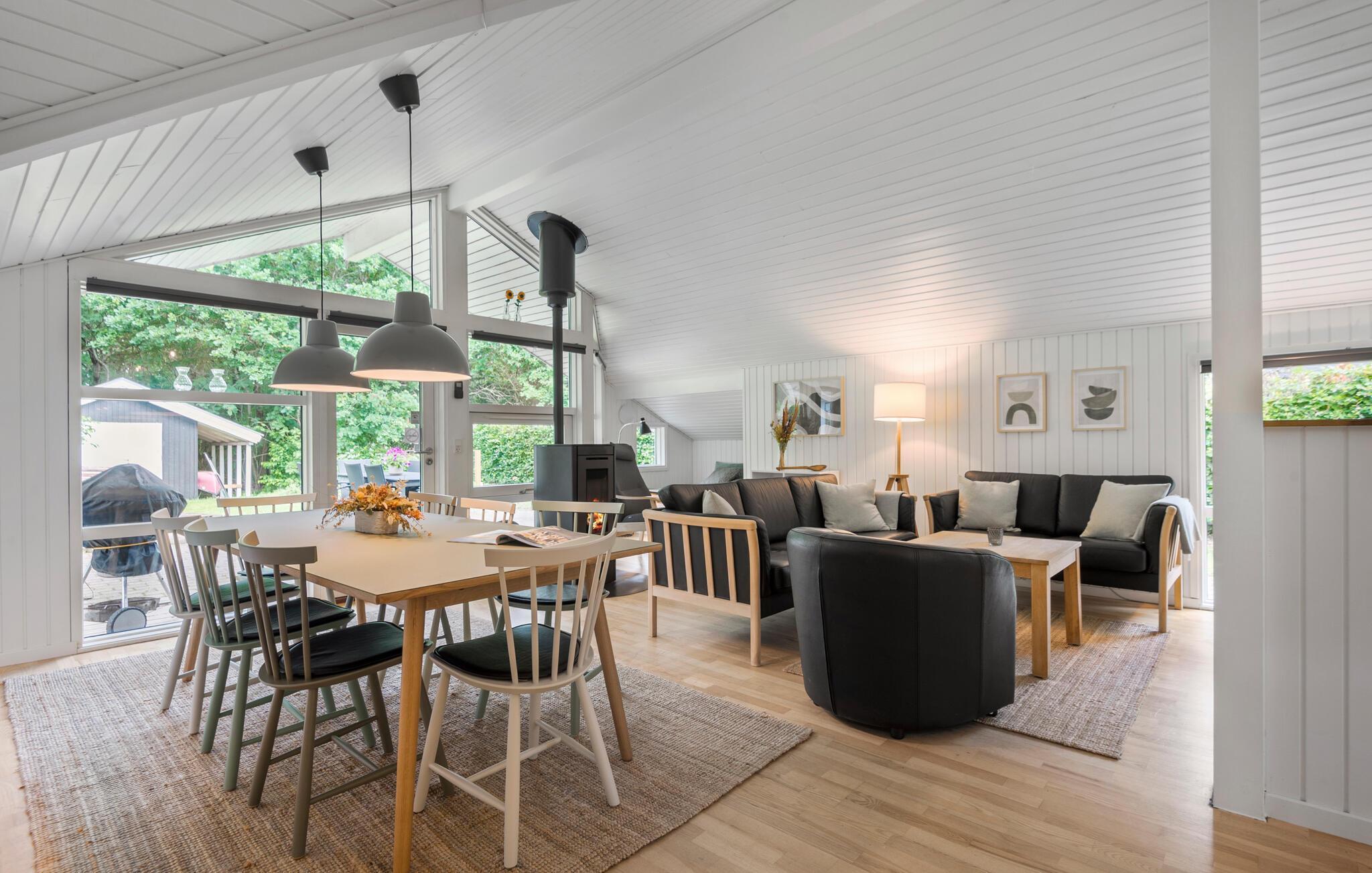 Glæd jer til en pause fra hverdagen, og nyd familietid og afslapning i dette lyse og hyggelige feriehus. Den store vinduesfacade i stuen lader dagslyset strømme ind og skaber en behagelig stemning, når I laver mad i det veludstyrede køkken eller spiller spil ved spisebordet. Nyd også nogle dejlige timer i wellnessområdet med spabadet og saunaen.