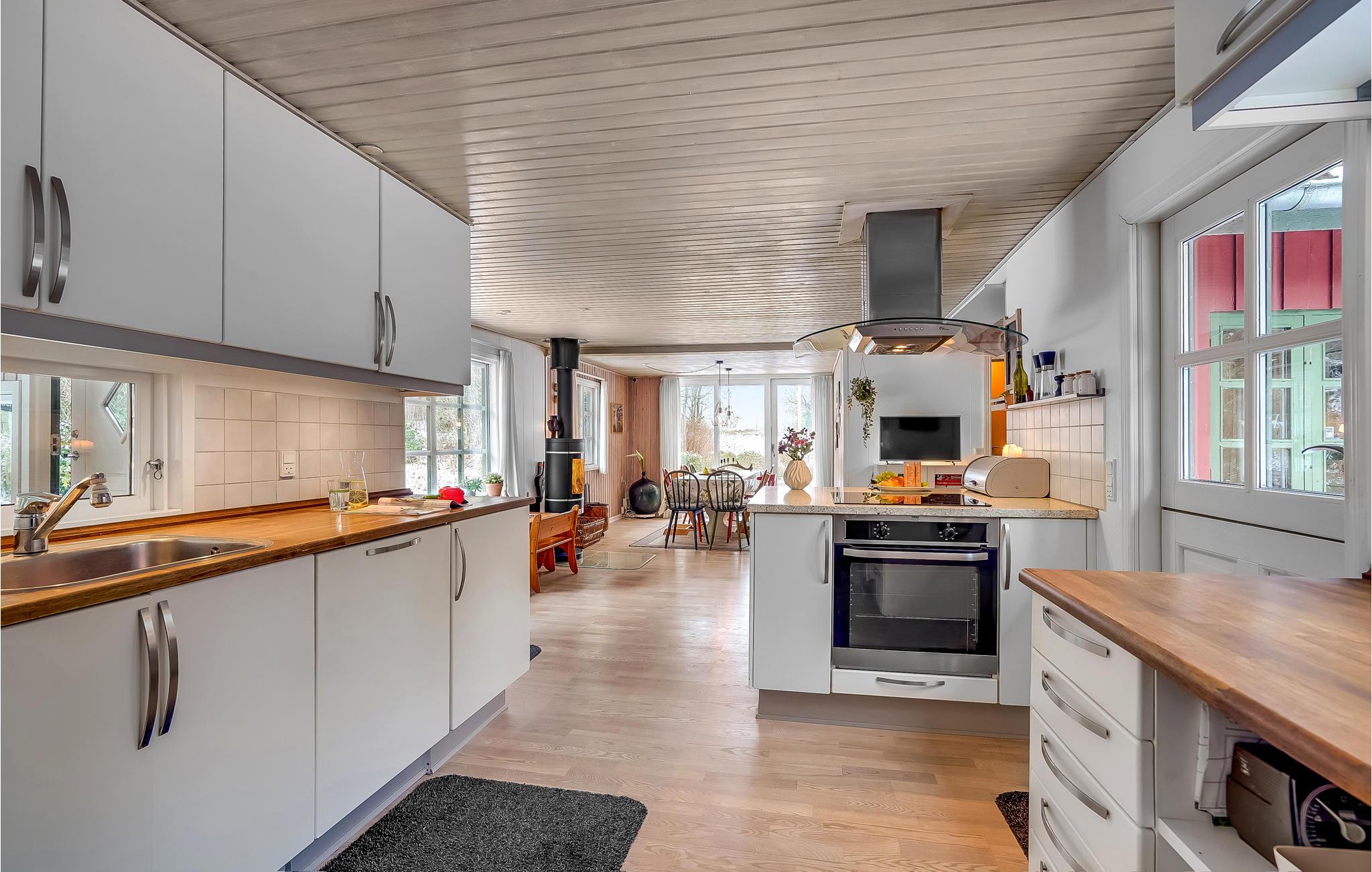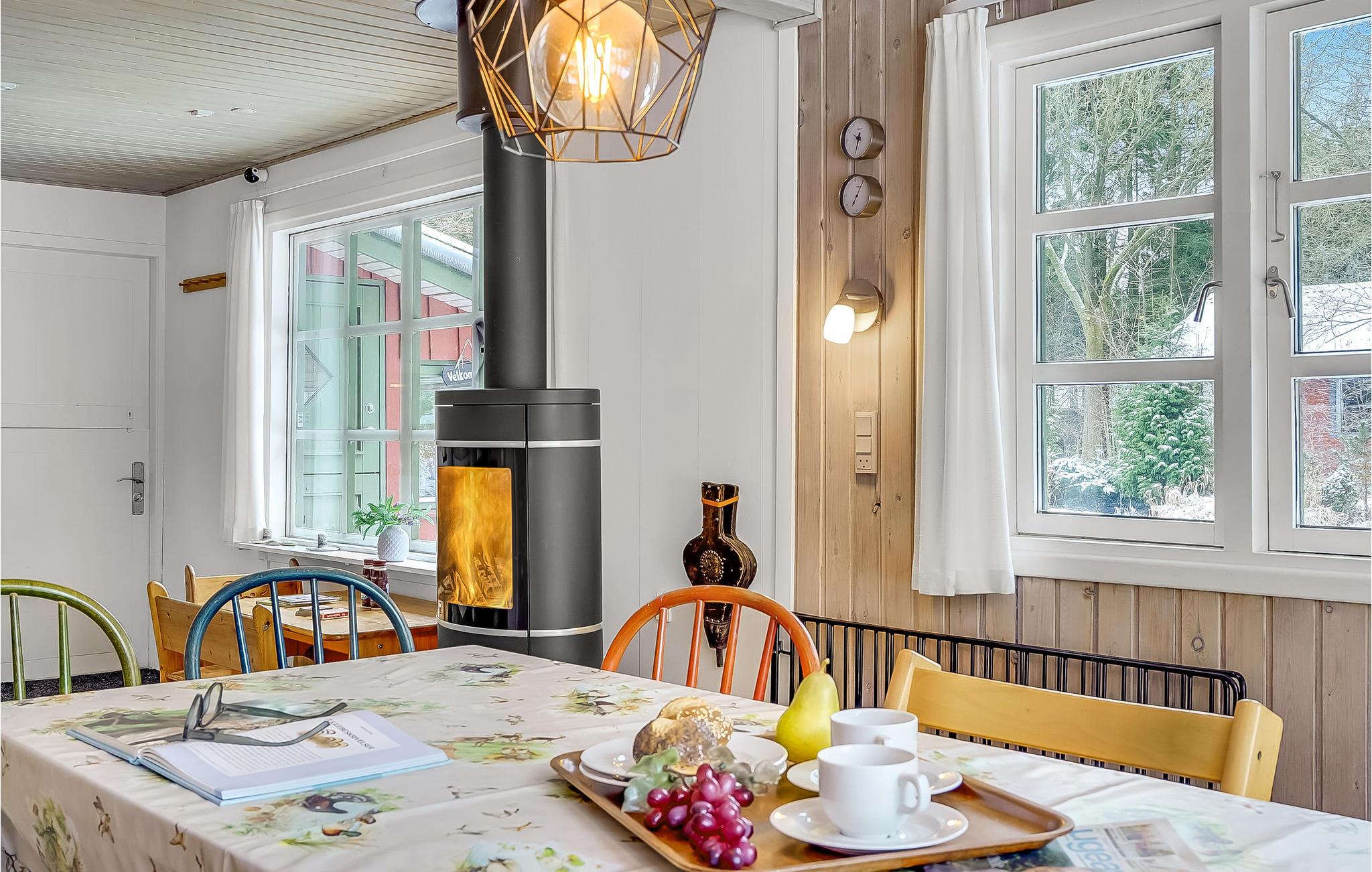 Roen sænker sig på en helt særlig måde på dette sted, hvor I sikkert allerede fra ankomsten falder i staver over den smukke udsigte fra terrassen. Der er lagt op til nogle herlige dage i dette sommerhus, hvor I får en hyggelig base i naturskønne rammer. Efter en lang dag på farten er det rart at vende hjem til huset, som har gode faciliteter til at lave mad og senere samles omkring spisebordet. På de kølige dage kan I sætte jer med brætspil og skrue ekstra op for hyggen ved at tænde op i brændeovnen.