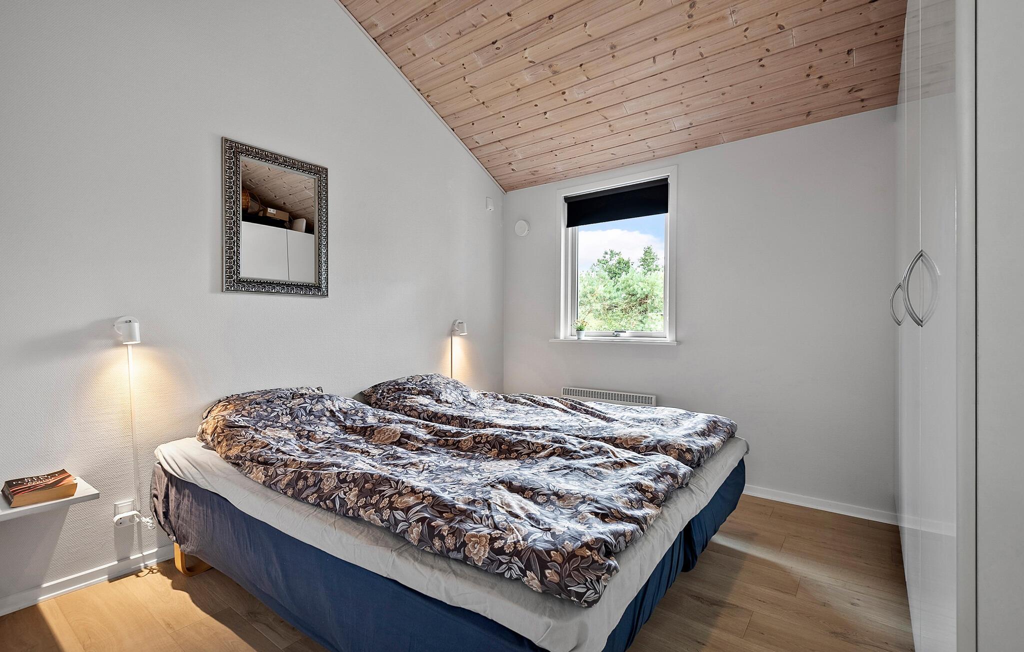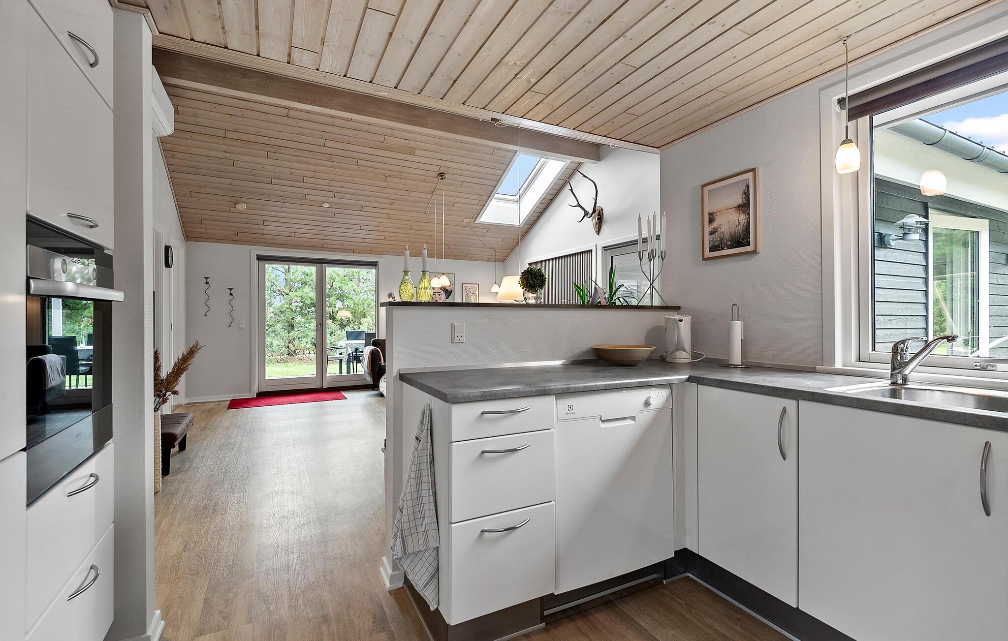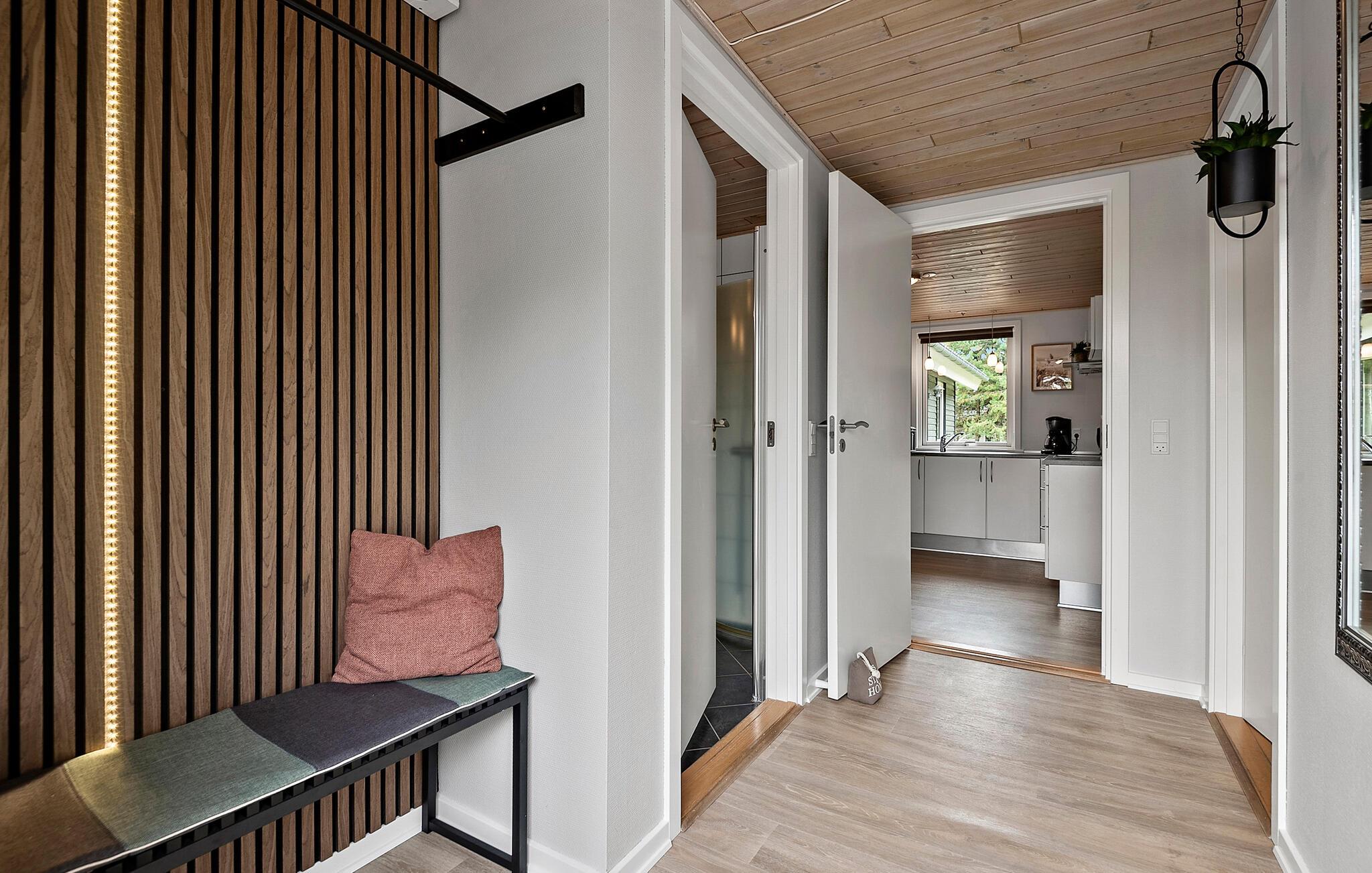 Skønt og rummeligt feriehus med et aktivitetsrum for hele familien med bordtennis, bordfodbold samt dart. Huset er lyst og venligt indrettet og fra det rummelige køkken/alrum, er der adgang til den dejlige terrasse, hvor I kan nyde solen. I køkkendelen er der installeret gulvvarme. Feriehuset har to gode badeværelser, hvoraf det ene er indrettet med et stort spabad samt adgang til sauna. Mens I sidder og slapper af på terrassen, kan børnene lege på grunden, hvor der findes aktiviteter for de mindste.